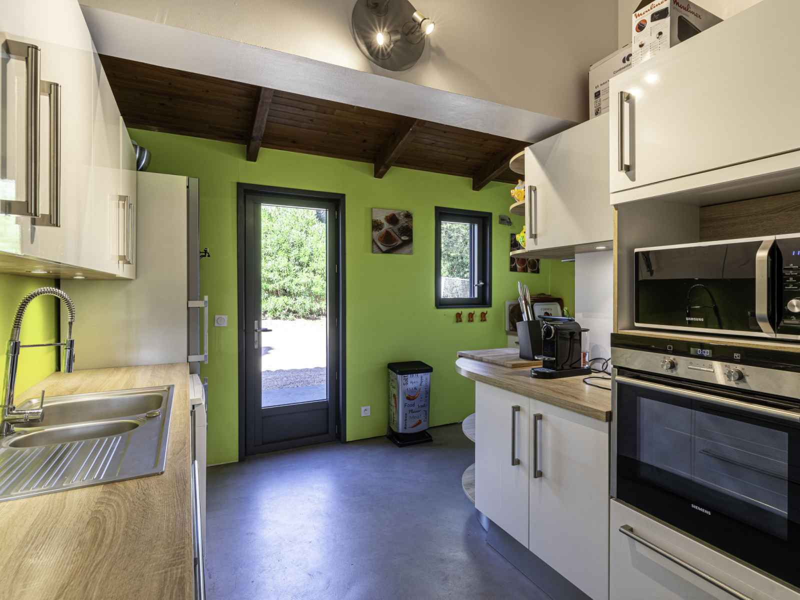 (four, lave-vaisselle, 5 plaques à induction, grille-pain, bouilloire électrique, micro-ondes, cafetière électrique). Douche/WC. Chauffage électrique, air-conditionné. À l'étage supérieur: 2 chambres, chaque chambre avec: 1 lit (90 cm, longueur 200 cm), 1 grand-lit (160 cm, longueur 200 cm). Douche/WC. Chauffage électrique, air-conditionné. Meubles de terrasse, barbecue, chaises longues (12), place pour s'asseoir. Vue sur la piscine, le jardin et les alentours. A disposition: lave-linge, sèche-linge, fer à repasser, sèche-cheveux. Internet (Connexion WIFI). Place de parking, garage sur le terrain. Veuillez noter: détecteur de fumée. Annonce d'un particulier (art 155, IV du CGI). 2A24700025733