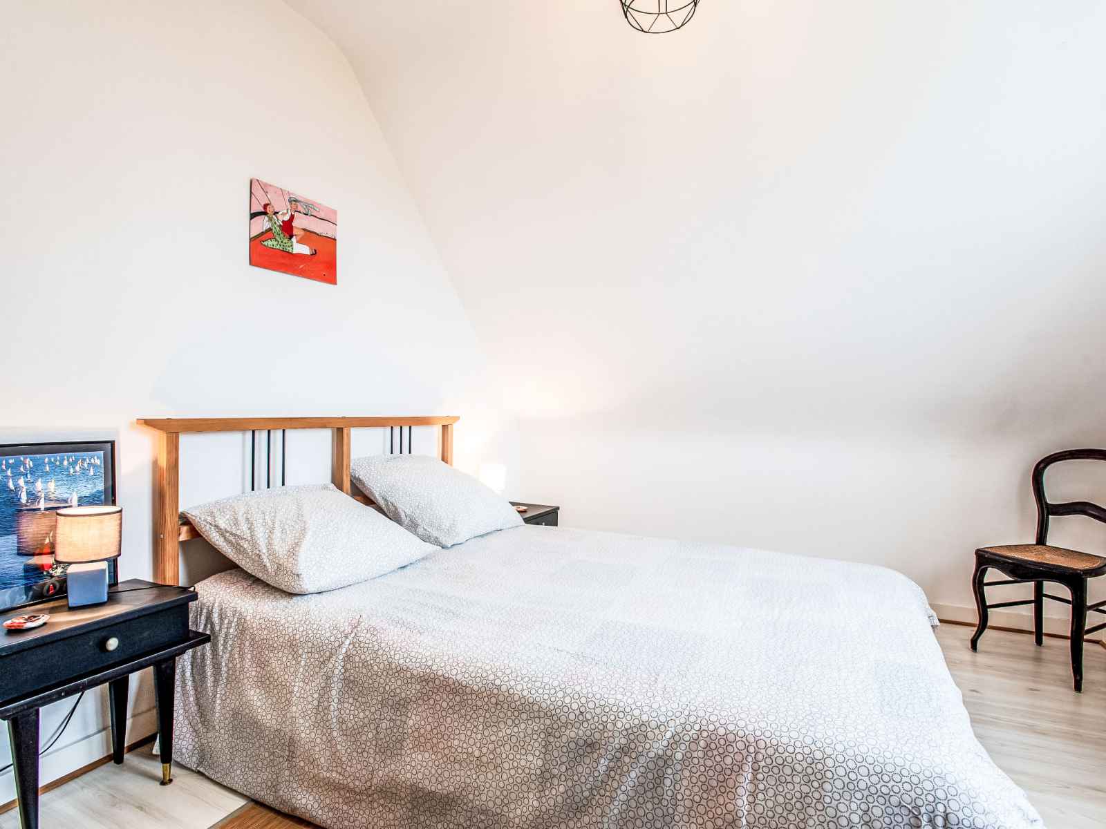 Maison 5 pièces 120 m2 sur 2 niveaux. rénovée en 2017, aménagement confortable: séjour/salle à manger avec tv (écran plat). sortie sur la véranda. 1 chambre avec 1 grand-lit (1 x 140 cm, longueur 190 cm), douche/wc. cuisine ouverte (four, lave-vaisselle, 4 plaques à induction, congélateur, cafetière électrique). À l'étage supérieur: