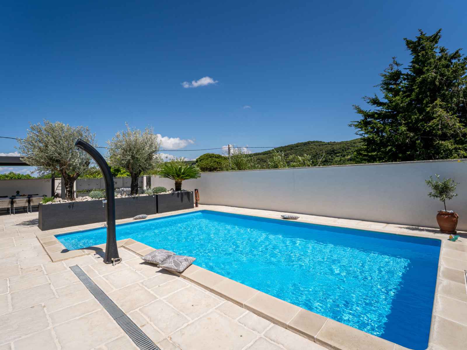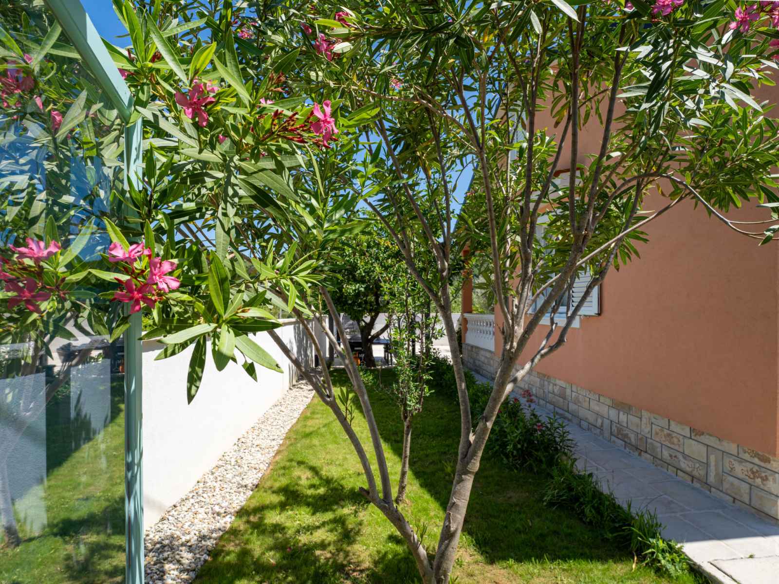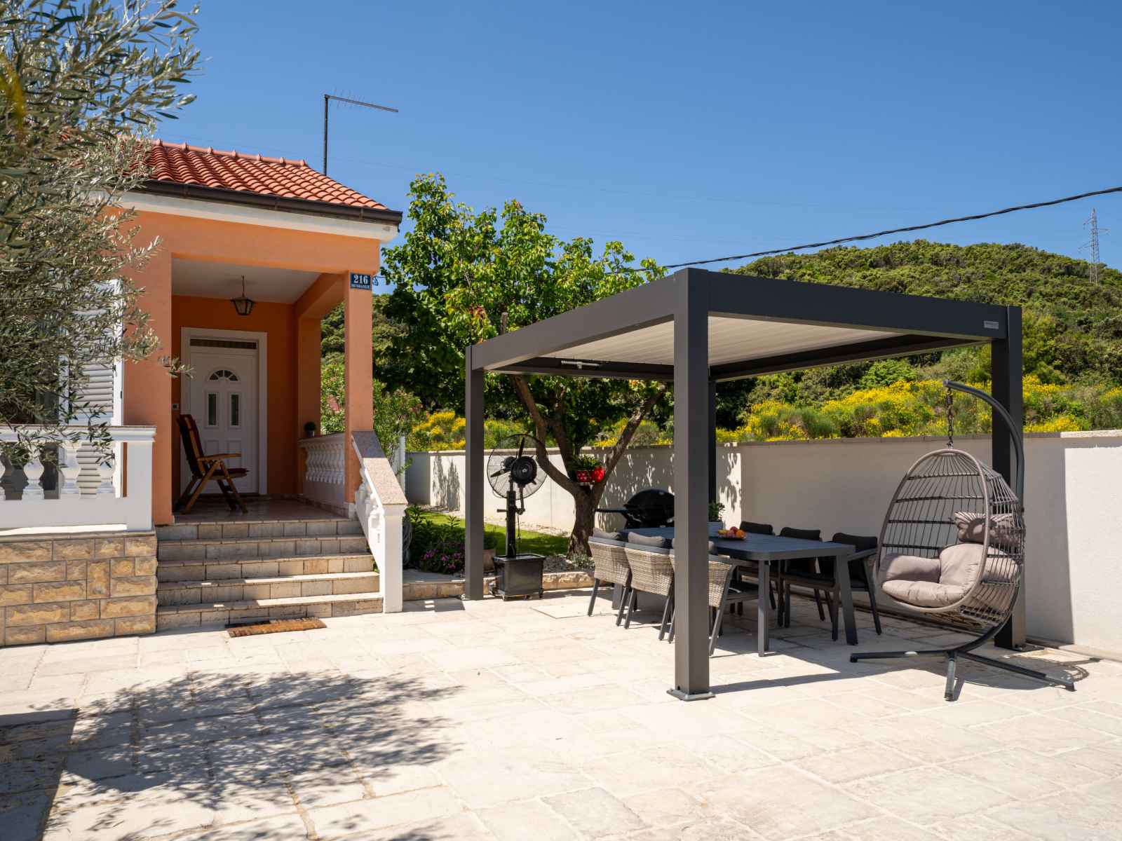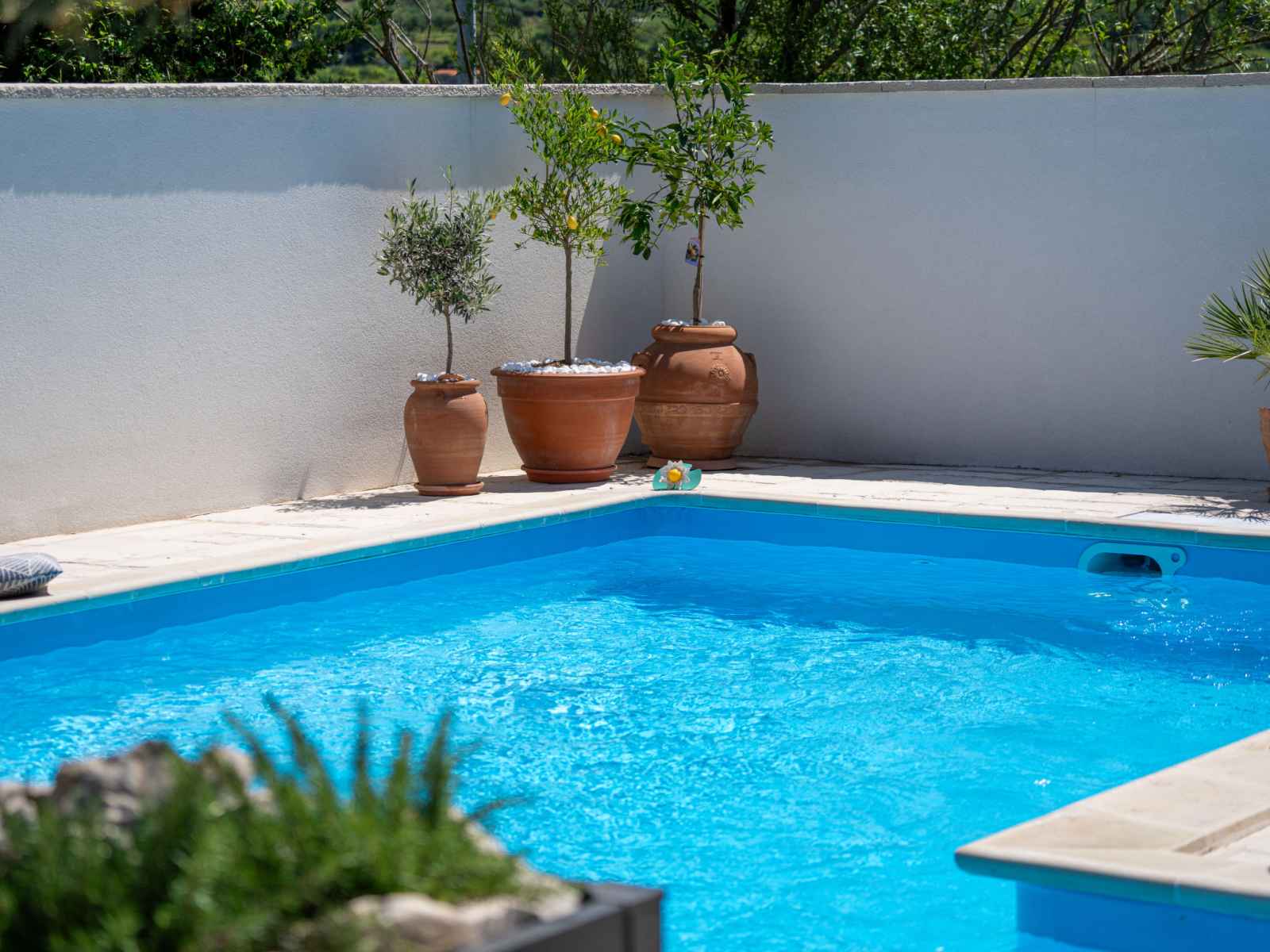 Maison individuelle "happy home rab". dans le hameau de mundanije, à 4 km du centre de rab, situation ensoleillée, à 4.3 km de la mer, à 4.4 km de la plage. a usage privé: terrain 520 m2 (clôturé) avec pelouse 100 m2 plantes, piscine rectangulaire (7 x 4 m, profondeur 110 - 140 cm, disponibilité saisonnière: 01.mai. - 15.oct.) avec