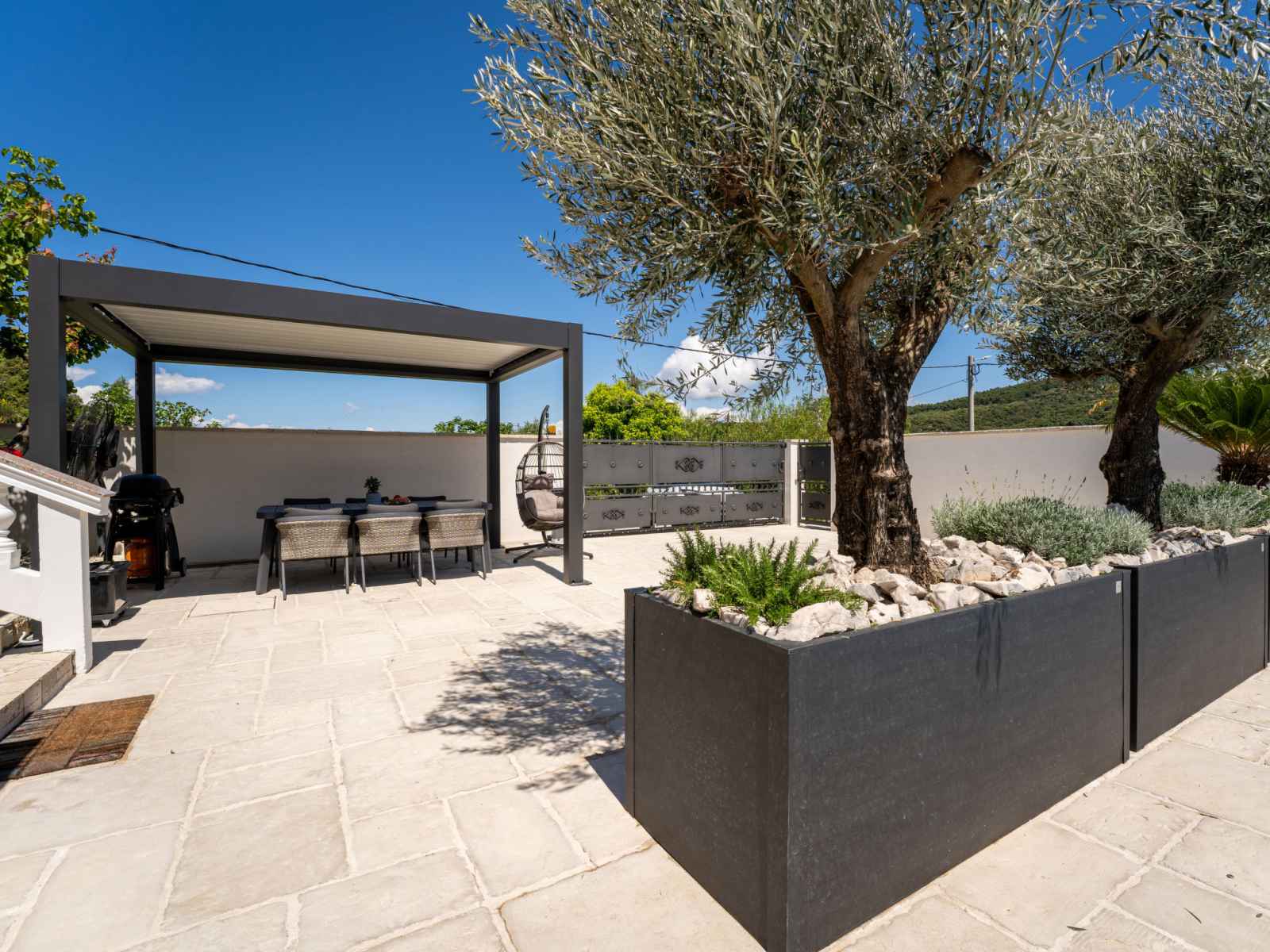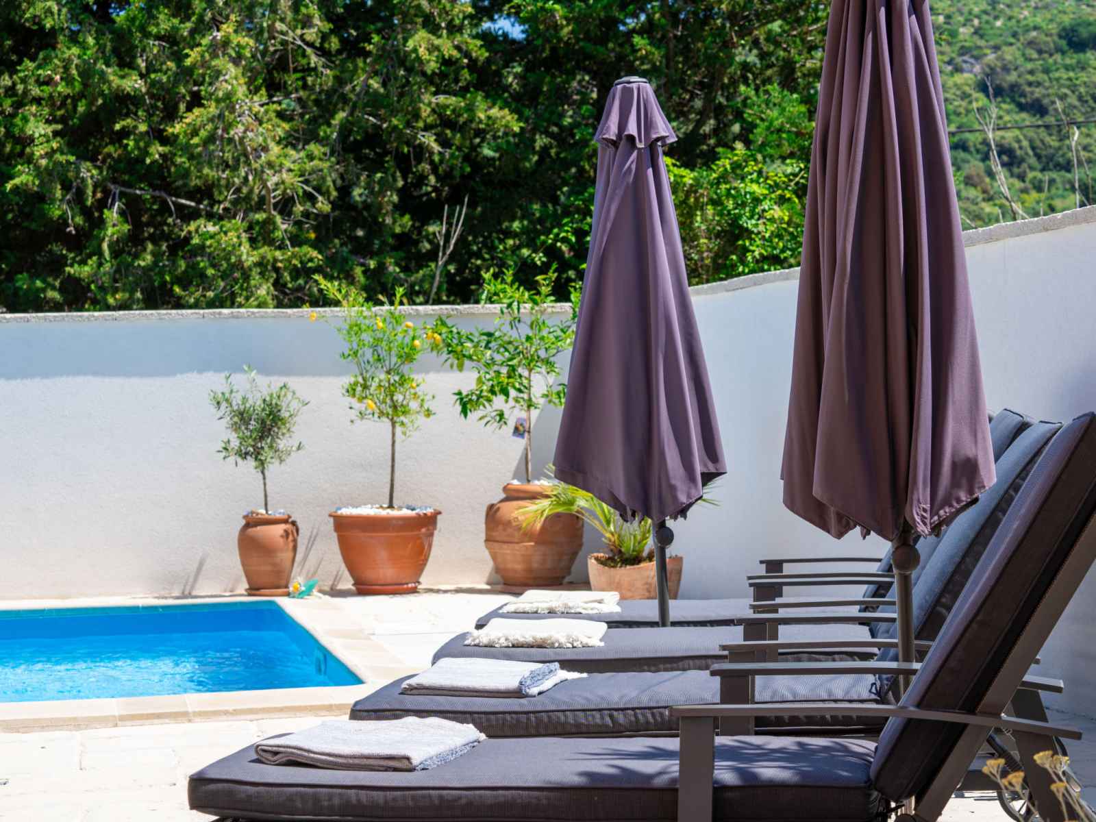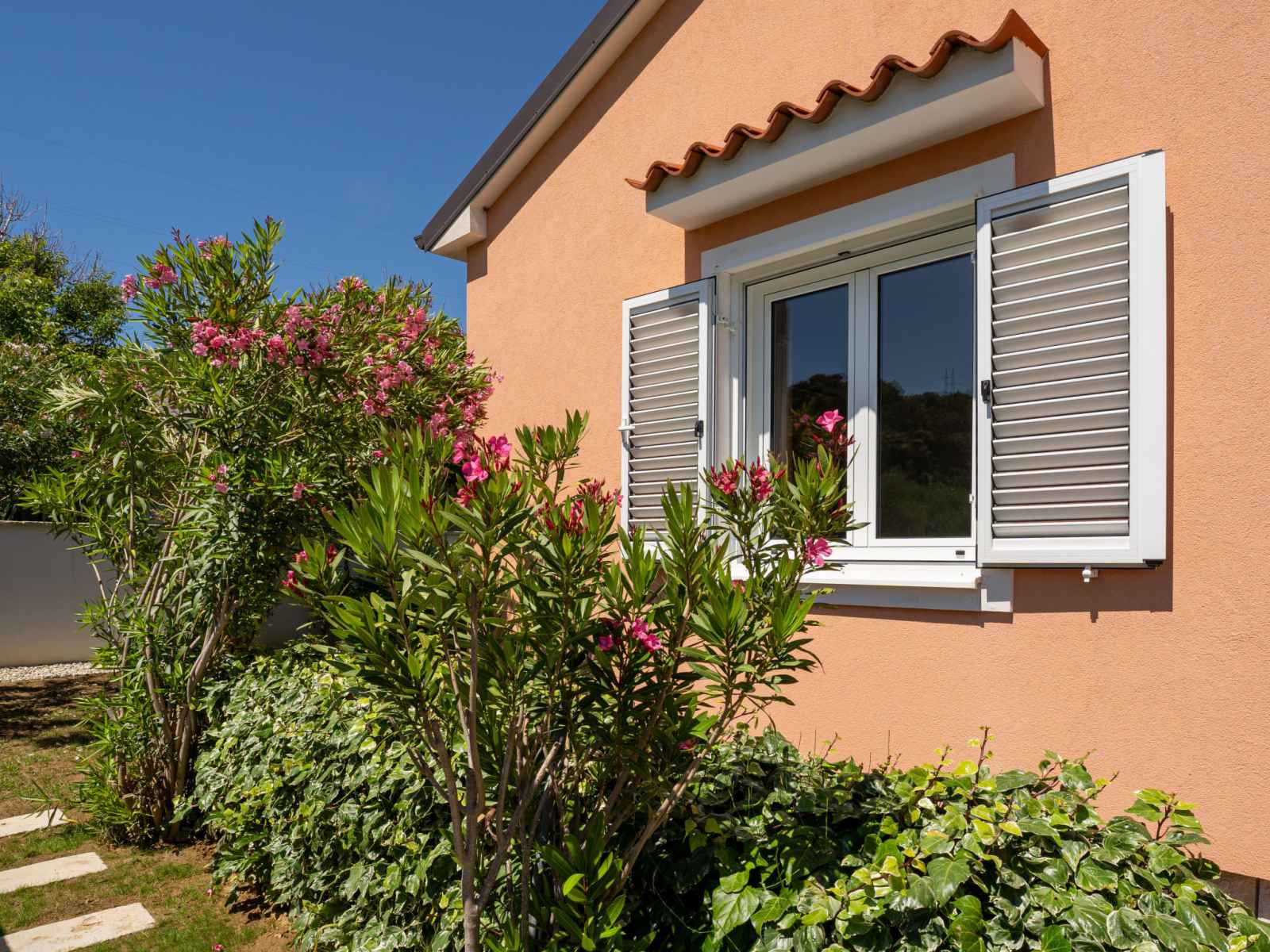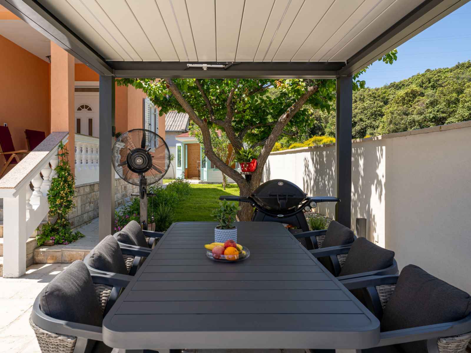 Maison individuelle "happy home rab". dans le hameau de mundanije, à 4 km du centre de rab, situation ensoleillée, à 4.3 km de la mer, à 4.4 km de la plage. a usage privé: terrain 520 m2 (clôturé) avec pelouse 100 m2 plantes, piscine rectangulaire (7 x 4 m, profondeur 110 - 140 cm, disponibilité saisonnière: 01.mai. - 15.oct.) avec