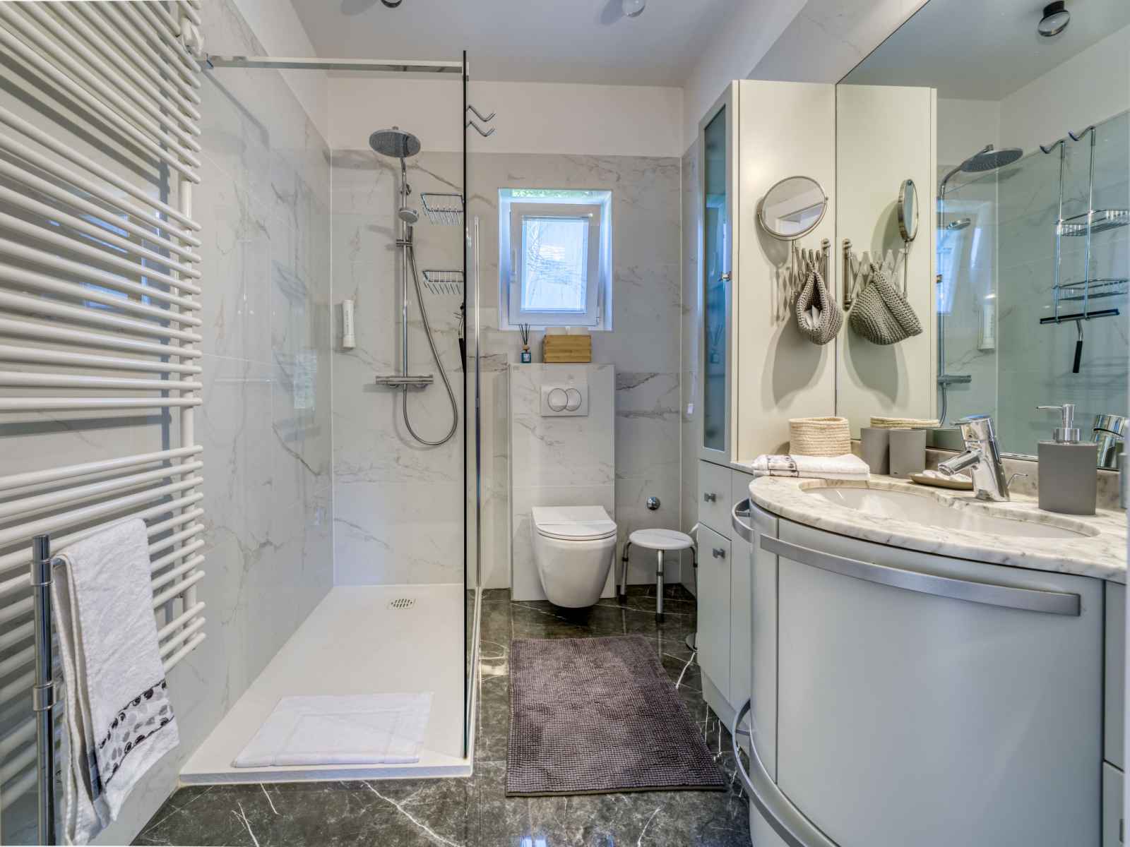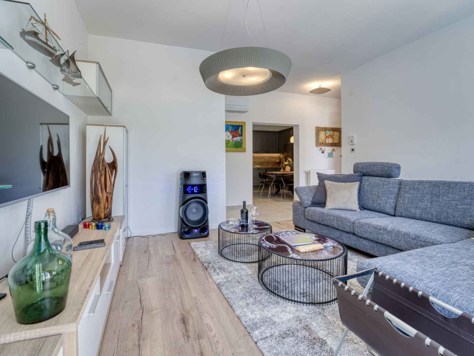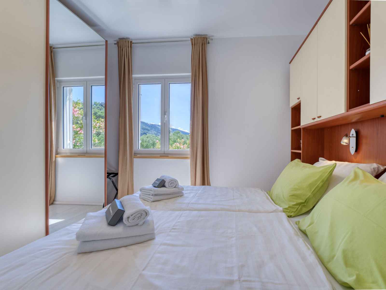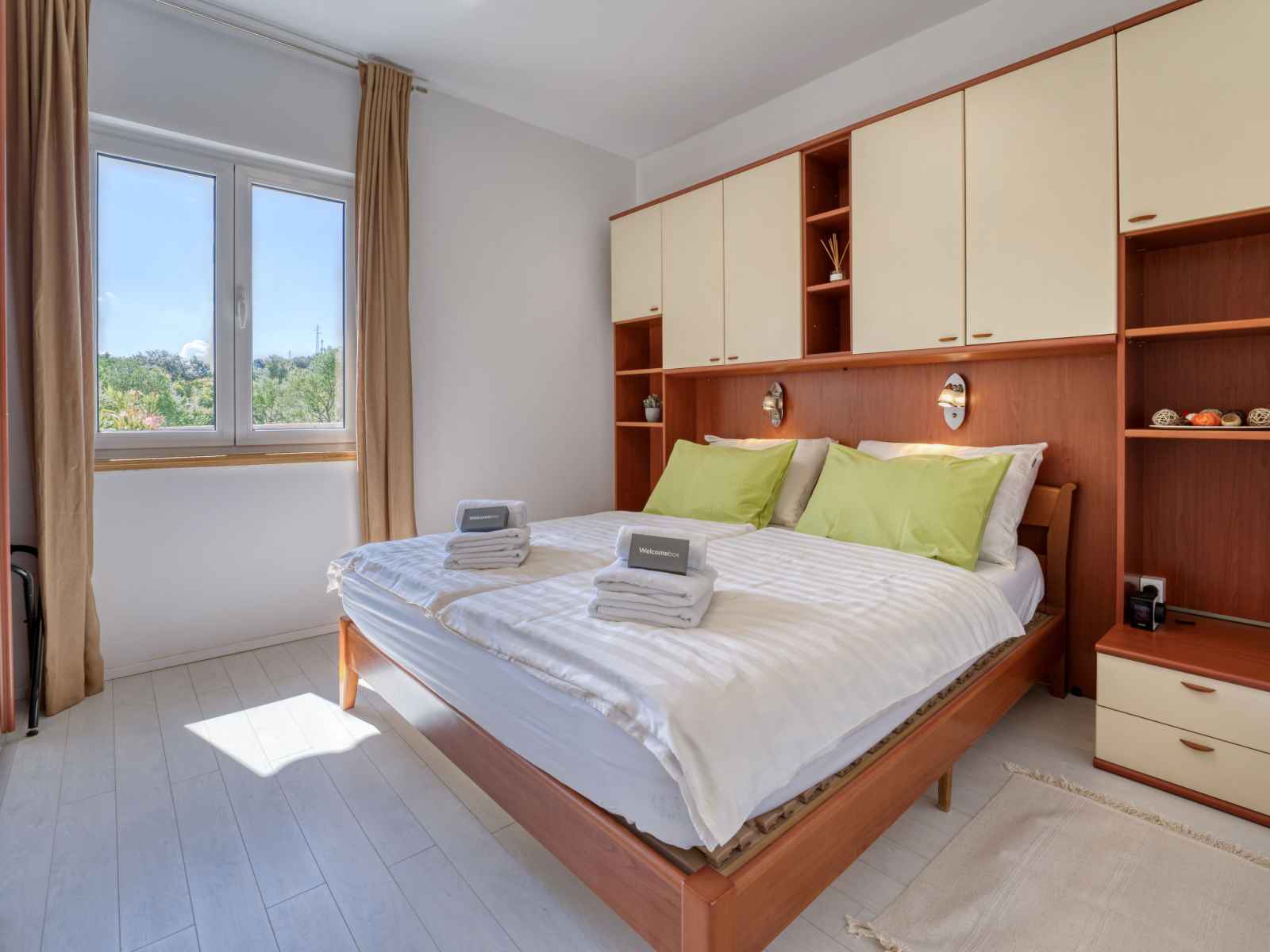 Maison 3 pièces 76 m2, rez-de-chaussée surélevé. aménagement moderne et de bon goût: séjour/salle à manger avec tv (câblée) et air-conditionné. sortie sur le balcon. 1 chambre avec 2 lits (90 cm, longueur 200 cm). sortie sur le balcon. 1 chambre avec 1 lit double (2 x 80 cm, longueur 200 cm). cuisine ouverte (four, lave-vaisselle, 4