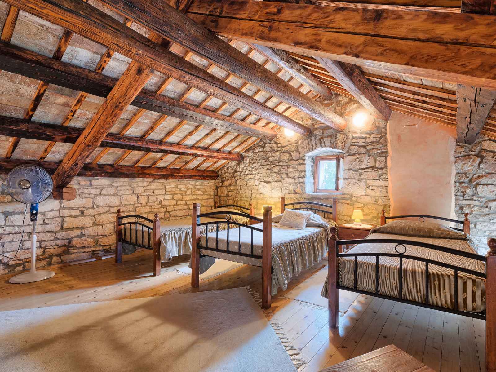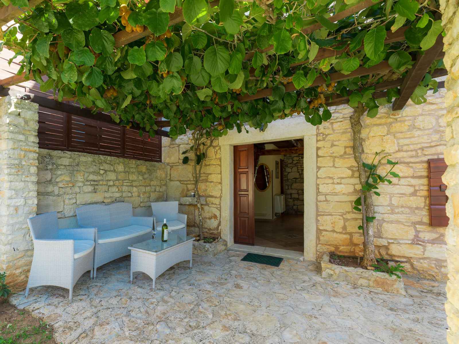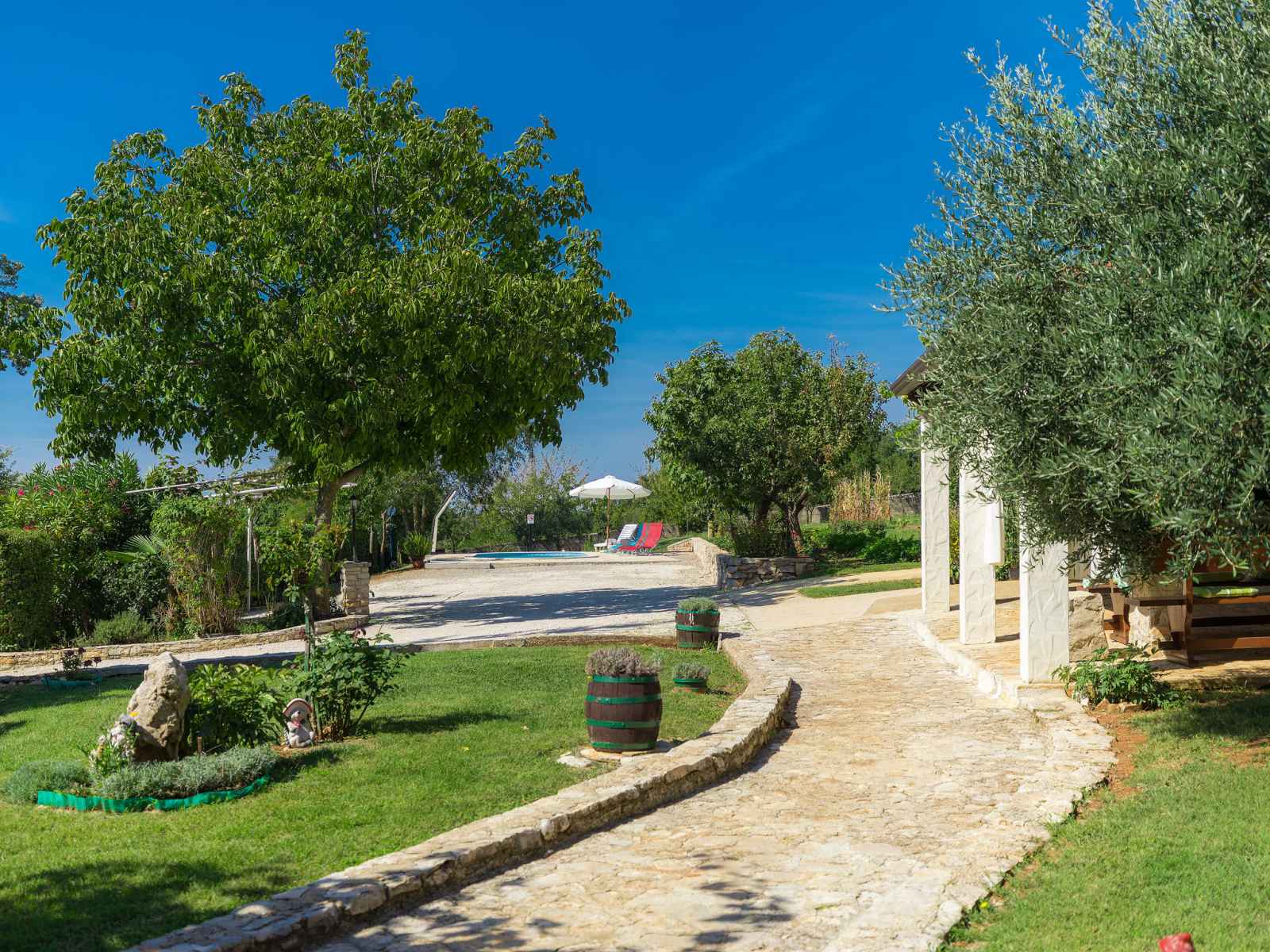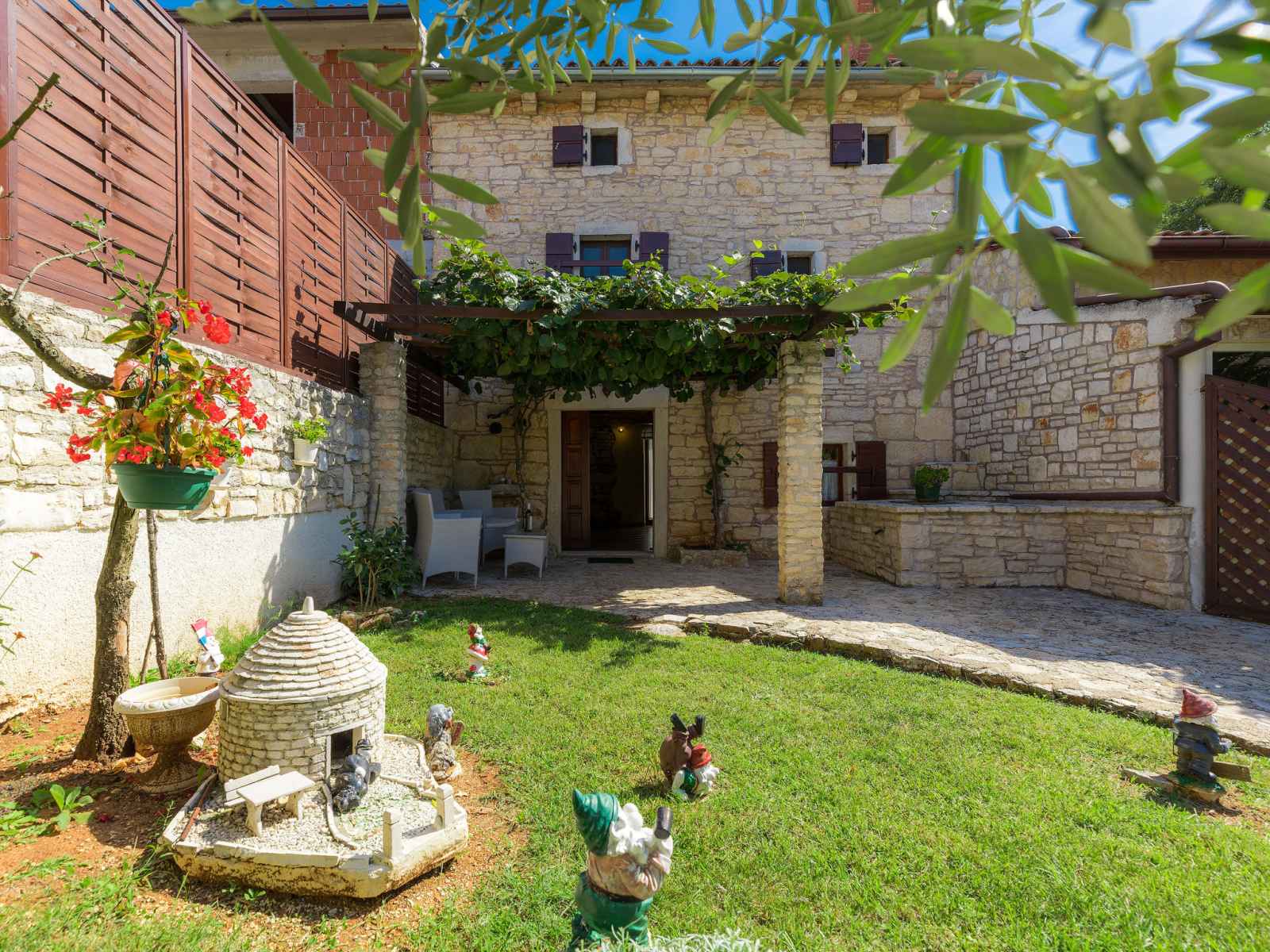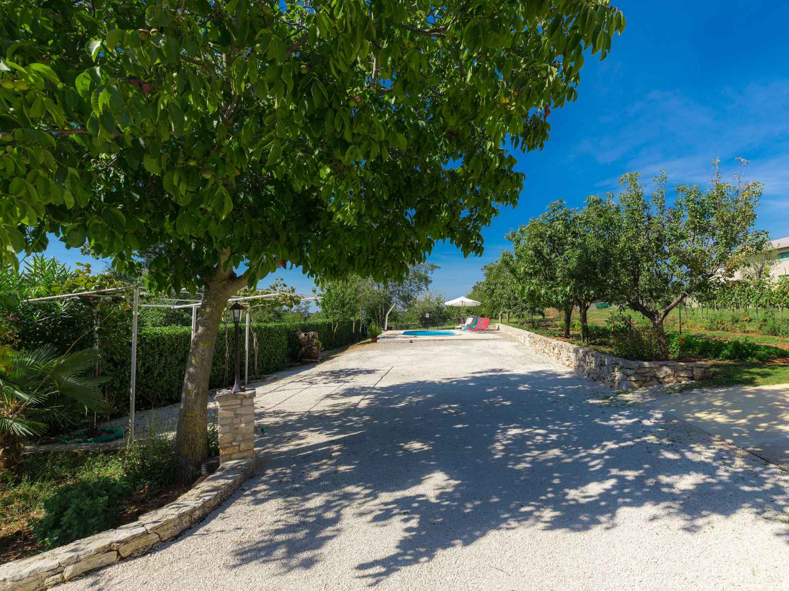 Maison jumelée "jadranka", de 3 étages. dans le hameau de folići, à 5 km du centre de Žminj, à 23 km du centre de rovinj, à 21 km de la mer. en commun: terrain 1'000 m2 avec pelouse et arbres. a usage privé: piscine (26 m2, profondeur 120 - 140 cm, disponibilité saisonnière: 15.mai. - 30.sep.) avec marches intérieures. terrasse, meubles