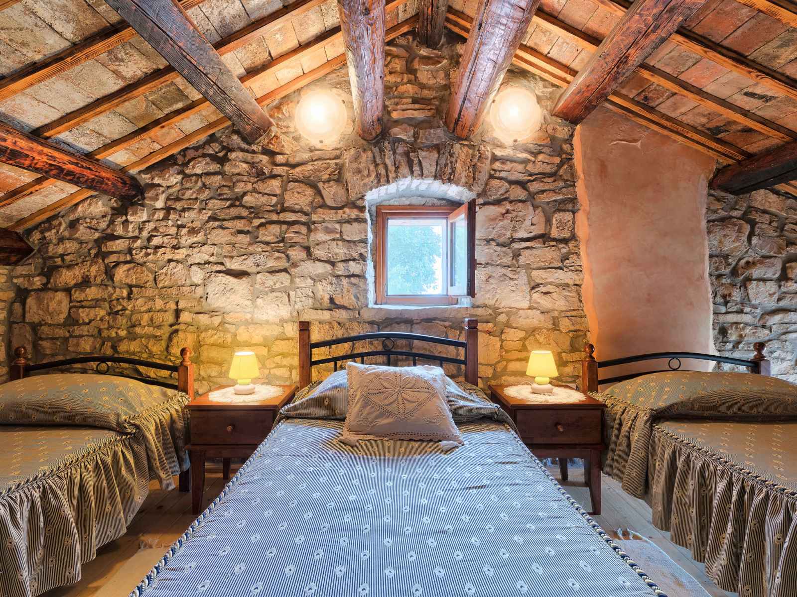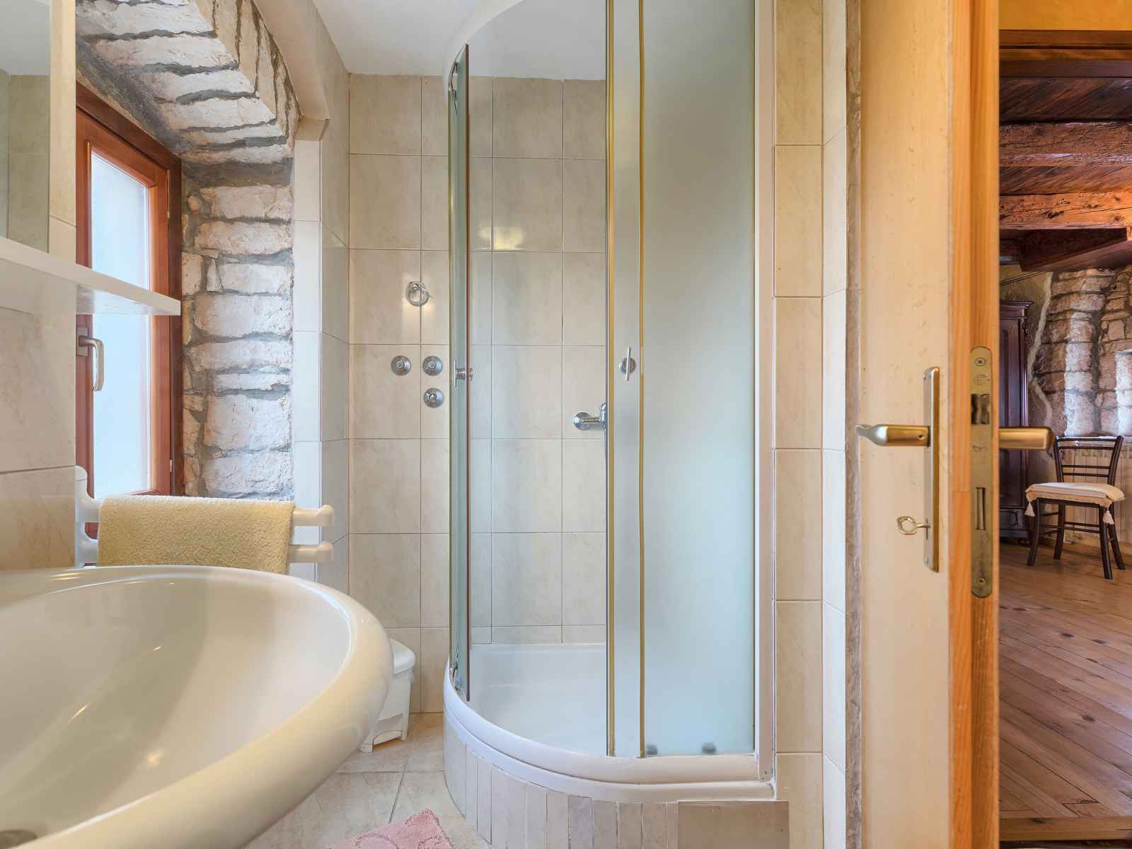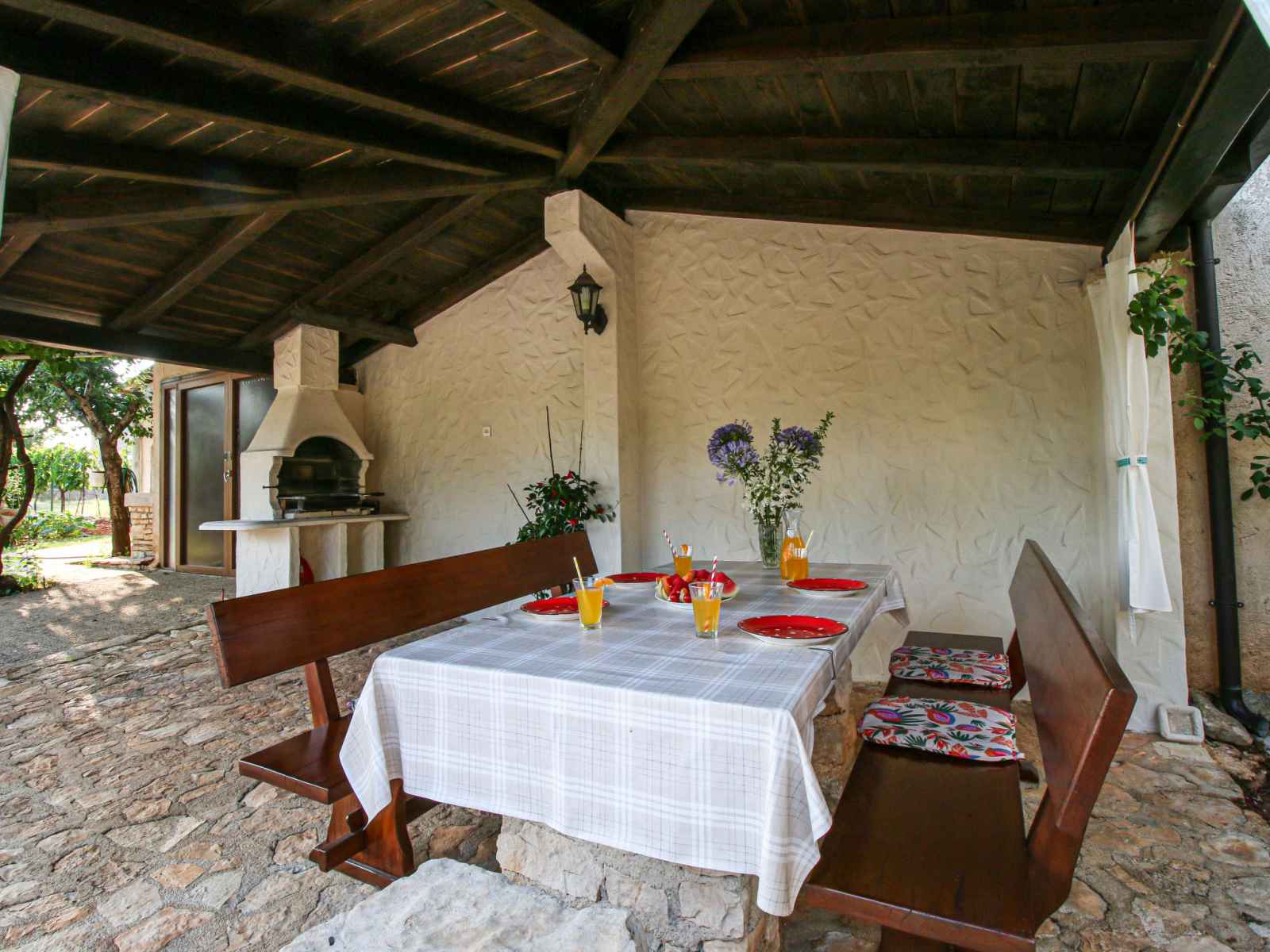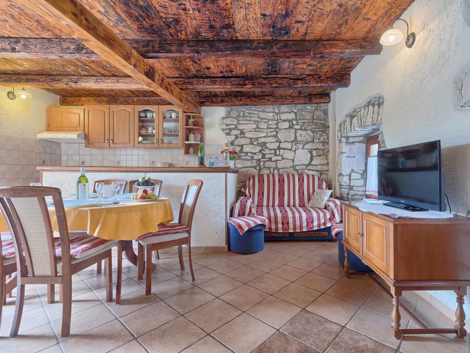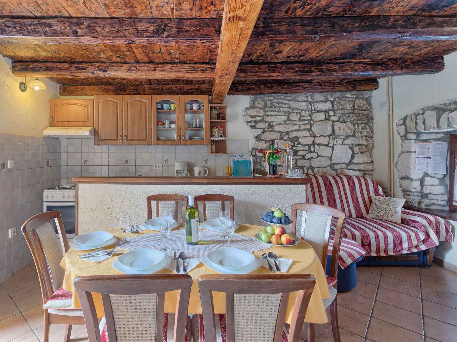 Maison jumelée "jadranka", de 3 étages. dans le hameau de folići, à 5 km du centre de Žminj, à 23 km du centre de rovinj, à 21 km de la mer. en commun: terrain 1'000 m2 avec pelouse et arbres. a usage privé: piscine (26 m2, profondeur 120 - 140 cm, disponibilité saisonnière: 15.mai. - 30.sep.) avec marches intérieures. terrasse, meubles