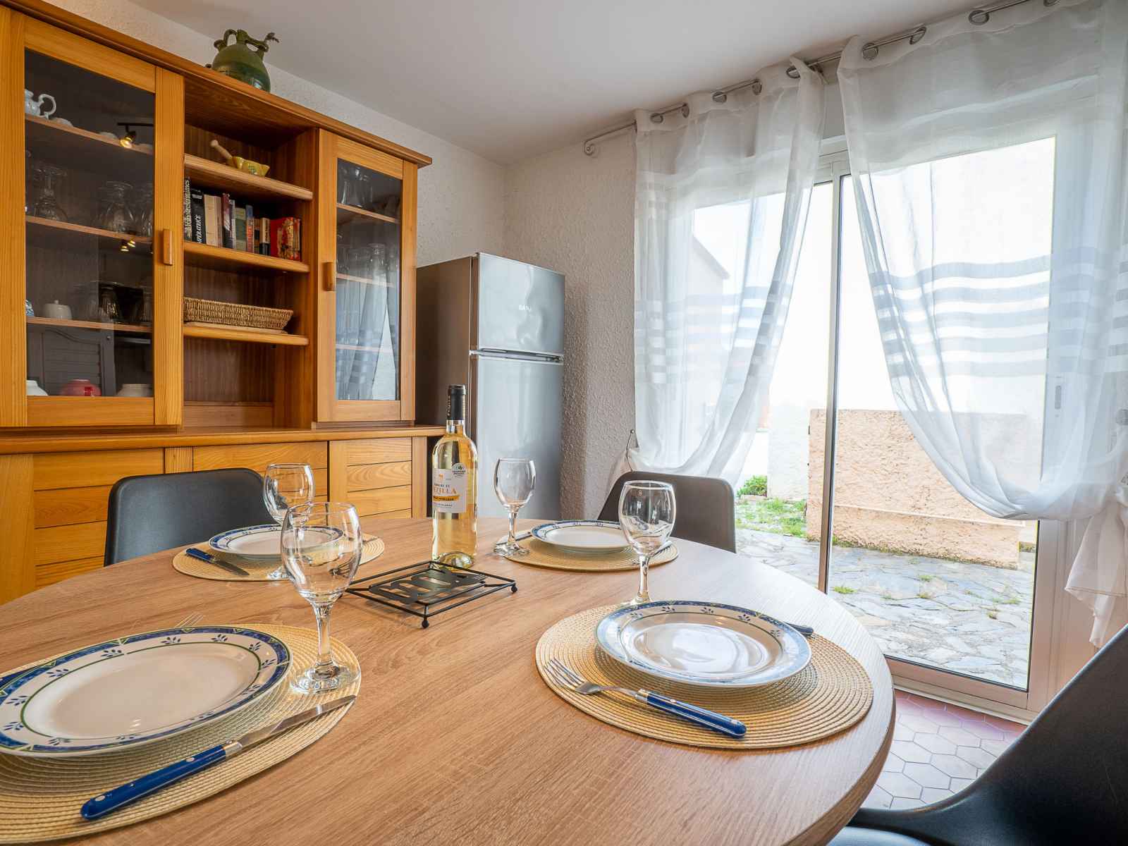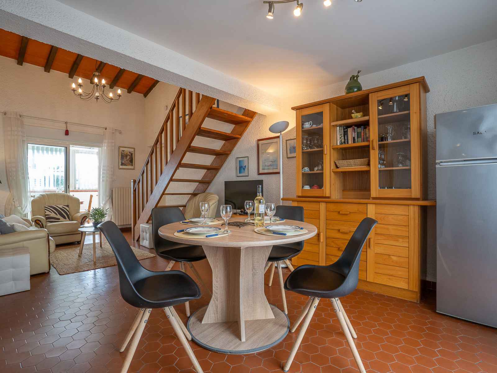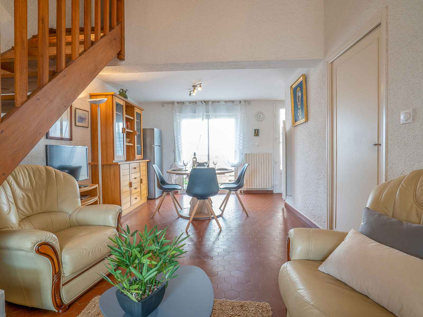 Maison mitoyenne 3 pièces 60 m2 sur 2 niveaux. séjour/salle à manger avec tv (écran plat). sortie sur la terrasse, sur la véranda, orientée est. 1 chambre avec 1 grand-lit (140 cm, longueur 190 cm), tv (écran plat). sortie sur la véranda. coin cuisine dans l'entrée (4 plaques de cuisson, lave-vaisselle, micro-ondes, congélateur,