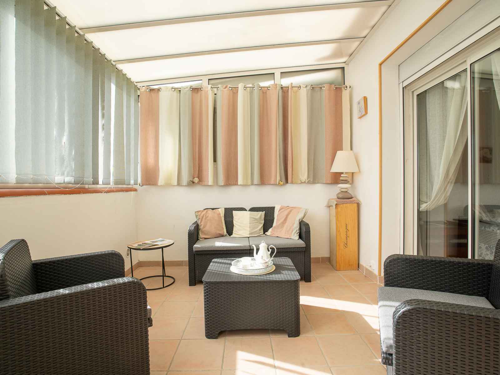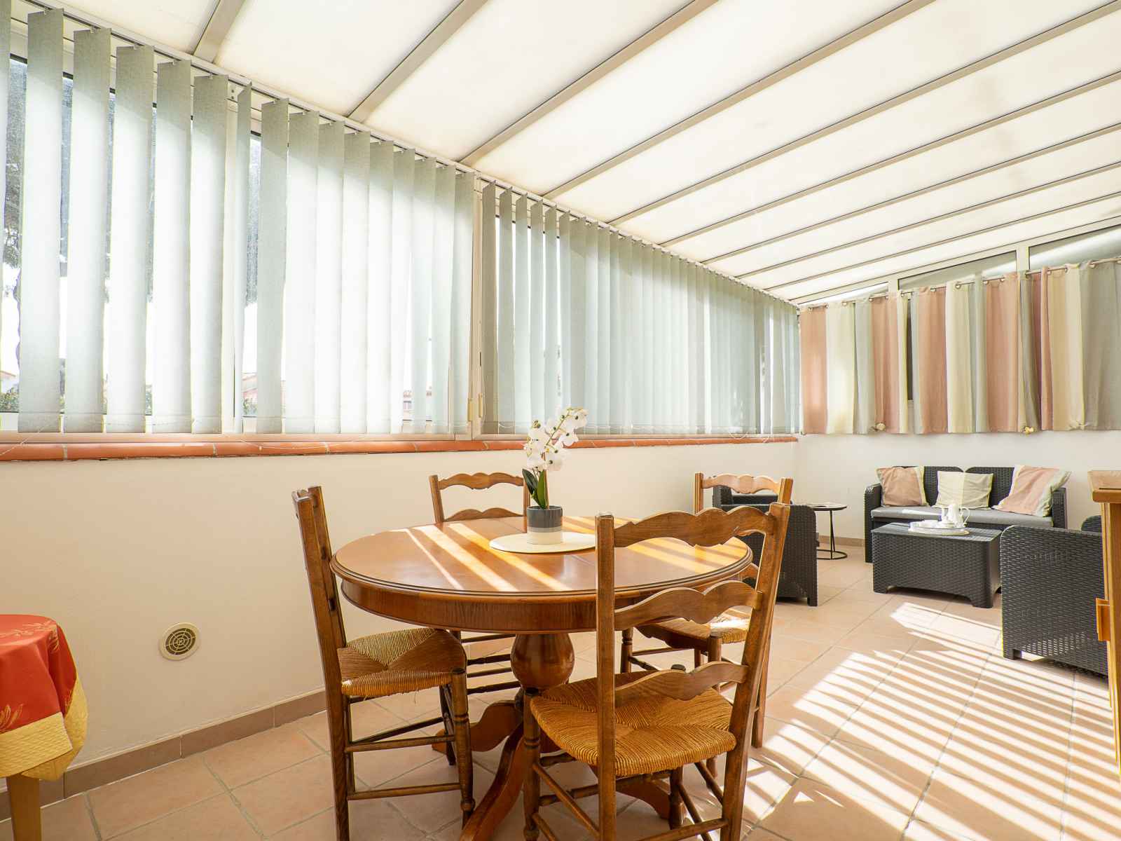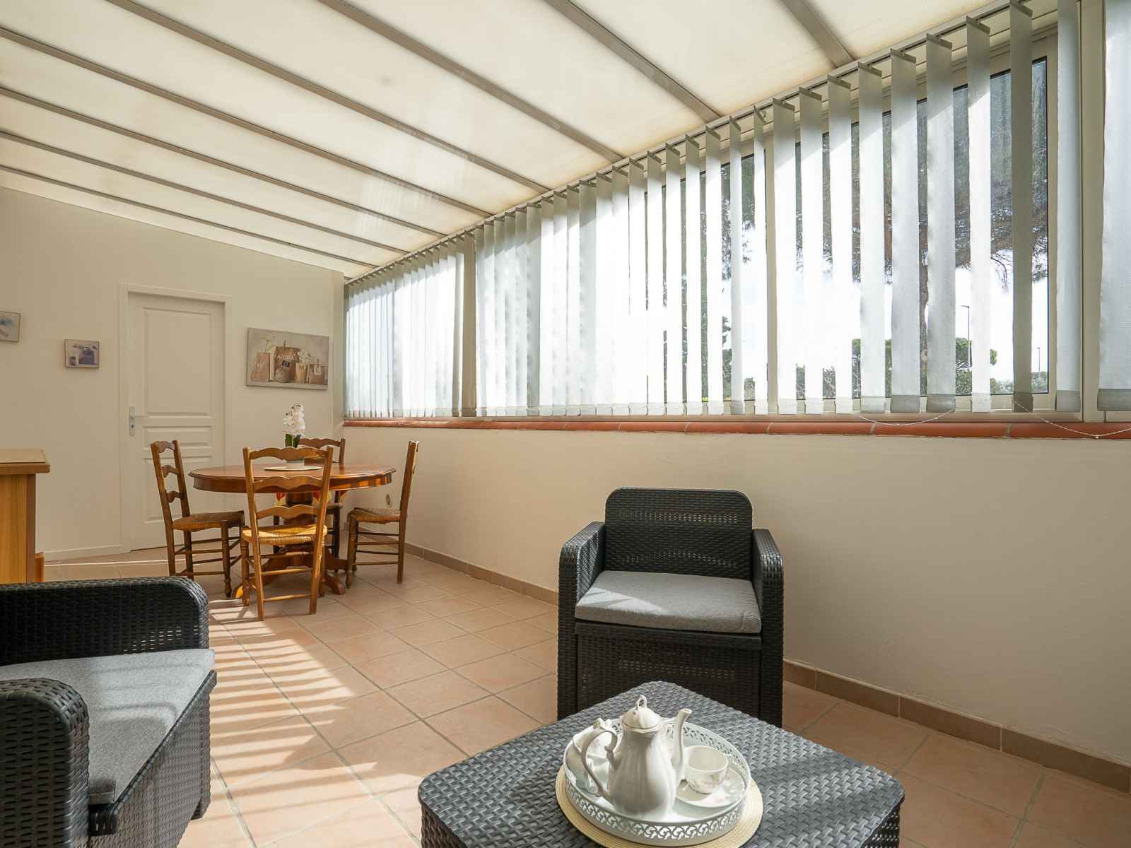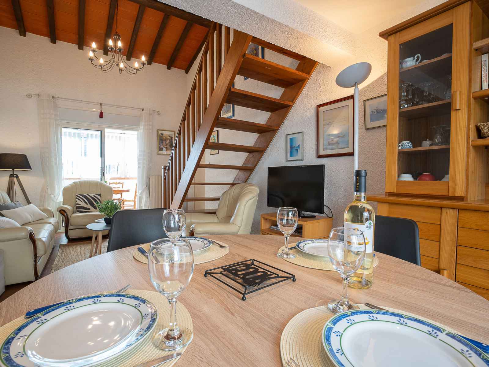 Maison mitoyenne 3 pièces 60 m2 sur 2 niveaux. séjour/salle à manger avec tv (écran plat). sortie sur la terrasse, sur la véranda, orientée est. 1 chambre avec 1 grand-lit (140 cm, longueur 190 cm), tv (écran plat). sortie sur la véranda. coin cuisine dans l'entrée (4 plaques de cuisson, lave-vaisselle, micro-ondes, congélateur,