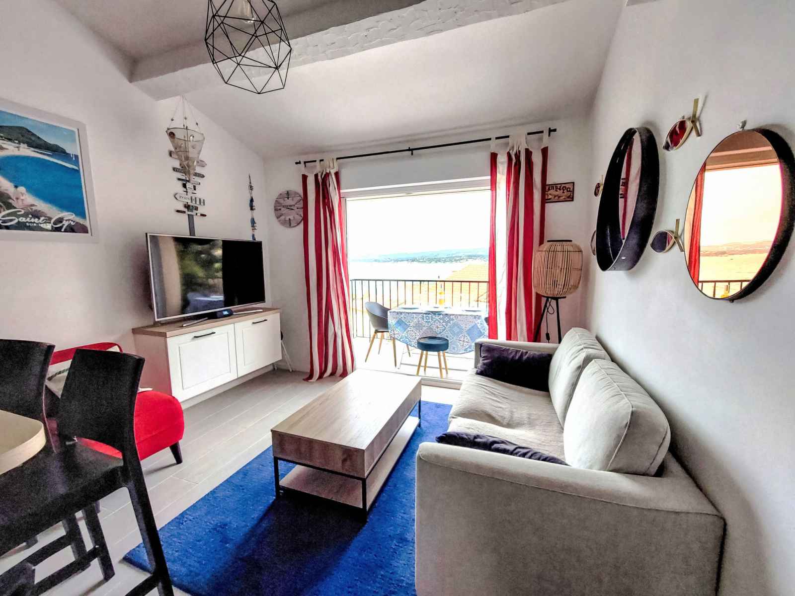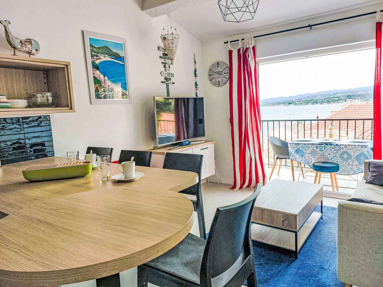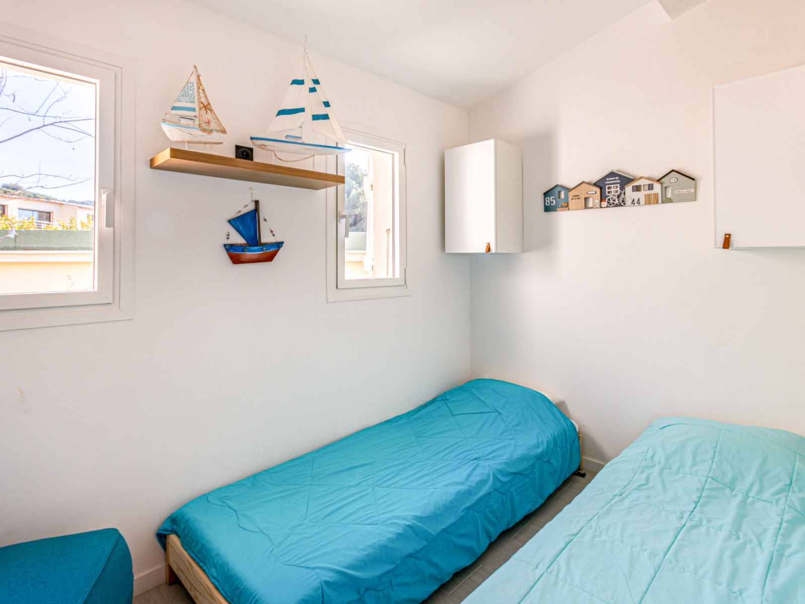 chambre avec 1 lit gigogne (2 x 80 cm, longueur 190 cm), air-conditionné. Cuisine ouverte (four, lave-vaisselle, 2 plaques à induction, grille-pain, bouilloire électrique, micro-ondes, congélateur, cafetière électrique, Capsules pour machine à café (Nespresso) (NON INCLUSES)). Chauffage à air chaud. Terrasse 5 m2. Meubles de terrasse. Très belle vue sur la mer et le port. A disposition: lave-linge. Internet (Connexion WIFI, gratuit). Garage, hauteur 270 cm, largeur 350 cm. Veuillez noter: TV seulement FR. Détecteur de fumée. l'accés à la maison se fait par le garage au rez de chaussée. 83112000646Z5