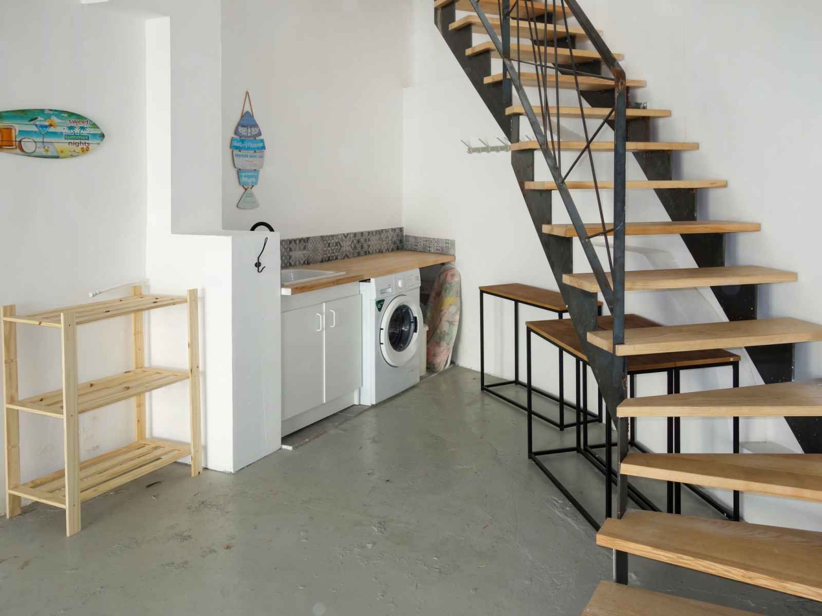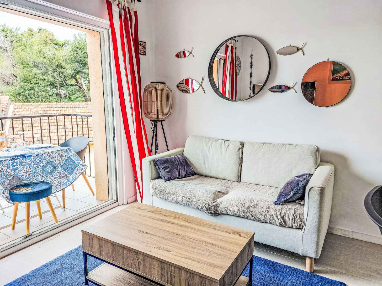 Maison mitoyenne 3 pièces 50 m2 sur 2 niveaux. clair, complètement rénovée en 2020, aménagement confortable et agréable: à l'étage supérieur: 1 chambre avec 1 grand-lit (1 x 160 cm, longueur 200 cm), air-conditionné. douche, wc séparé. 2ème étage: séjour/salle à manger avec tv et air-conditionné. sortie sur la terrasse. 1 petite