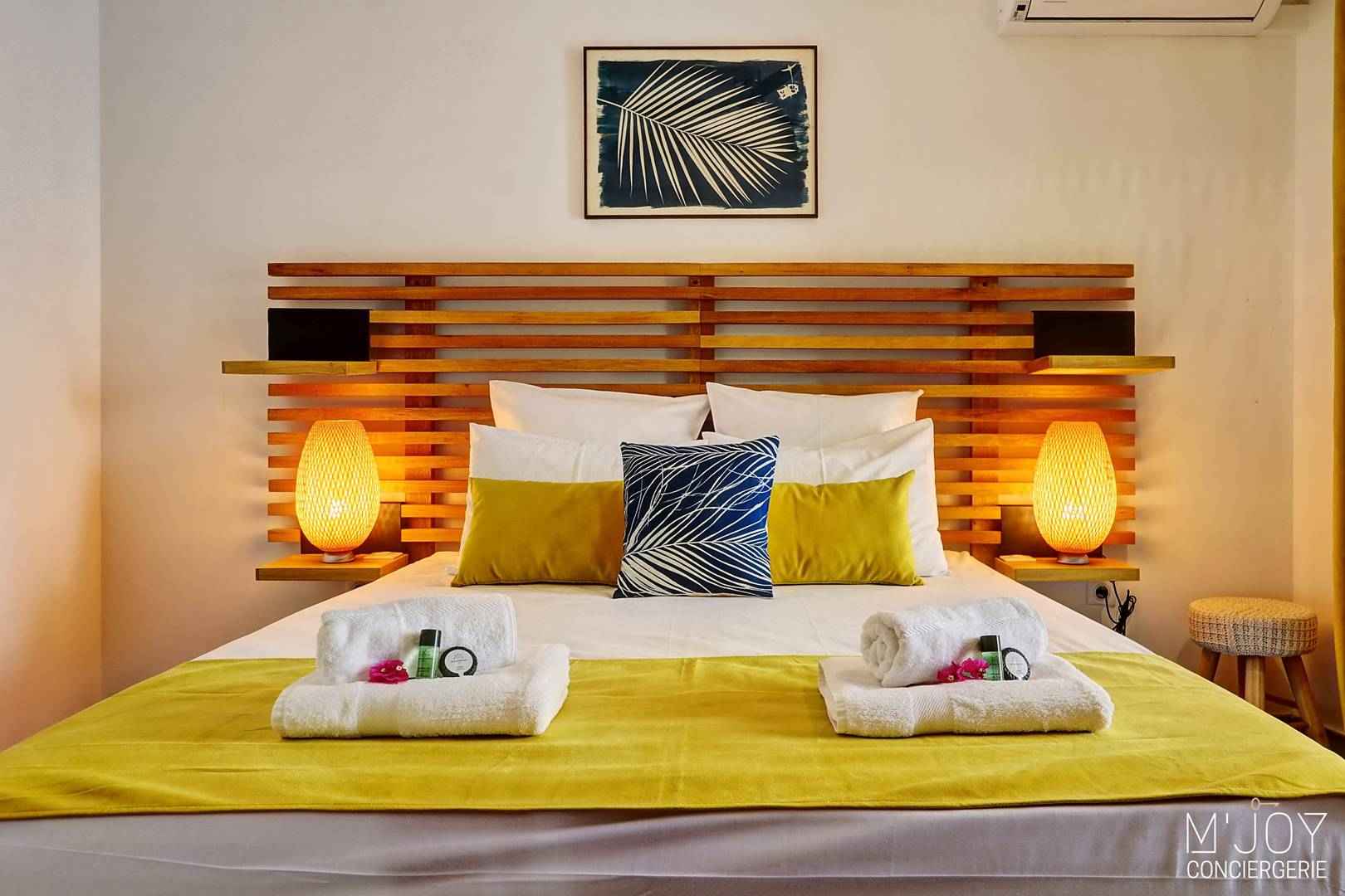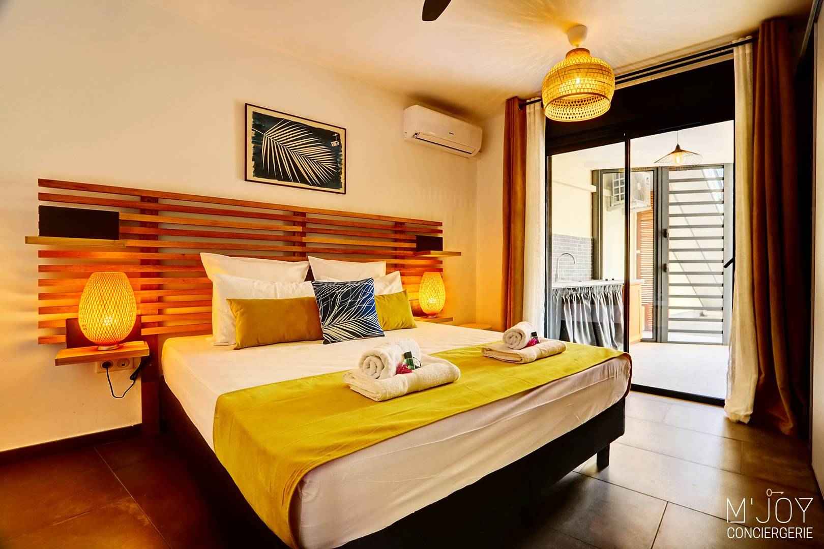 - Climatisation + brasseur d’air dans chacune des 2 chambres et la pièce de vie