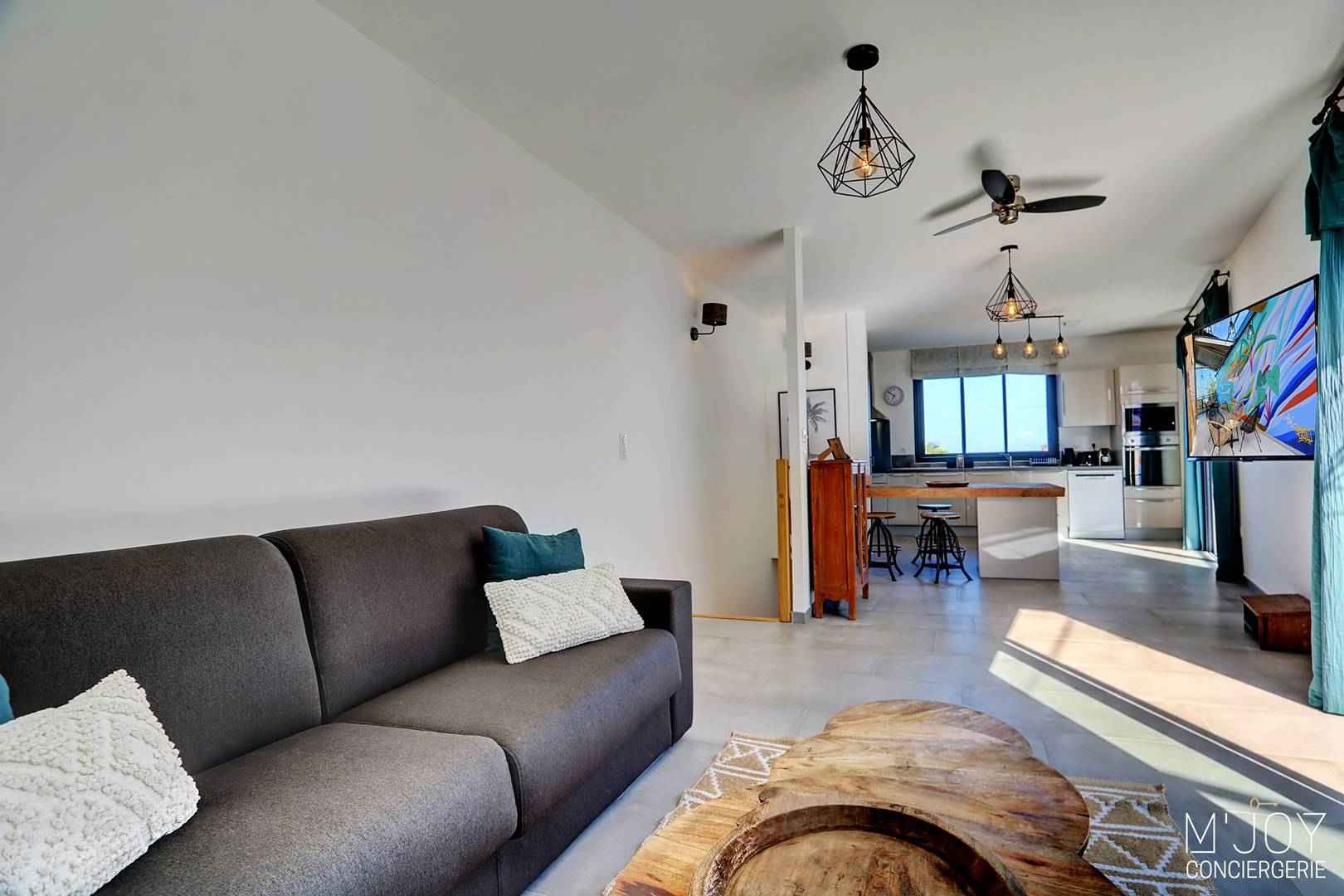 - Un salon séjour avec canapé convertible (160 x 200) et TV XXL