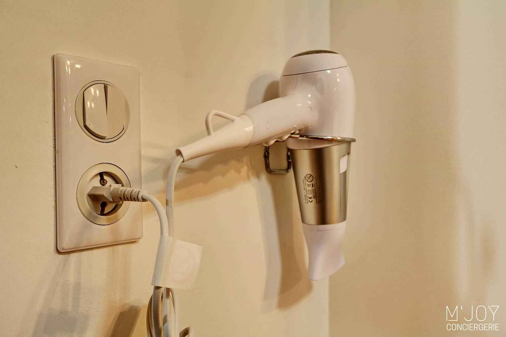 - Table et fer à repasser, sèche-cheveux, etc.