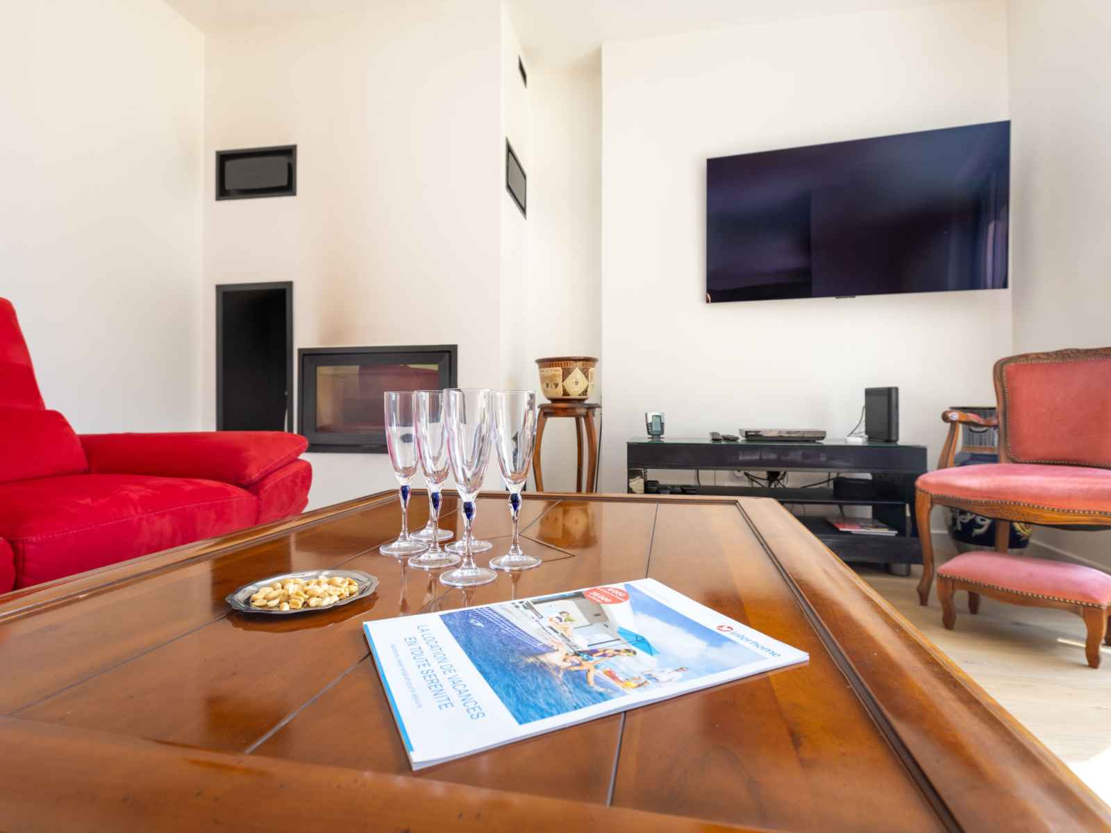 Maison 4 pièces 120 m2 sur 2 niveaux. rénovée en 2024, aménagement confortable et de bon goût: séjour/salle à manger avec baie vitrée avec cheminée (uniquement à titre de décoration), tv (écran plat). sortie sur la terrasse. grande cuisine ouverte (four, lave-vaisselle, 4 plaques à induction, grille-pain, bouilloire électrique,