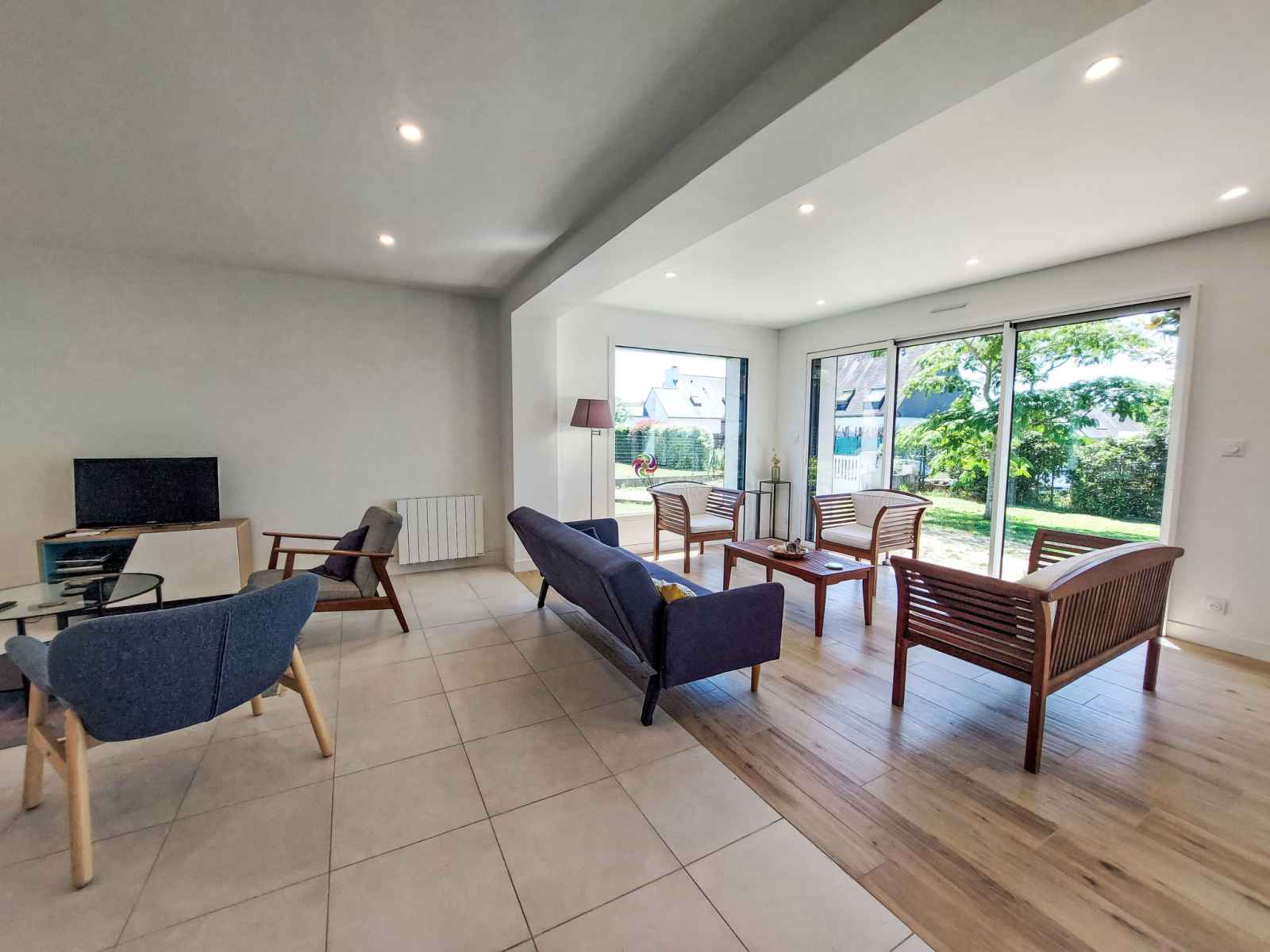 Maison 5 pièces 150 m2 sur 2 niveaux, au rez-de-chaussée. aménagement agréable: séjour/salle à manger avec tv (écran plat). 1 chambre avec 1 grand-lit (1 x 160 cm, longueur 200 cm). 1 chambre avec 1 lit (80 cm, longueur 200 cm). cuisine ouverte (lave-vaisselle, 4 plaques vitrocéramiques, micro-ondes, congélateur, cafetière électrique,