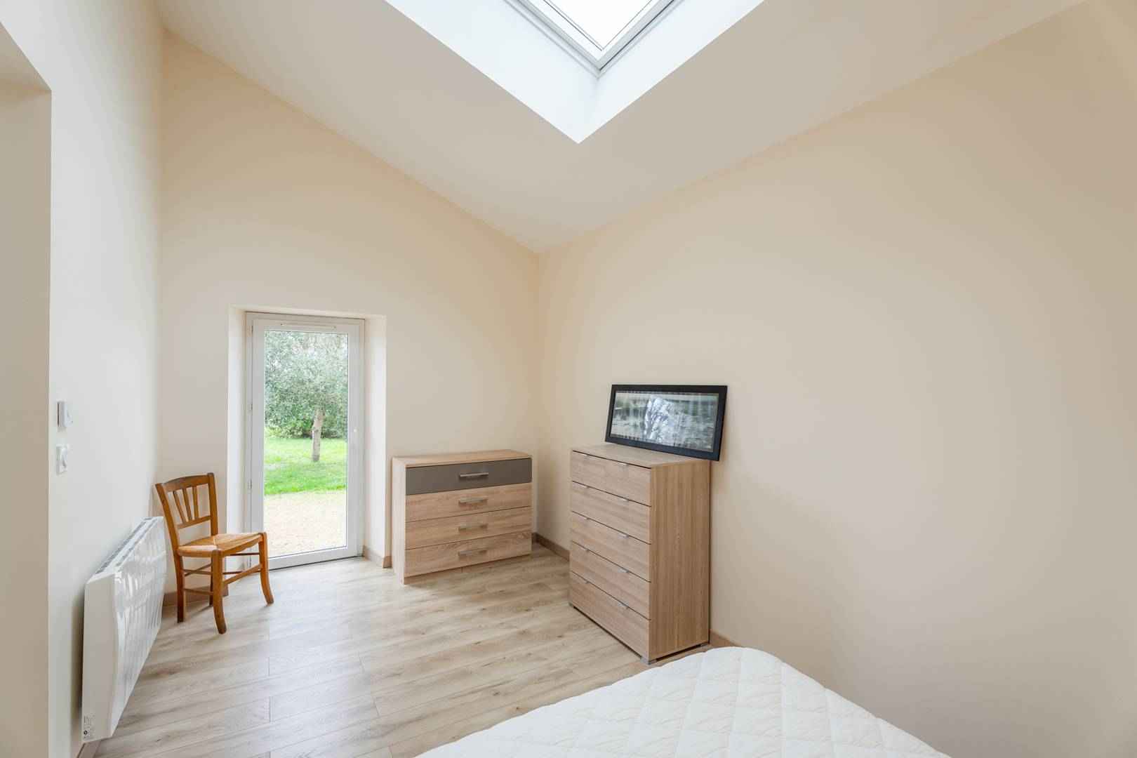 - Chambre parentale avec lit double (160, couette) ouvrant sur la terrasse