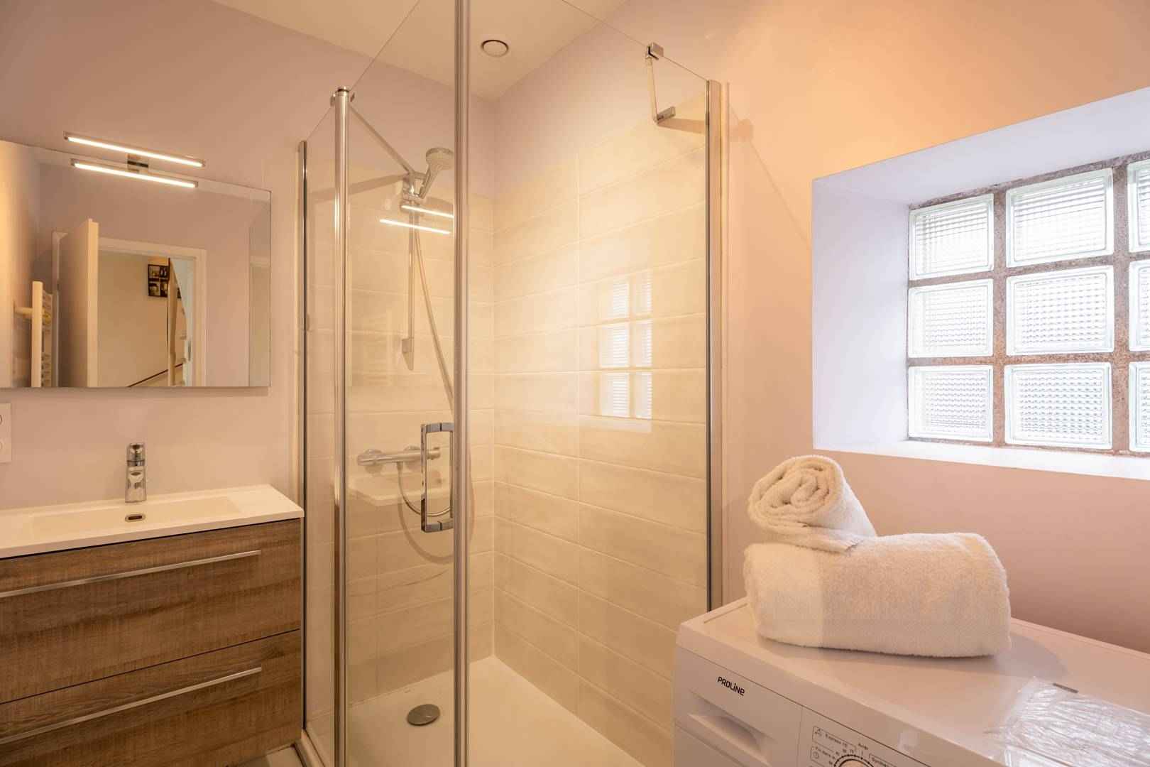 - Salle d'eau avec douche italienne et lave-linge