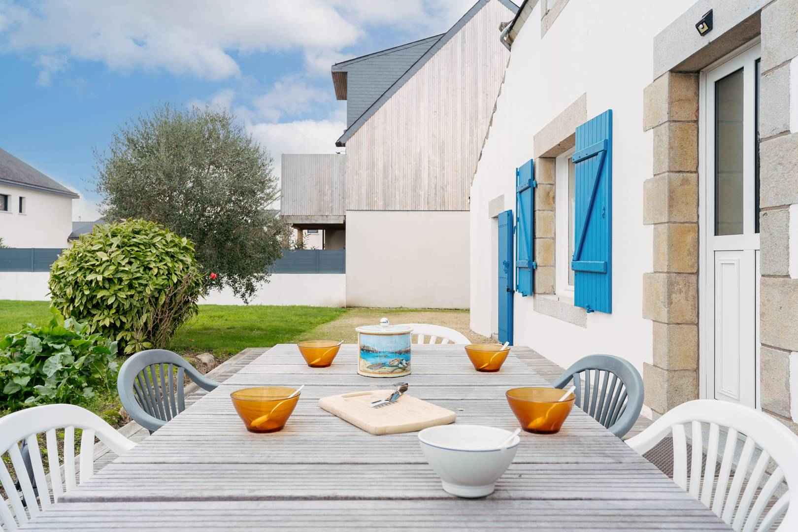 Dans le golfe du morbihan, jolie maison de vacances à saint philibert proche des plages et de toutes commodités, pour 7 personnes (env. 90m²) avec grand jardin clos de 500m² :