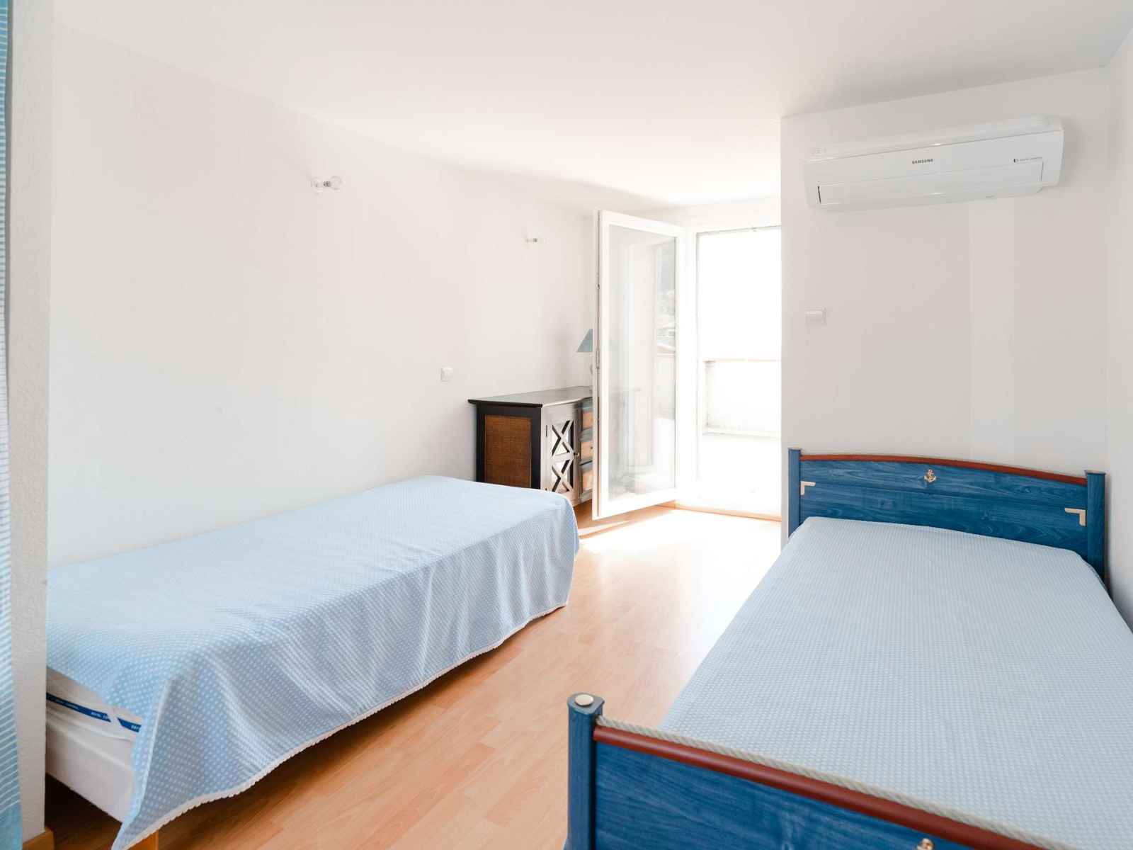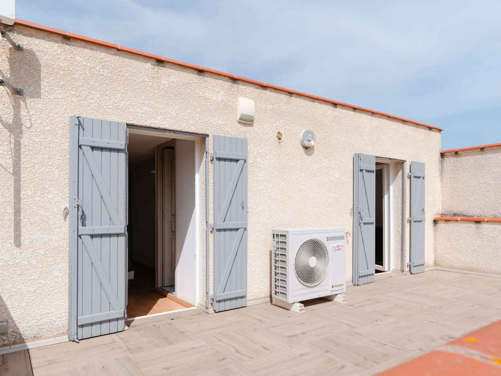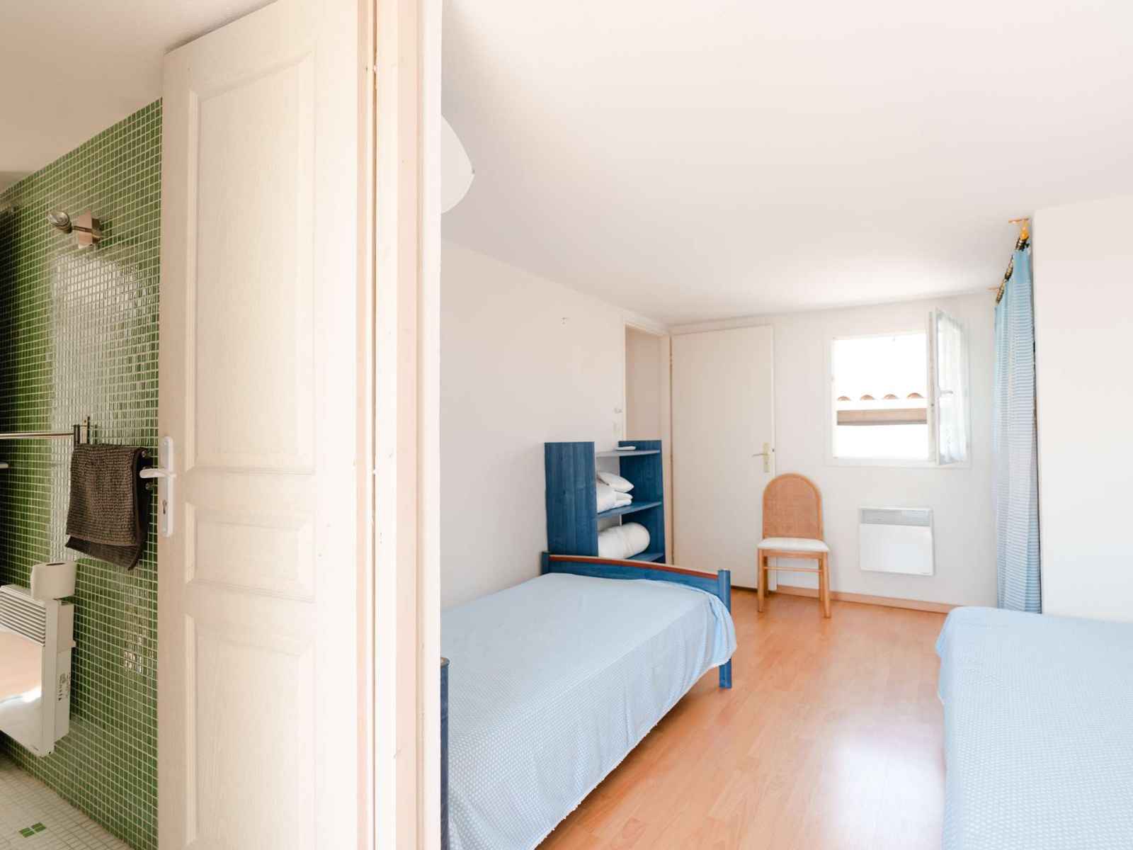 A l'étage 2 spacieuses chambres climatisées se partagent une salle d'eau avec WC et une terrasse avec vue mer. La première chambre est composée d'un lit double (140x190) avec placard, et la seconde chambre dispose de 2 lits simples (2x90x190) avec placard.