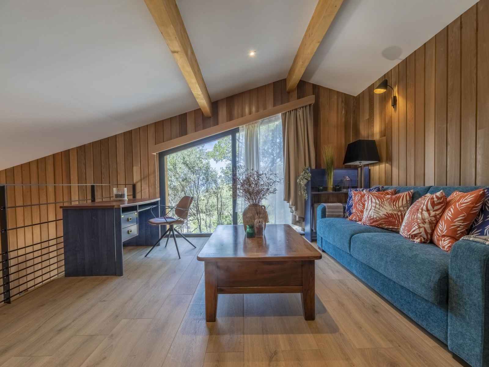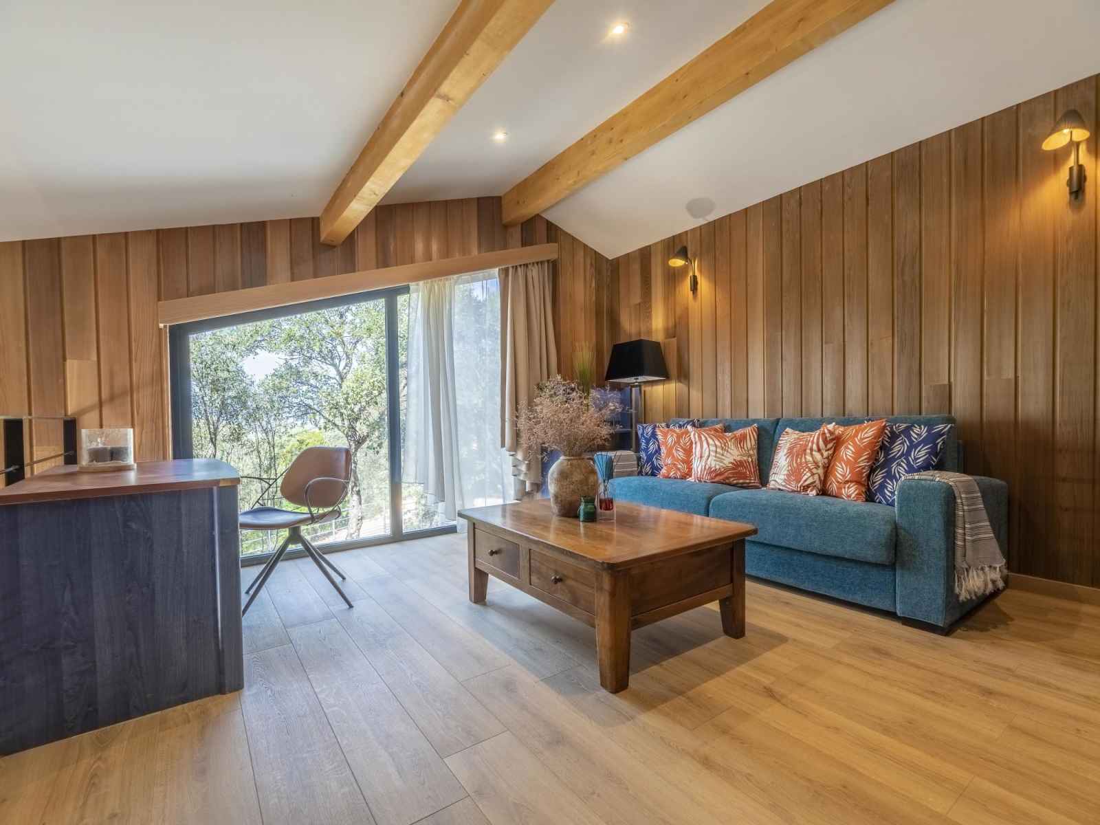 "caseddu d'arasu", chalet 3 pièces 80 m2. logement idéal pour 4 adultes + 1 enfant. aménagement confortable et plaisant: séjour/salle à manger avec table pour les repas et tv (écran plat). sortie sur la terrasse. 1 chambre avec 1 grand-lit (160 cm, longueur 200 cm), douche et tv (écran plat). sortie sur la terrasse. cuisine ouverte (four,