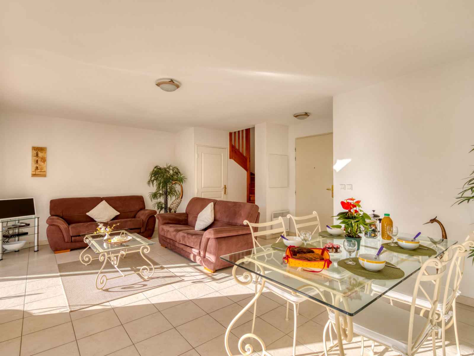 Maison mitoyenne 3 pièces 76 m2 sur 2 niveaux, situation ouest. spacieux et clair, aménagement agréable et plaisant: grand séjour/salle à manger avec tv. sortie sur la terrasse, sur le jardinet. grande cuisine (four, lave-vaisselle, 4 plaques vitrocéramiques, grille-pain, bouilloire électrique, cafetière électrique). sortie sur la