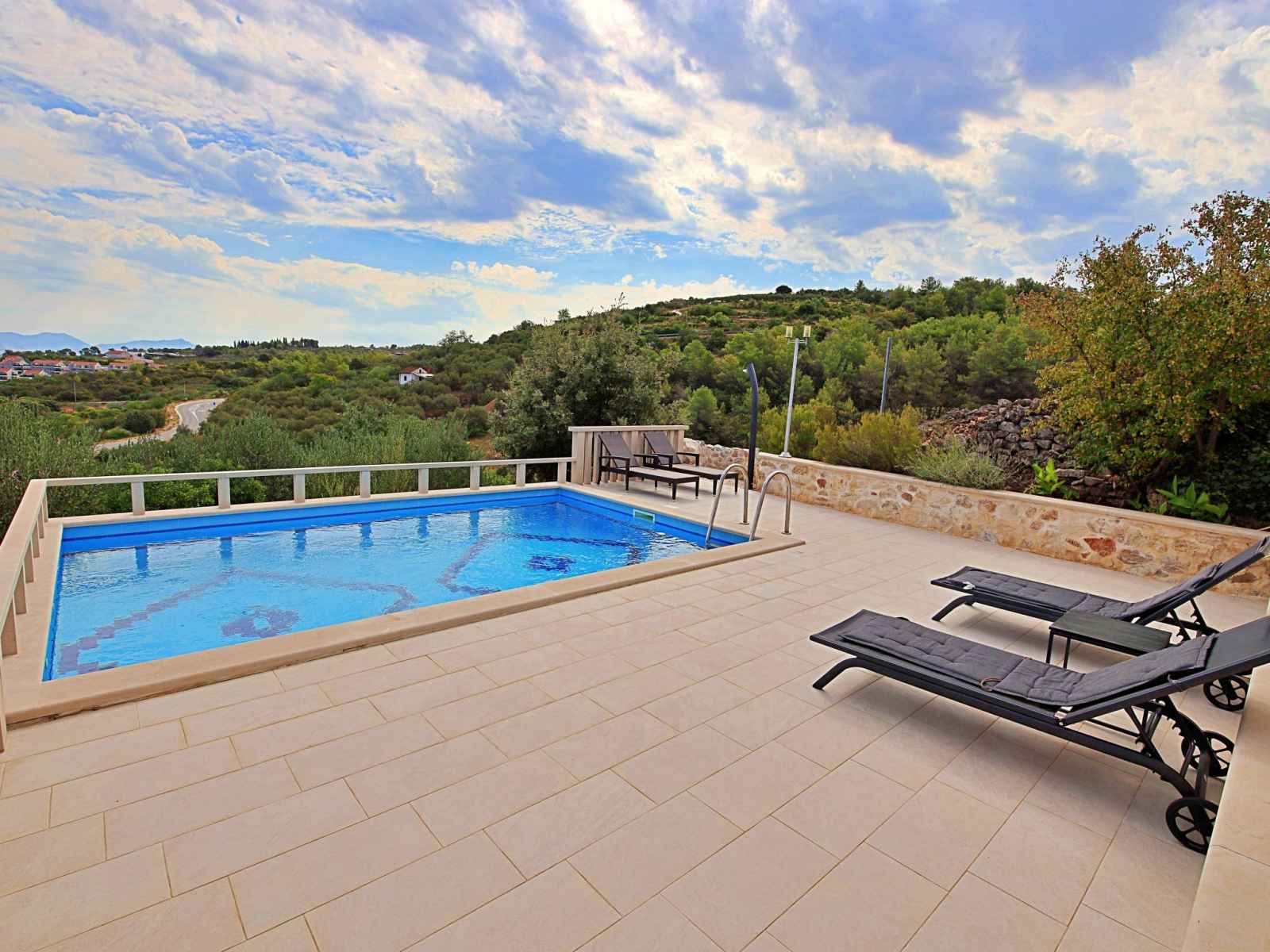 Maison individuelle "villa tonka", de 2 étages. À 700 m du centre de sutivan, situation tranquille, ensoleillée, surélevée, à 800 m de la mer, à 1 km de la plage. a usage privé: terrain 1'330 m2, piscine rectangulaire (6 x 4 m, profondeur 140 cm, disponibilité saisonnière: 02.mai. - 26.sep.). douche extérieure, terrasse (50 m2),