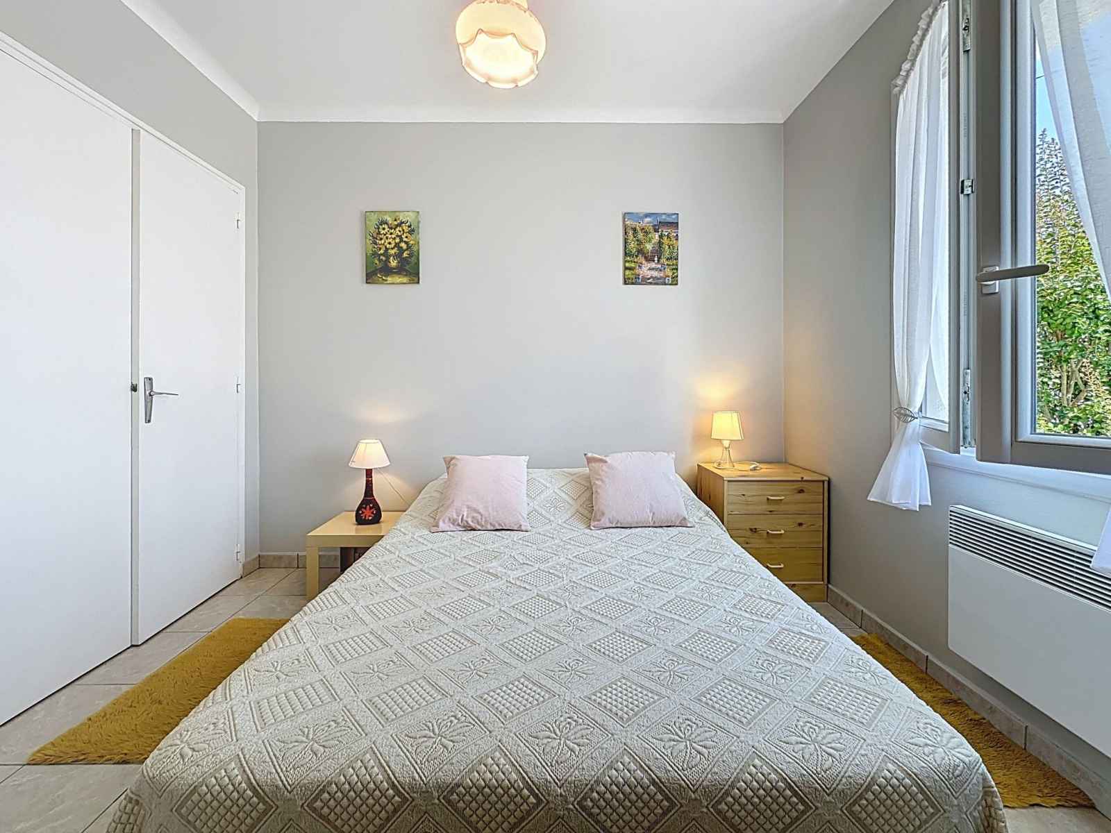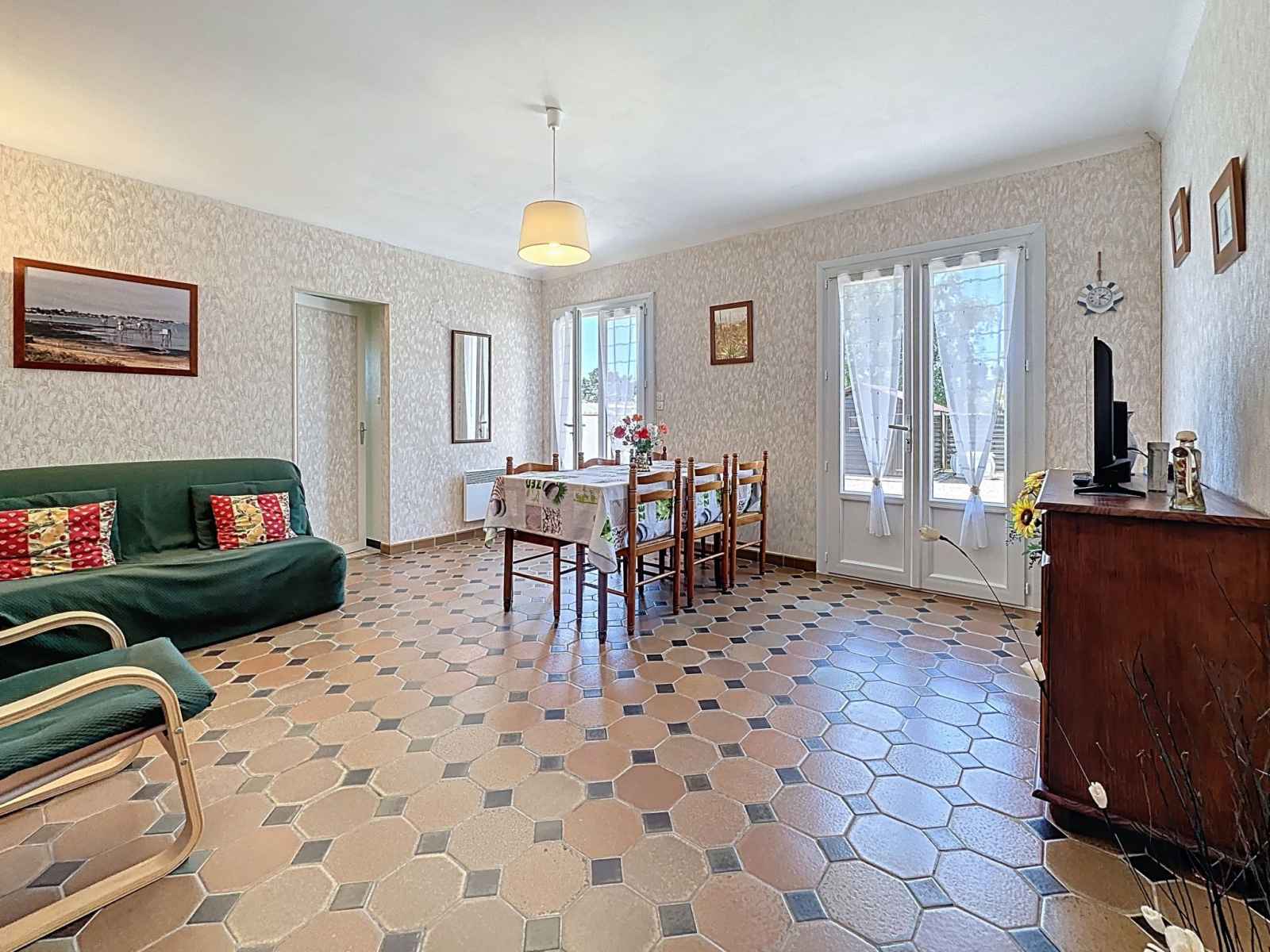 Maison 3 pièces 70 m2. séjour/salle à manger avec tv (écran plat). sortie sur la terrasse. 1 chambre avec 1 grand-lit (140 cm, longueur 190 cm). 1 chambre avec 2 lits (90 cm, longueur 190 cm). sortie sur la terrasse. cuisine (4 plaques de cuisson, lave-vaisselle, grille-pain, micro-ondes, congélateur, cafetière électrique). douche, wc