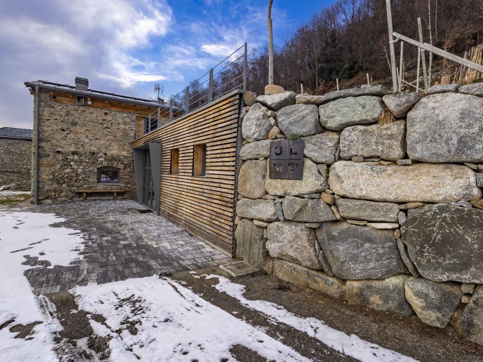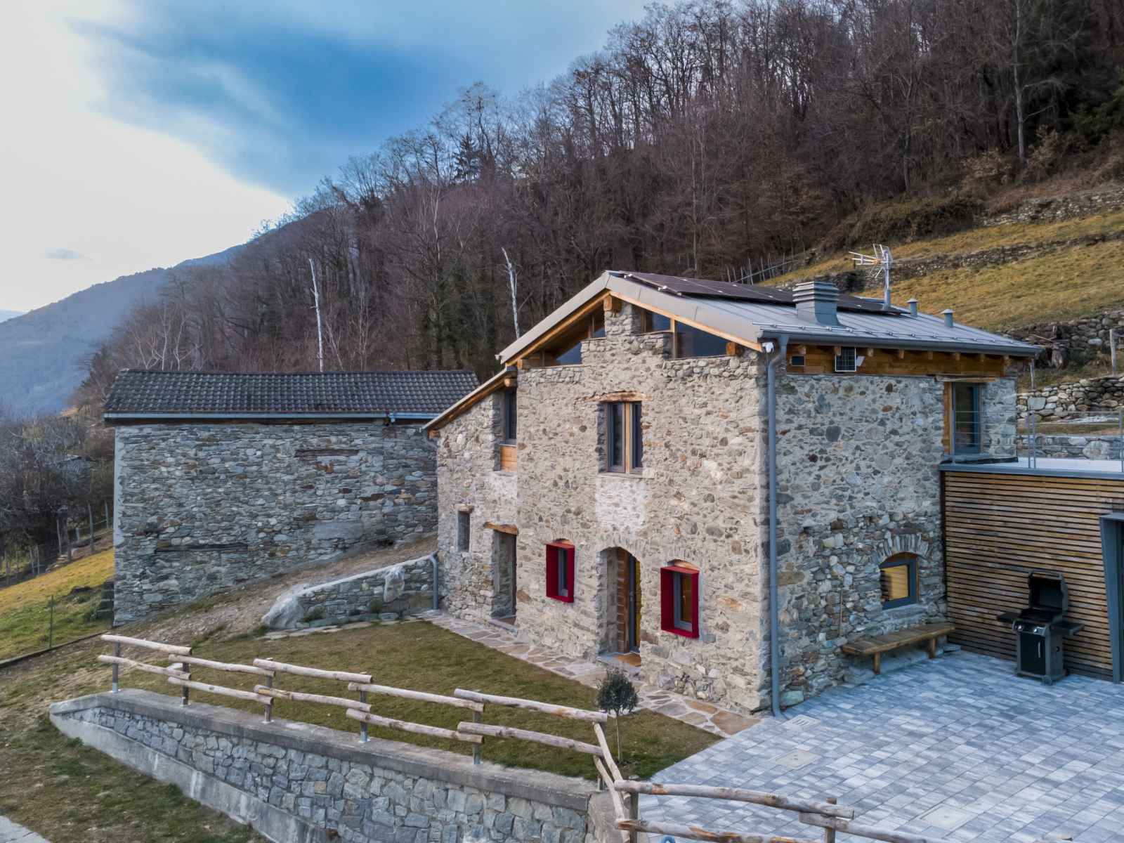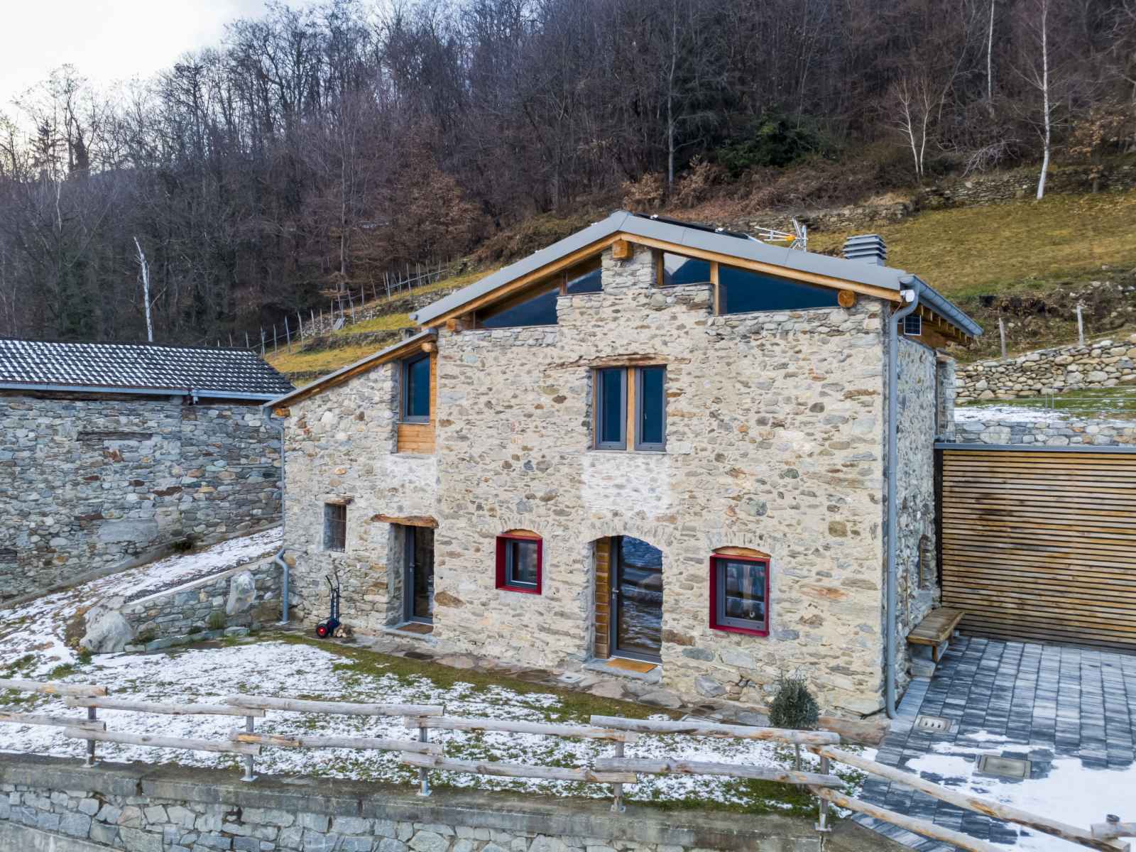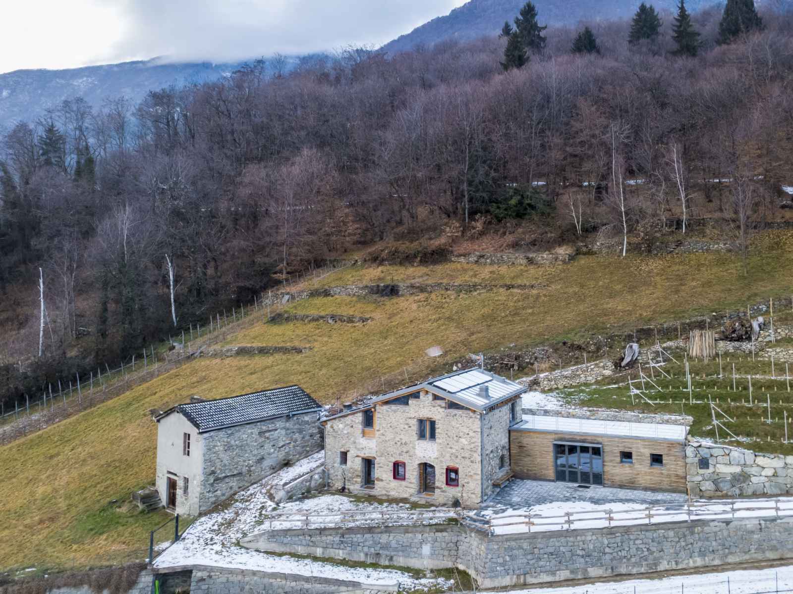 Chalet rustique, historique, individuel "casa ulme'", 450 m au dessus du niveau de la mer, de 2 étages, du 19ème siècle, renové en 2025, environné par les prés et vignobles. dans le hameau de valdomen, à 1.7 km du centre de buglio in monte, à 13 km du centre de morbegno, situation isolée, tranquille, ensoleillée sur un versant, à 100 m