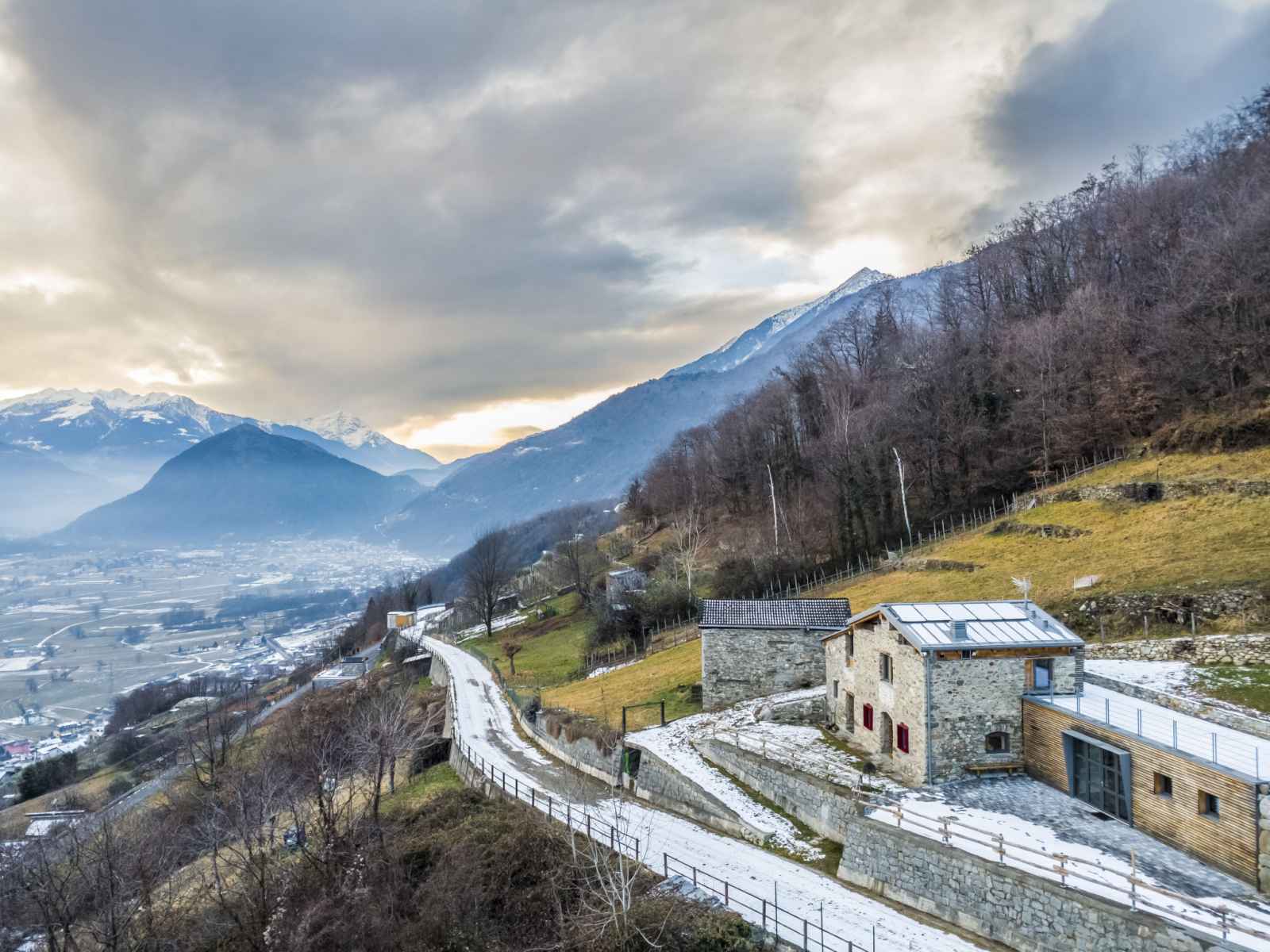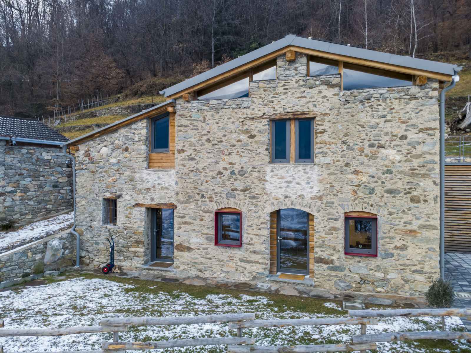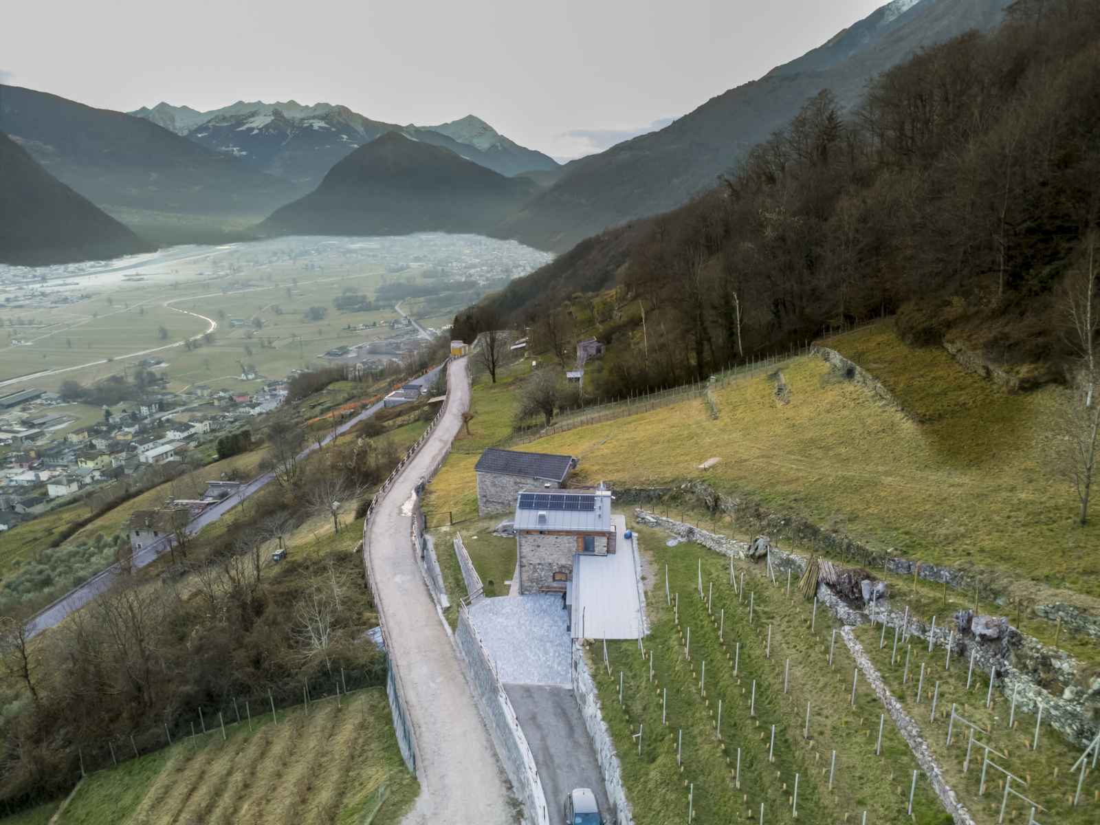 Chalet rustique, historique, individuel "casa ulme'", 450 m au dessus du niveau de la mer, de 2 étages, du 19ème siècle, renové en 2025, environné par les prés et vignobles. dans le hameau de valdomen, à 1.7 km du centre de buglio in monte, à 13 km du centre de morbegno, situation isolée, tranquille, ensoleillée sur un versant, à 100 m