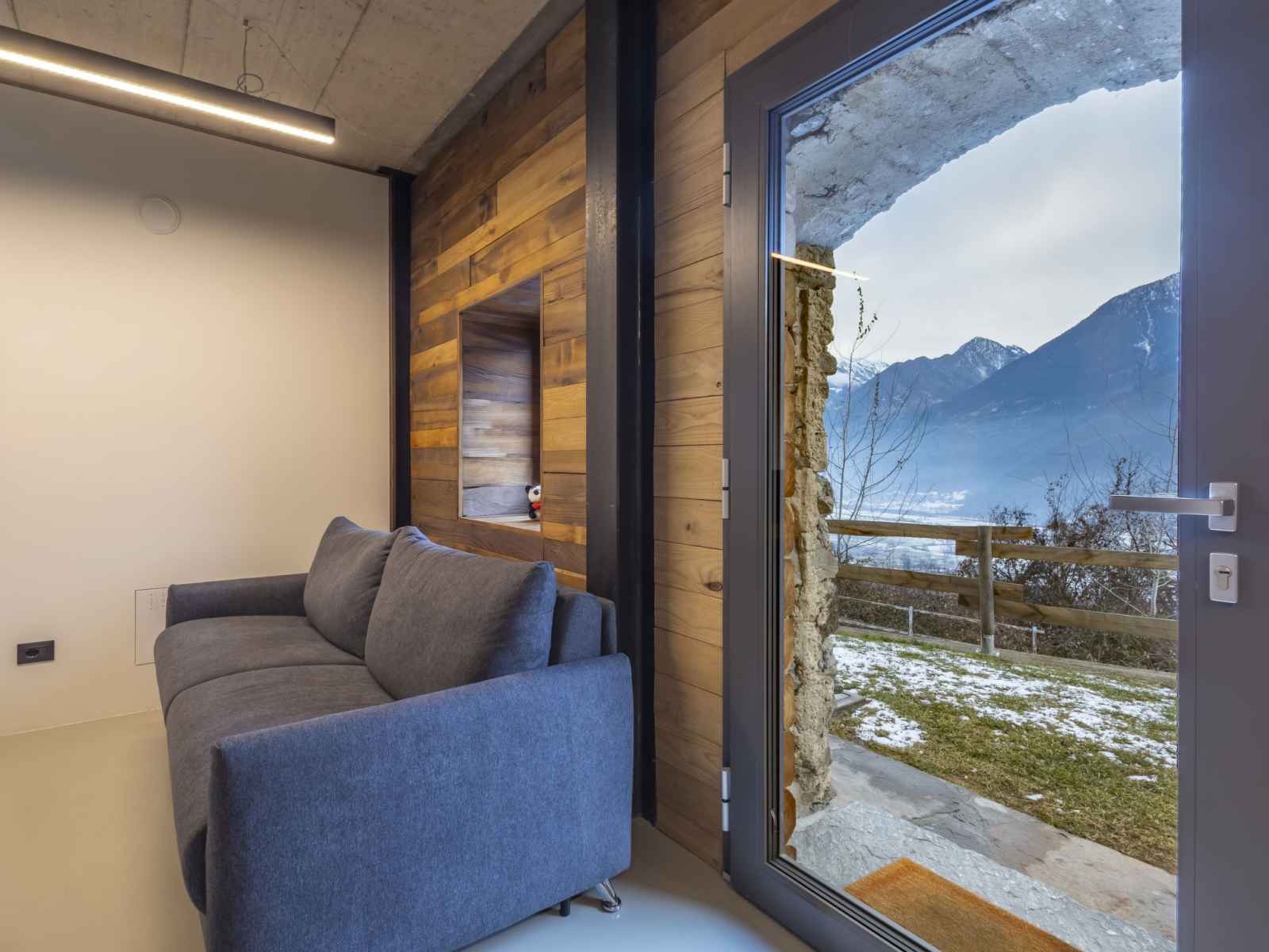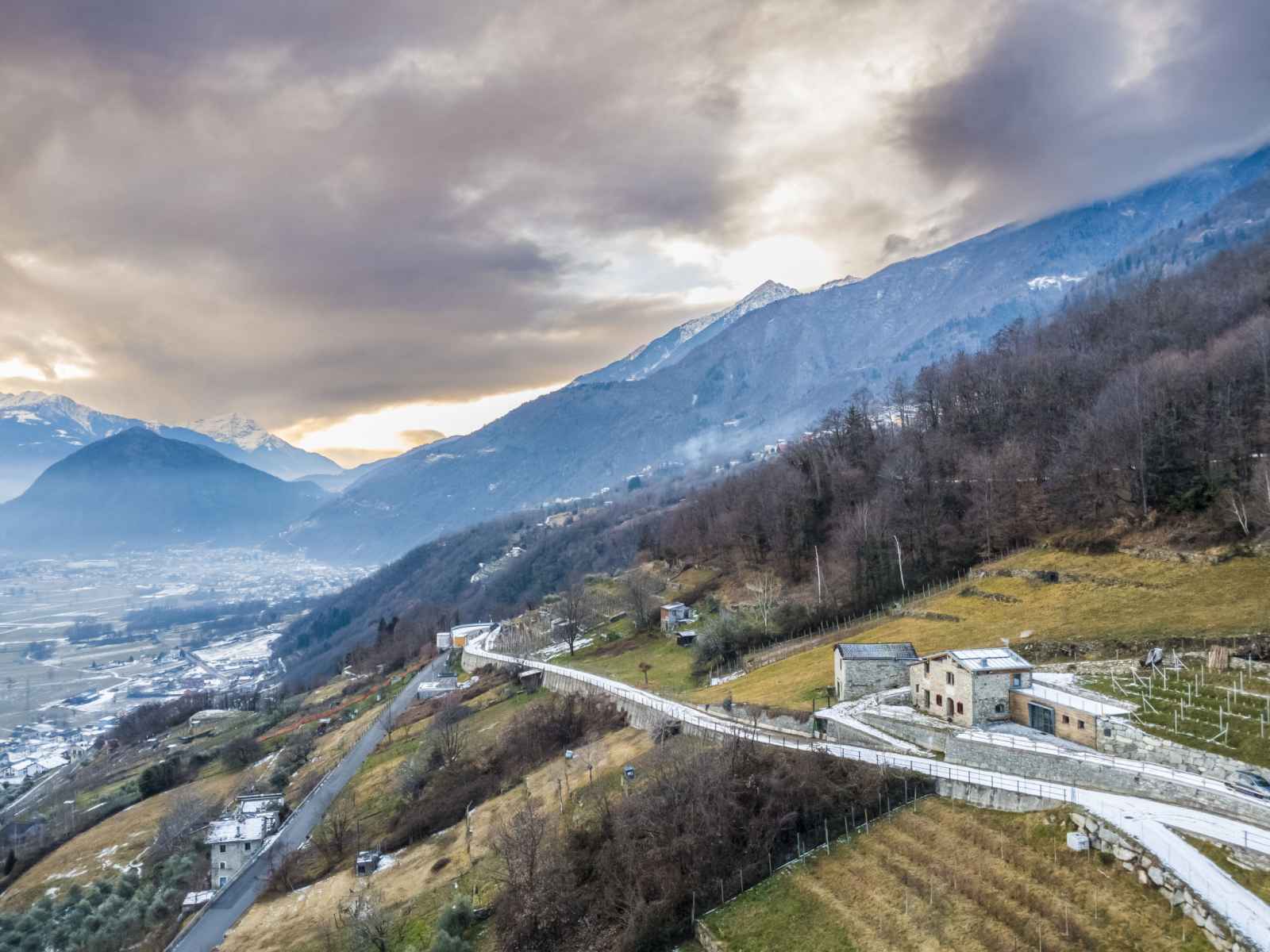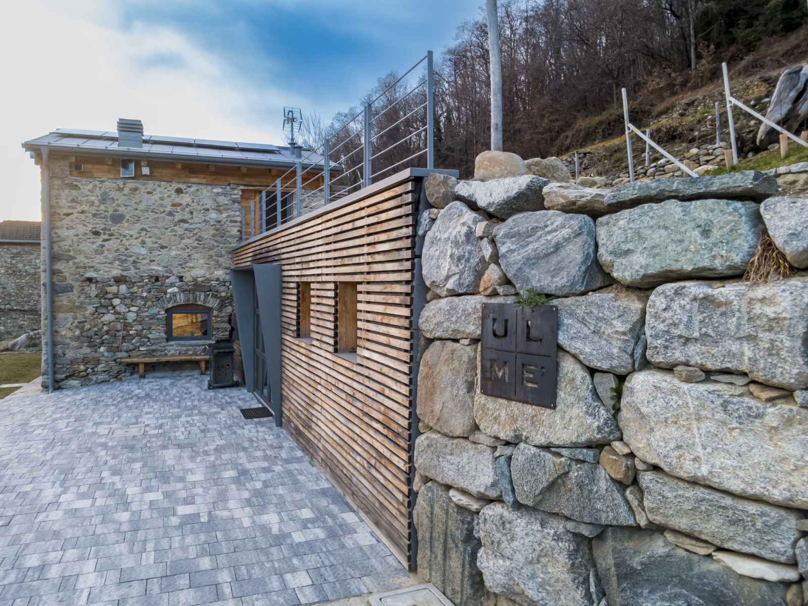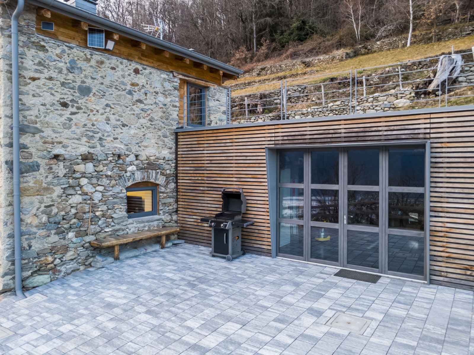 Chalet rustique, historique, individuel "casa ulme'", 450 m au dessus du niveau de la mer, de 2 étages, du 19ème siècle, renové en 2025, environné par les prés et vignobles. dans le hameau de valdomen, à 1.7 km du centre de buglio in monte, à 13 km du centre de morbegno, situation isolée, tranquille, ensoleillée sur un versant, à 100 m
