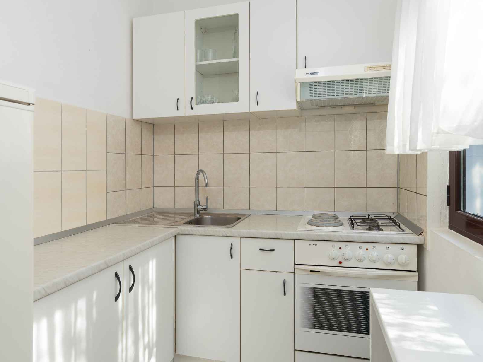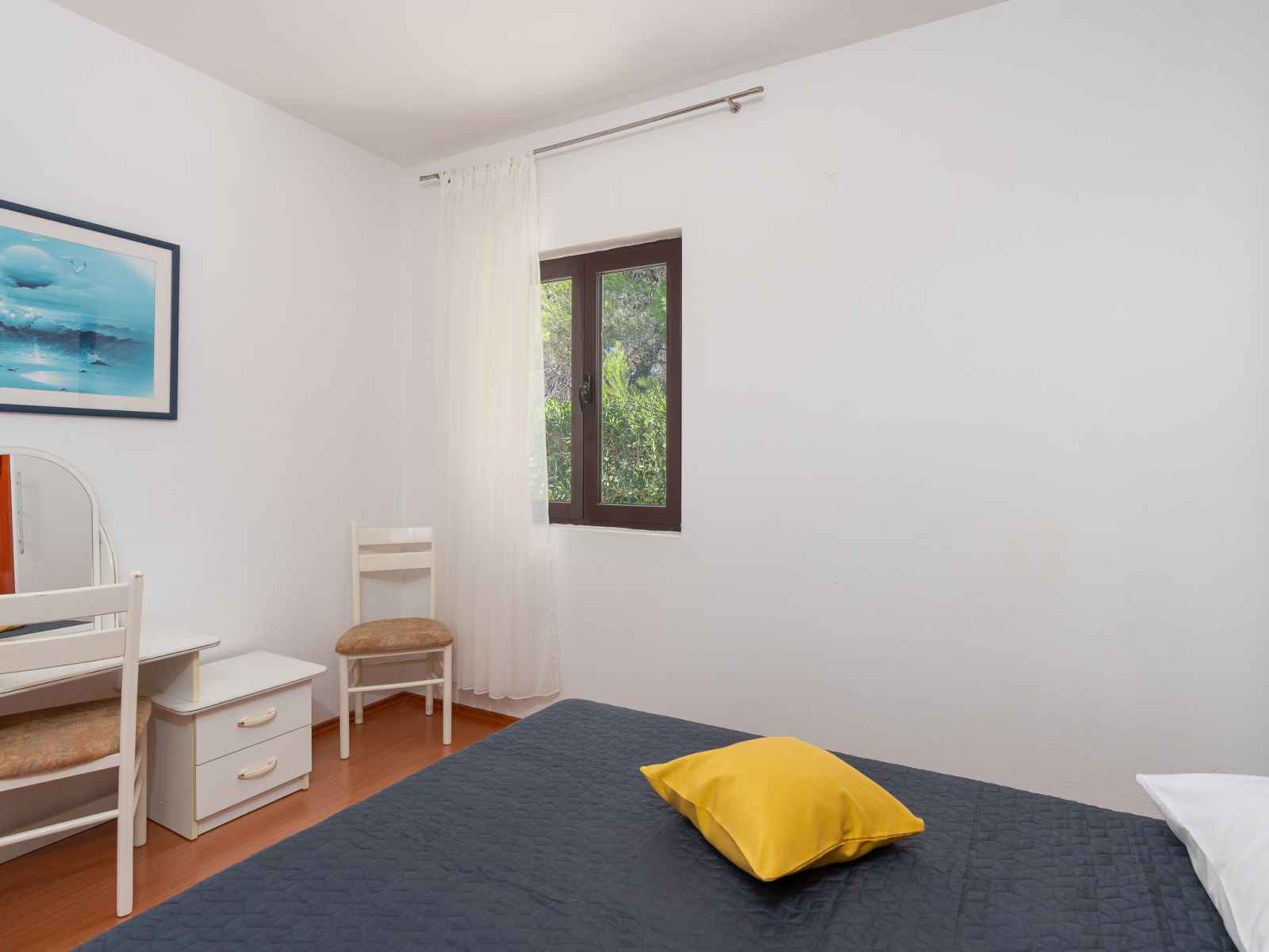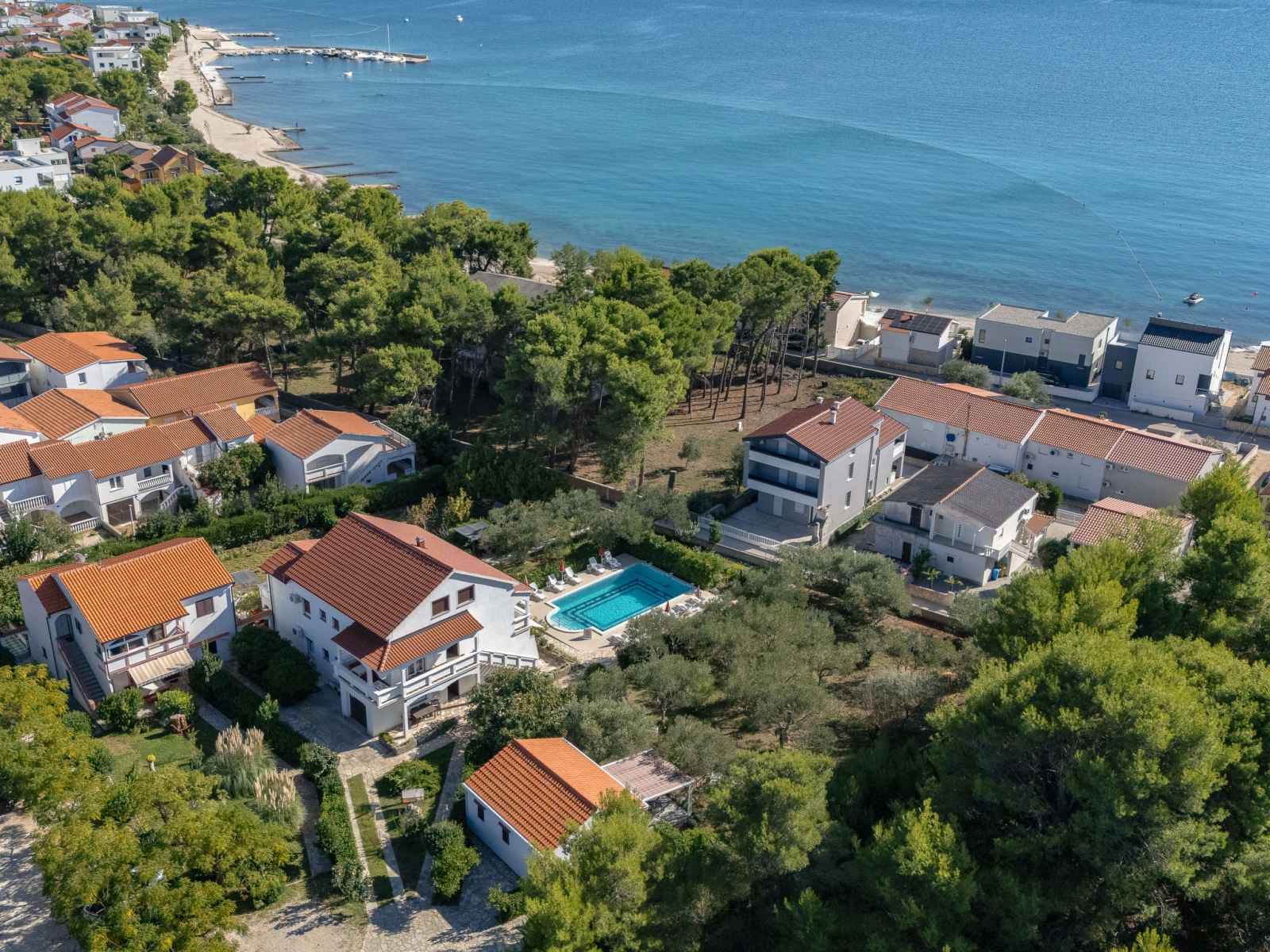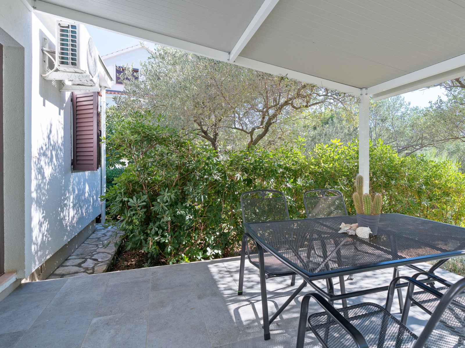 Belle, petite maison individuelle "nikolina". en-dehors de la localité, à 1 km du centre de vir, situation ensoleillée, à 400 m de la mer, à 400 m de la plage, dans la verdure. en commun: jardin avec plantes et arbres, verger, piscine rectangulaire (10 x 6 m, profondeur 150 - 170 cm, disponibilité saisonnière: 04.mai. - 14.sep.) avec