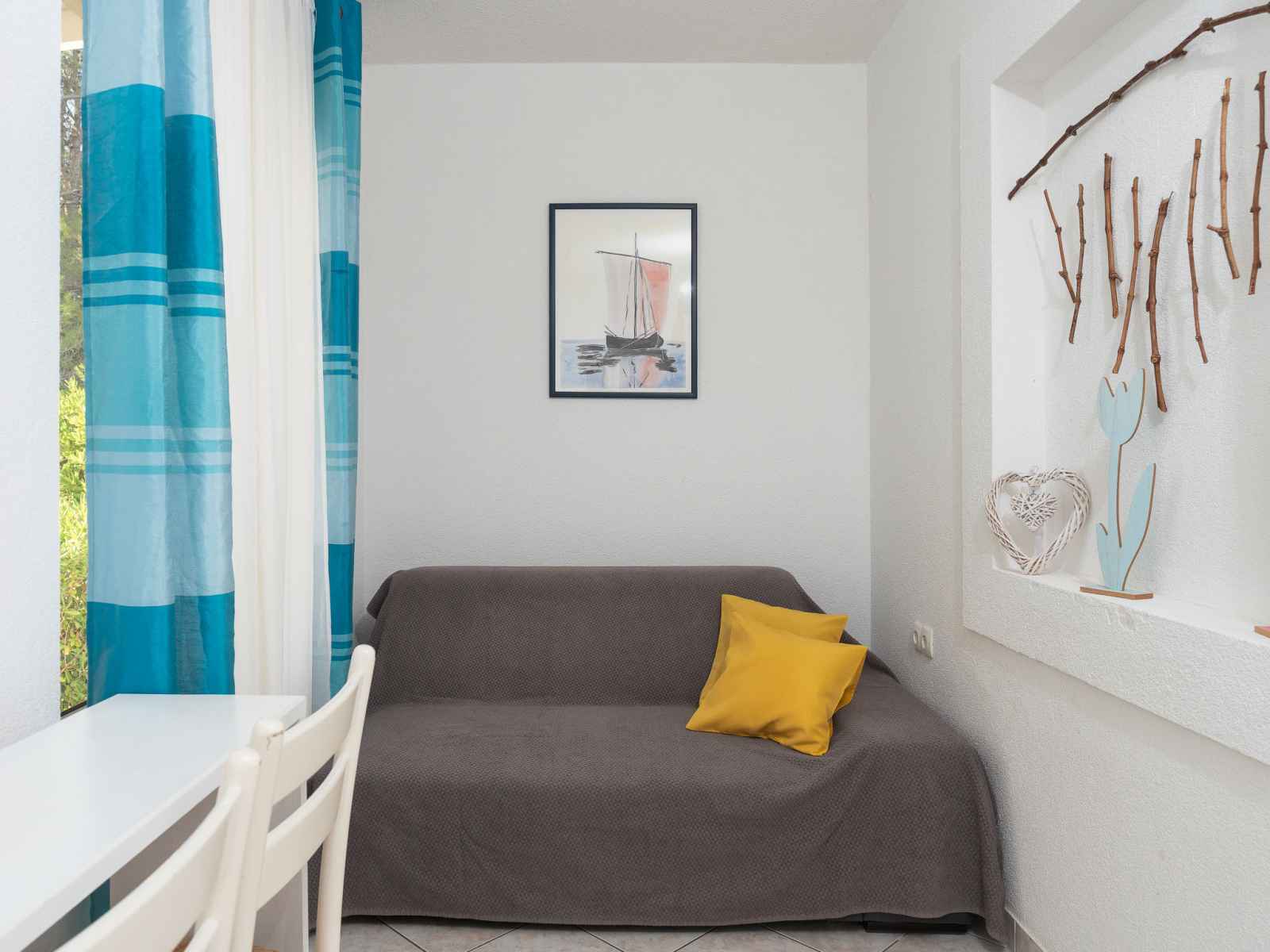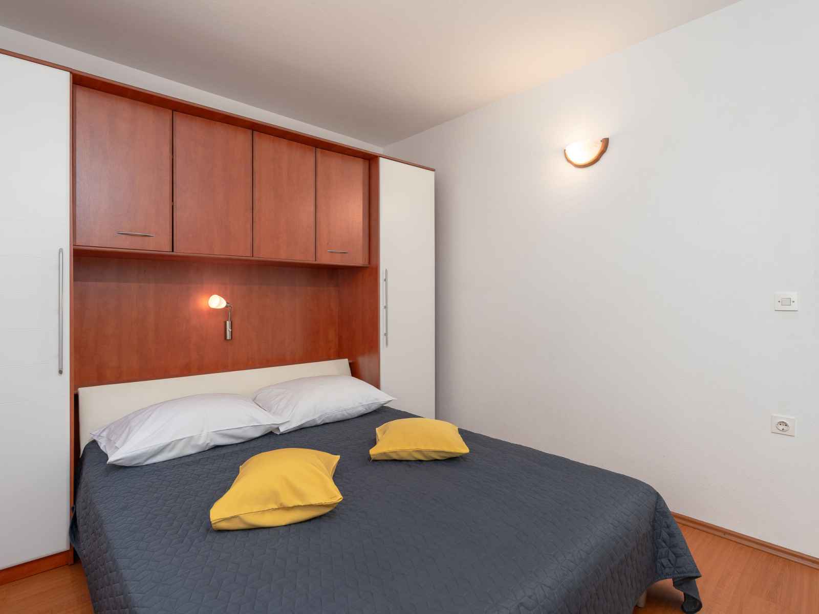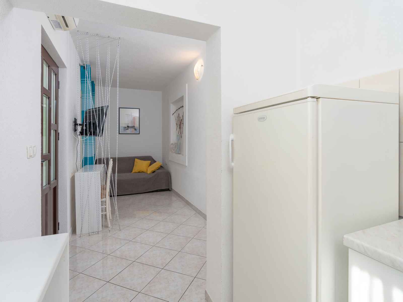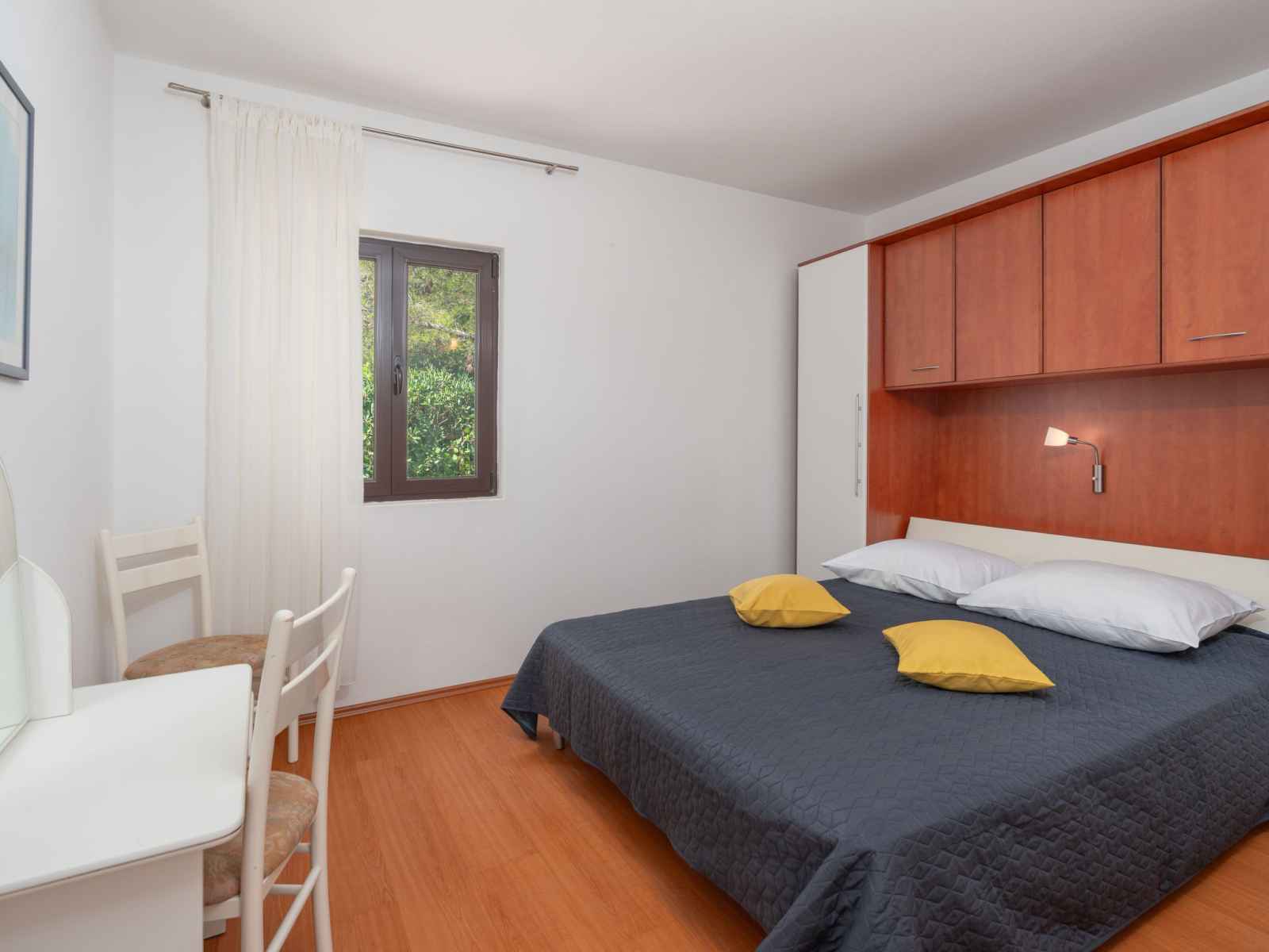 Maison 3 pièces 55 m2. séjour/salle à manger 16 m2 avec tv (satellite) et air-conditionné. 1 chambre avec 1 grand-lit (160 cm, longueur 200 cm). 1 chambre avec 2 lits (90 cm, longueur 200 cm). petite cuisine ouverte (4 plaques de cuisson, four). douche/wc. air-conditionné (en sus). pas de chauffage. terrasse 16 m2, couverte. meubles de