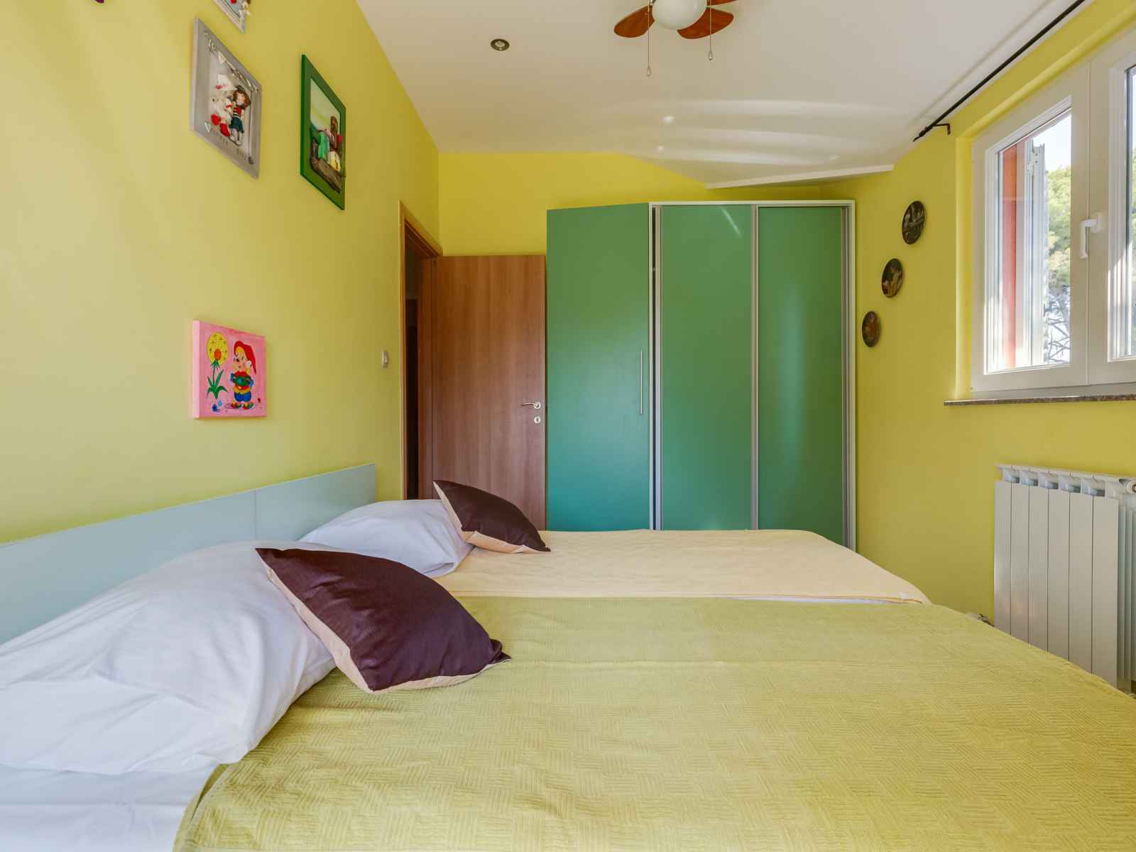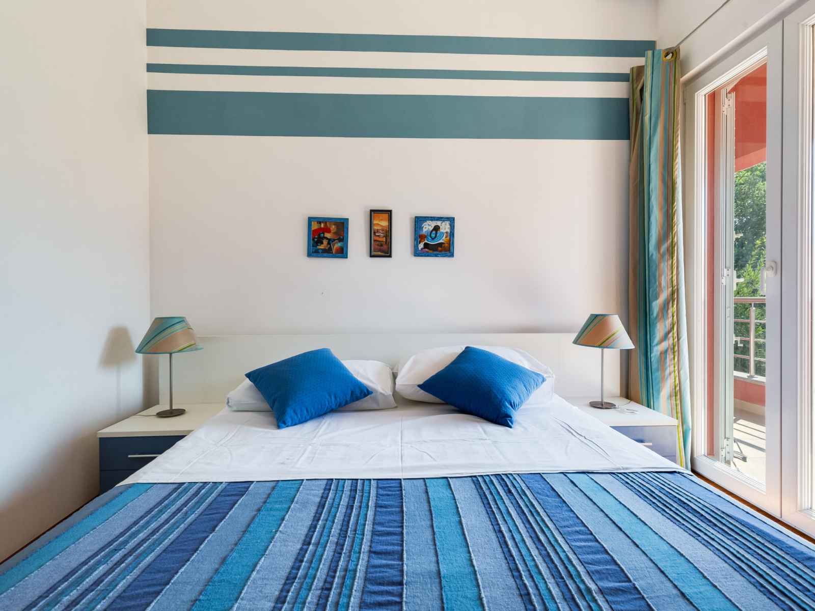 supérieur: 1 chambre avec 1 lit double (2 x 90 cm, longueur 190 cm). Sortie sur le balcon. 1 chambre avec 1 grand-lit (160 cm, longueur 190 cm). Sortie sur le balcon. 1 chambre avec 1 grand-lit (160 cm, longueur 200 cm). Bain/WC. Pas de chauffage. Balcon 5 m2, terrasse 10 m2 partiellement couverte. Meubles de terrasse. A disposition: coffre-fort, fer à repasser, sèche-cheveux. Internet (Connexion WIFI, gratuit).