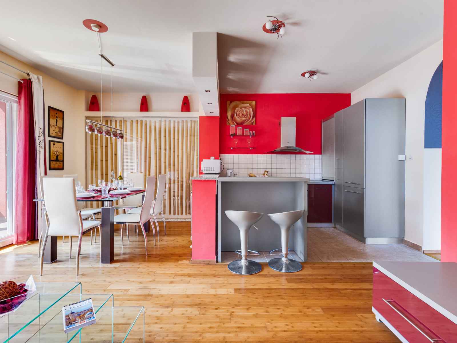 Maison jumelée 5 pièces 100 m2 sur 2 niveaux. séjour/salle à manger 35 m2 avec tv (satellite) (écran plat), air-conditionné. sortie sur la terrasse. 1 chambre avec 1 grand-lit (160 cm, longueur 200 cm). cuisine ouverte (four, lave-vaisselle, 4 plaques vitrocéramiques, bouilloire électrique, micro-ondes, congélateur). bain/wc. À l'étage