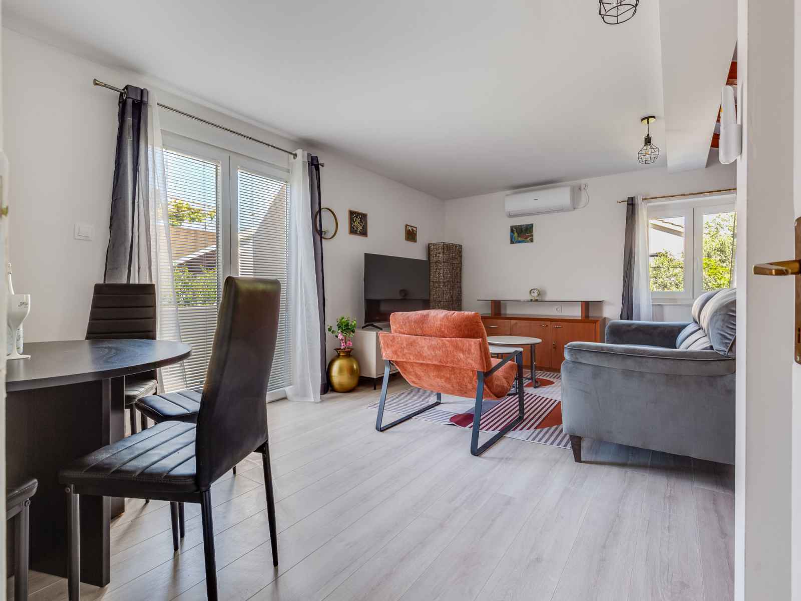 Maison 3 pièces 80 m2 sur 2 niveaux, situation sud-ouest. entrée avec air-conditionné. 2 chambres, chaque chambre avec: 1 grand-lit (140 cm, longueur 200 cm). cuisine (4 plaques de cuisson, micro-ondes, congélateur, cafetière électrique) avec table pour les repas et tv (écran plat). sortie sur la terrasse. douche/wc. pas de chauffage. À