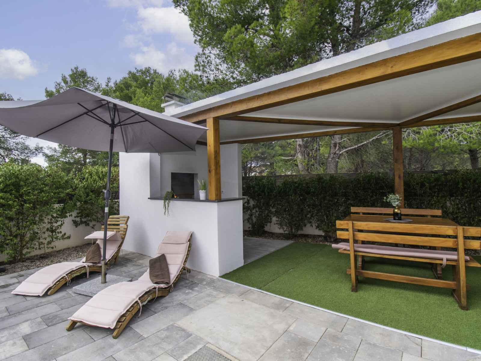 infrastructures de la maison: accès internet, lave-linge. navette depuis l´aéroport (en sus). place de parking (pour 2 voitures) près de la maison sur le terrain. magasins 200 m, restaurant 400 m, arrêt de bus 2.2 km, plage de graviers 400 m. une navette depuis l´aéroport peut être organisée sur demande.