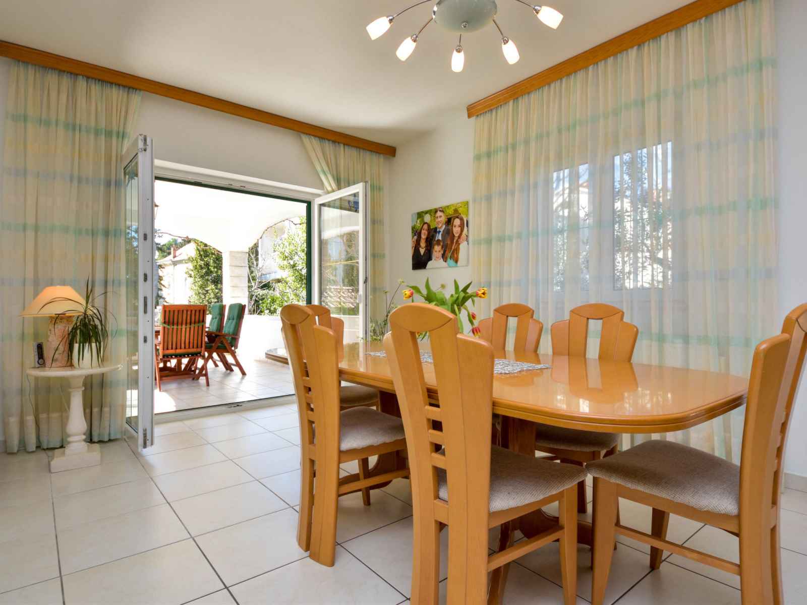 Belle maison individuelle accueillante pour les enfants "bila vila", de 2 étages, environnée par les arbres. dans le quartier de puntamika, à 800 m du centre de zadar, situation tranquille dans un quartier résidentiel, à 100 m de la mer, dans une impasse. a usage privé: terrain (clôturé), jardin avec pelouse et arbres. bain à remous ,