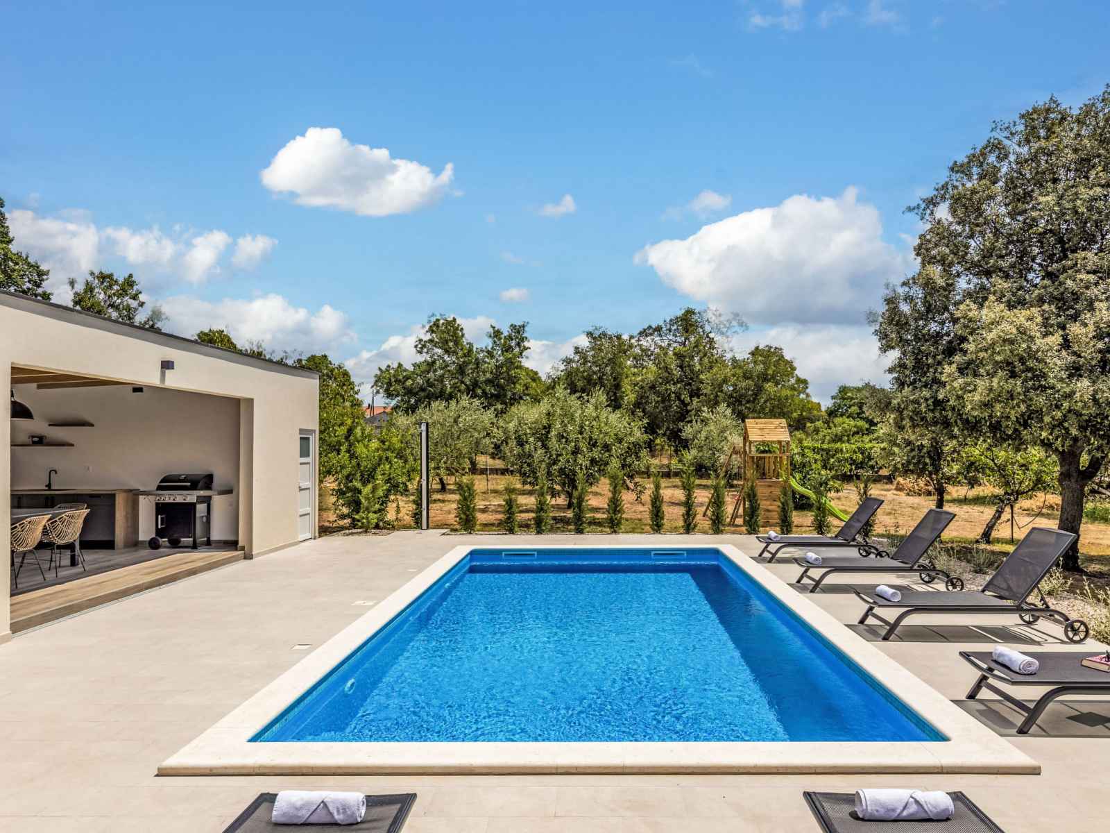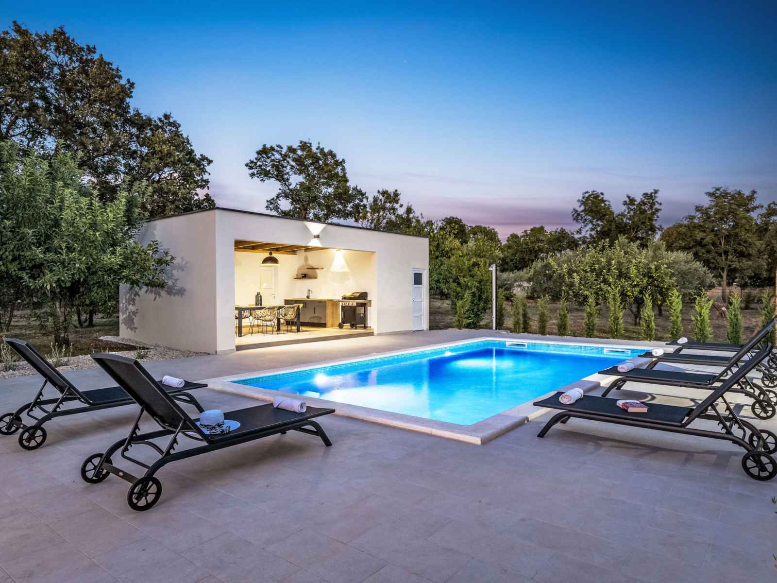 Briševo à 11 km de zadar: maison individuelle "certus", de 2 étages. situation ensoleillée, à 11 km de la mer, dans une rue. a usage privé: terrain 2'600 m2 (clôturé), piscine rectangulaire (8 x 4 m, profondeur 140 cm, disponibilité saisonnière: 02.mai. - 26.sep.) avec marches intérieures. douche extérieure, meubles de jardin,
