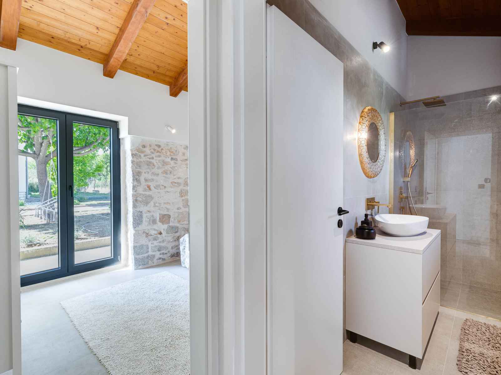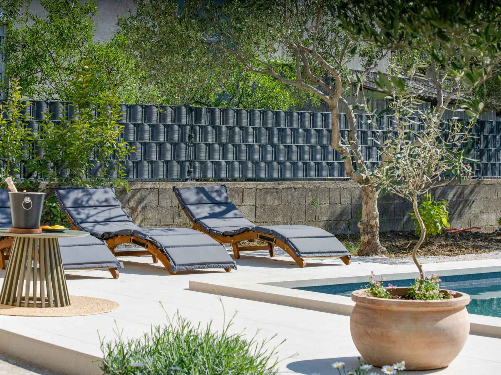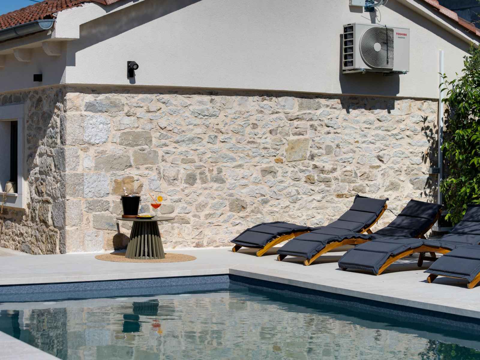 Zemunik à 10 km de zadra: belle maison individuelle "stanca", rénovée en 2024. À 800 m du centre, situation ensoleillée, surélevée, à 10 km de la mer, à 10 km de la plage. entretien de la piscine par le propriétaire/jardinier. a usage privé: terrain 200 m2 (clôturé), piscine en forme d’haricot (7 x 4 m, 28 m2, profondeur 140 cm,