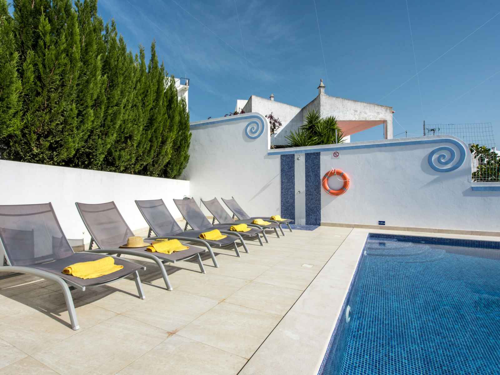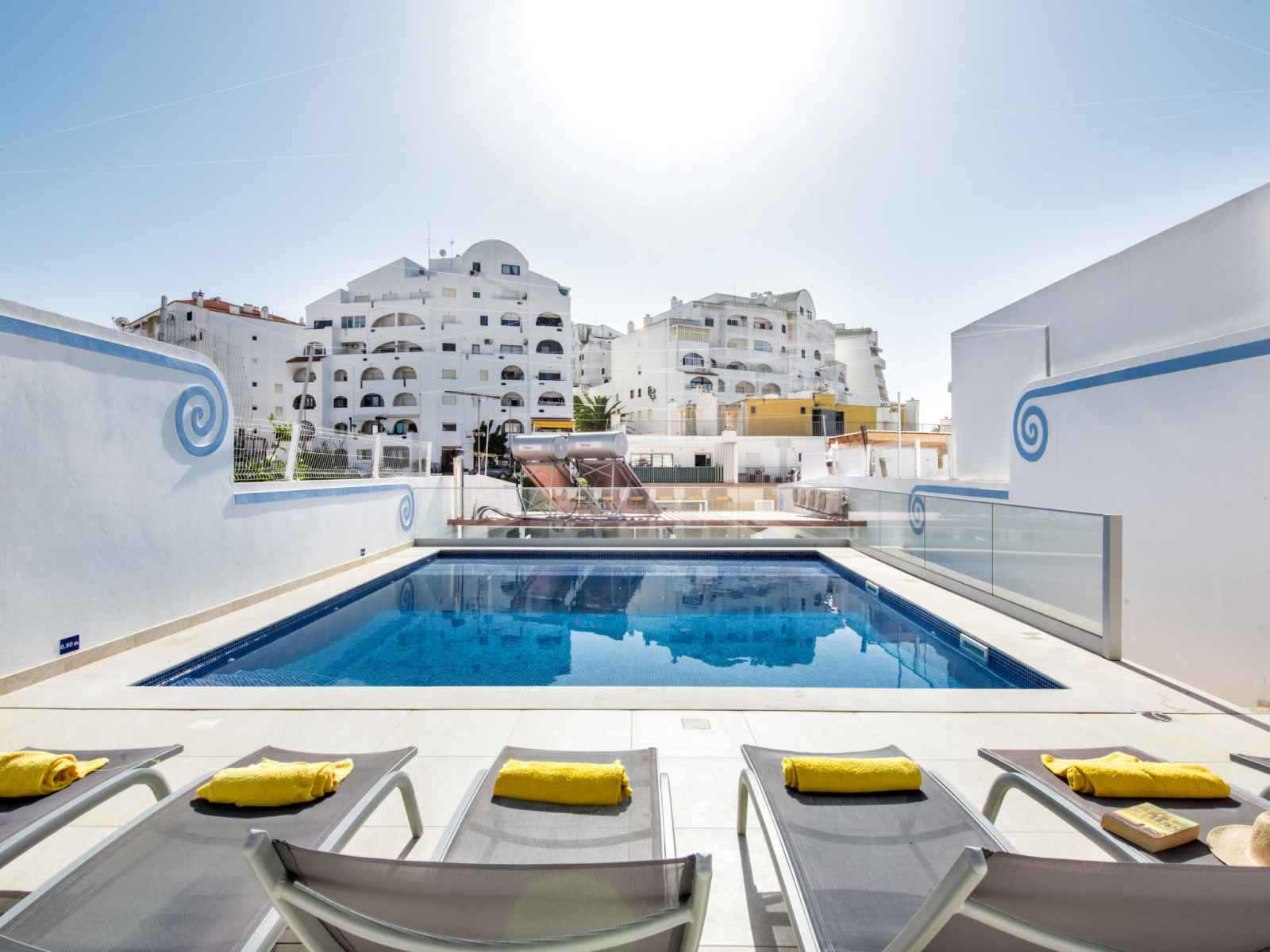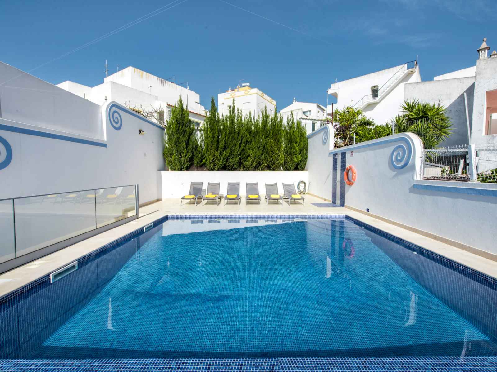 Albufeira: maison mitoyenne moderne, accueillante "cristal", de 3 étages, rénovée en 2021. situation centrale, à 700 m de la mer. a usage privé: piscine rectangulaire (5 x 8 m, profondeur 90 - 180 cm, disponibilité saisonnière: 01.jan. - 31.dec.). meubles de jardin, barbecue. infrastructures de la maison: connexion wifi, air-conditionné,