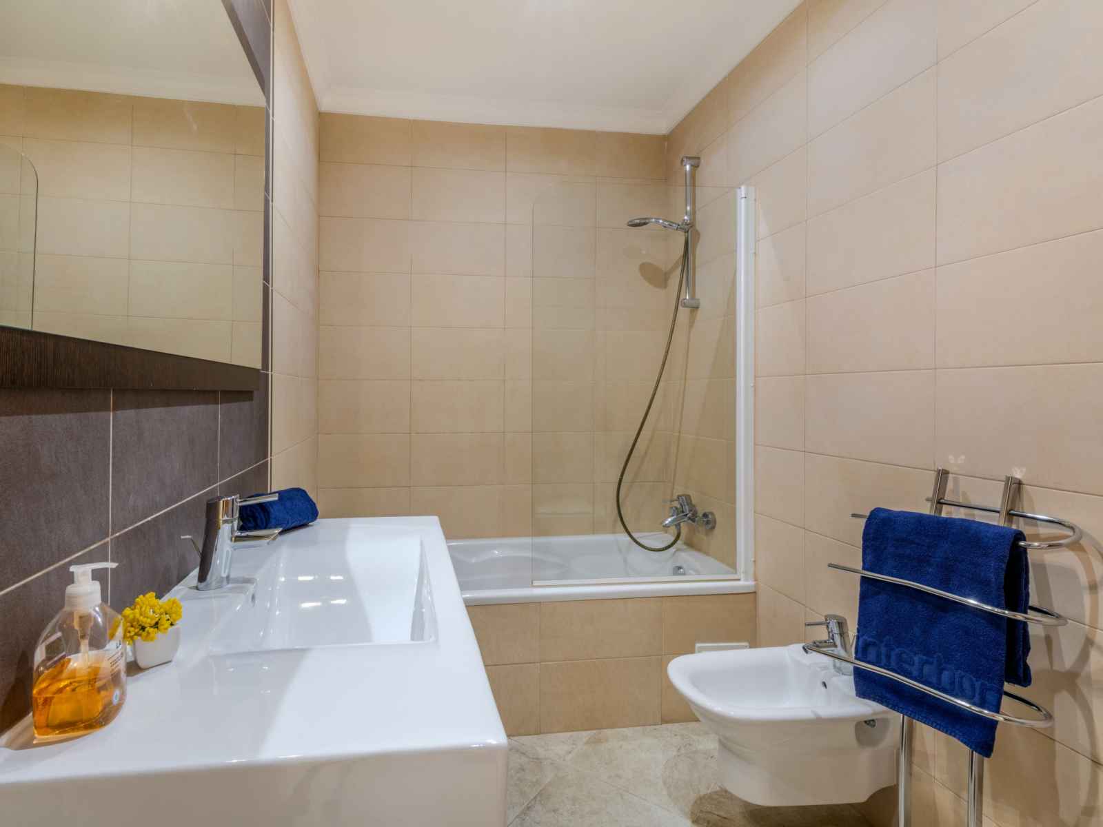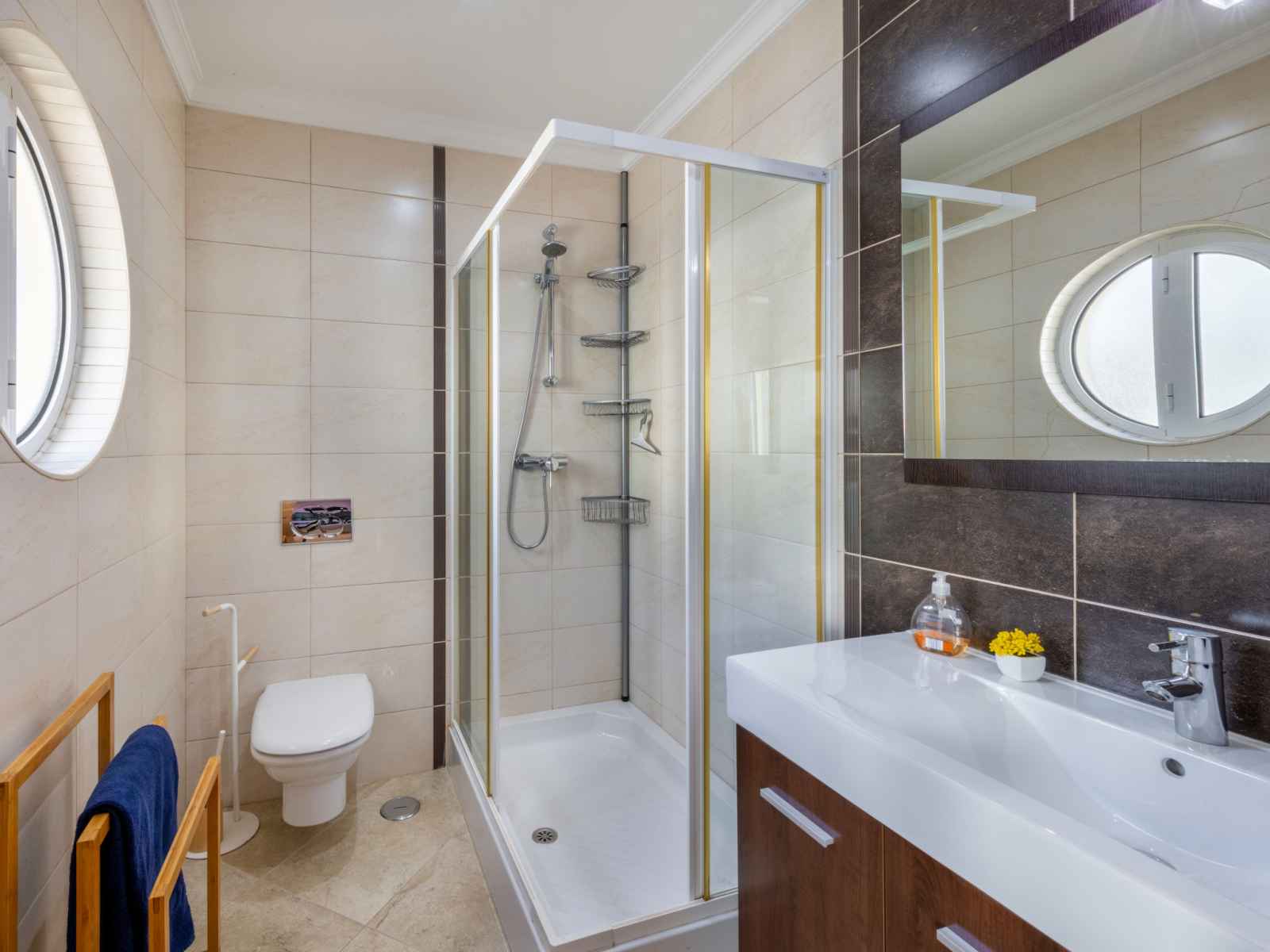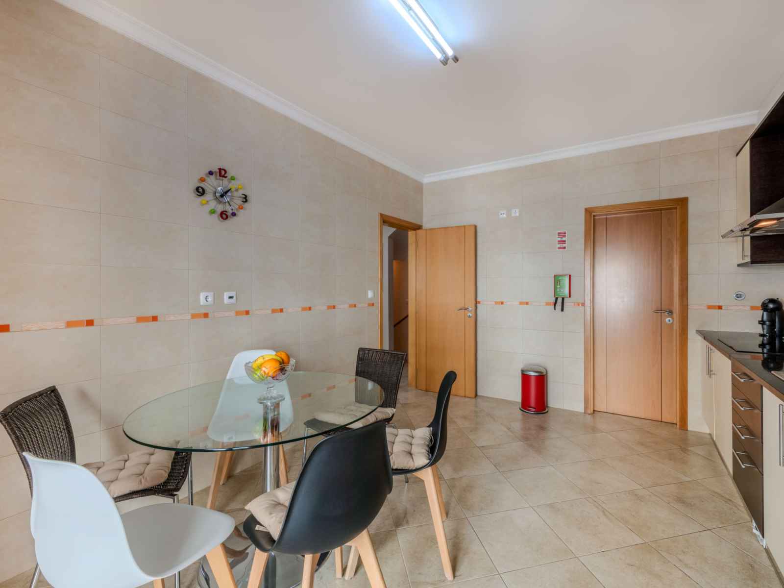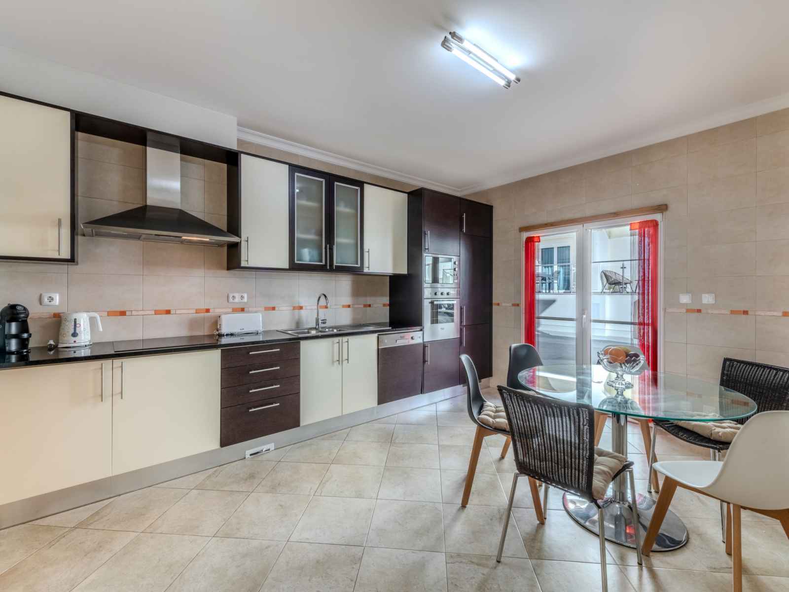 "encosta dos salgados", maison mitoyenne 4 pièces 154 m2. aménagement très confortable et plaisant: cuisine (four, lave-vaisselle, 4 plaques vitrocéramiques, grille-pain, bouilloire électrique, micro-ondes, congélateur, cafetière électrique, capsules pour machine à café (dolce gusto not incl)). wc séparé. À l'étage inférieur: