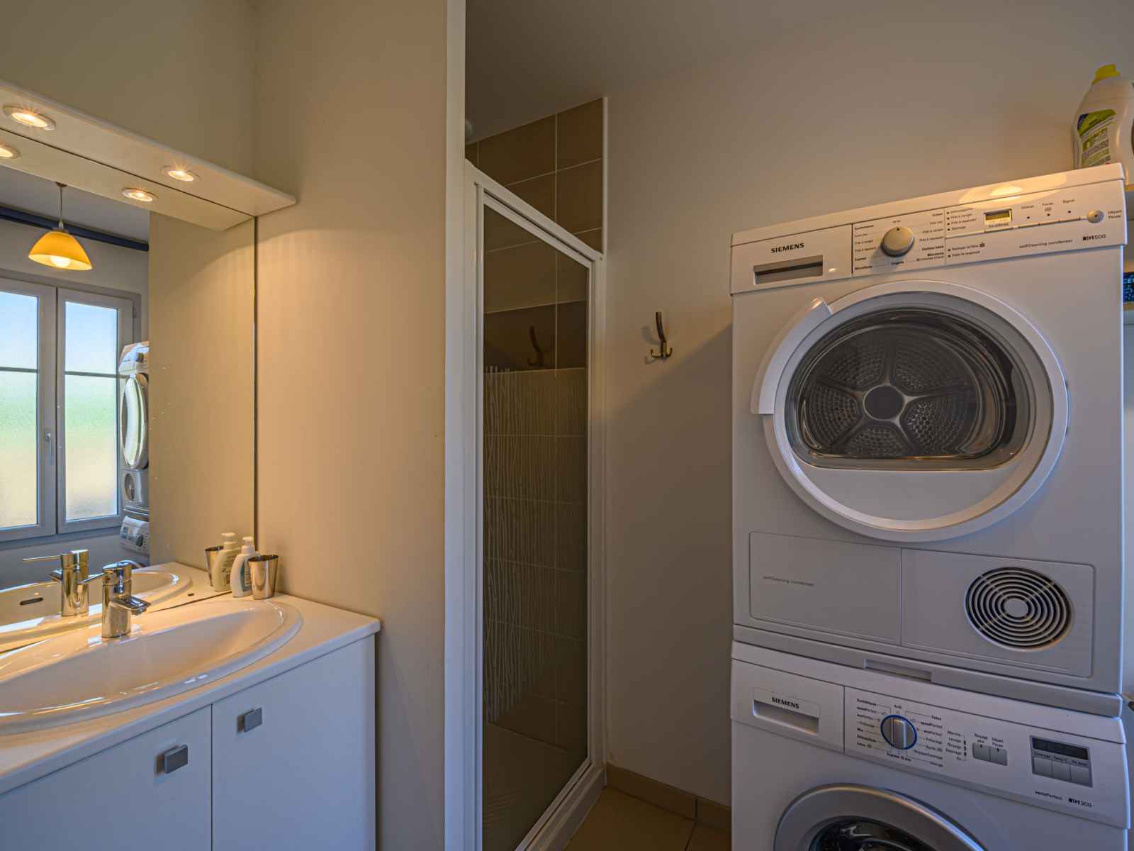 (Nespresso) (NON INCLUSES)). Douche/WC. Chauffage au gaz. À l'étage supérieur: 2 chambres, chaque chambre avec: 1 grand-lit (1 x 160 cm, longueur 200 cm). 1 chambre avec 2 lits (90 cm, longueur 190 cm). Pièce en enfilade avec TV (écran plat). Douche, WC séparé, double vasque. Terrasse 25 m2, situation sud. Meubles de terrasse, barbecue, chaises longues (2). A disposition: lave-linge, sèche-linge, sèche-cheveux. Internet (Connexion WIFI, gratuit). Place de parking. Veuillez noter: maximum 1 animal/ chien autorisé. Détecteur de fumée. Annonce d'un particulier (art 155, IV du CGI). 977585470