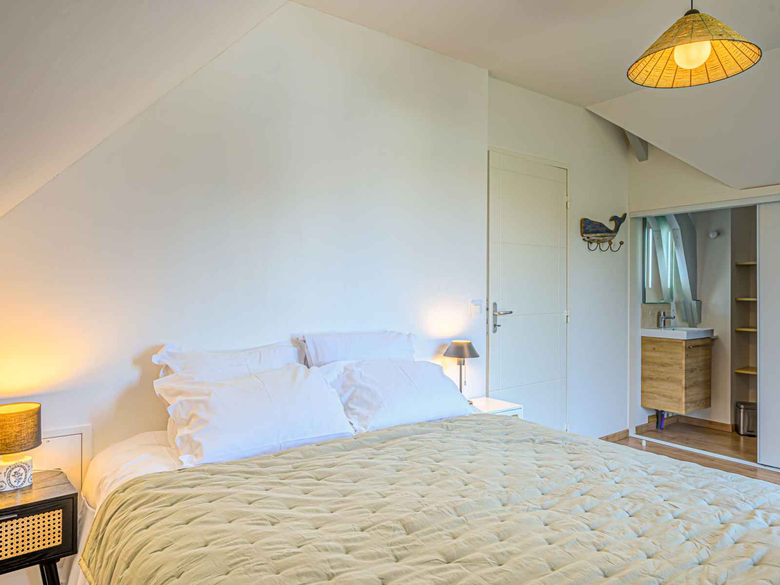 "ranguhan", maison mitoyenne 5 pièces 101 m2 sur 2 niveaux, situation sud. aménagement confortable: séjour/salle à manger. sortie sur le jardin. 1 chambre avec 1 grand-lit (1 x 160 cm, longueur 200 cm). cuisine ouverte (four, lave-vaisselle, 4 feux, grille-pain, bouilloire électrique, cafetière électrique, capsules pour machine à café