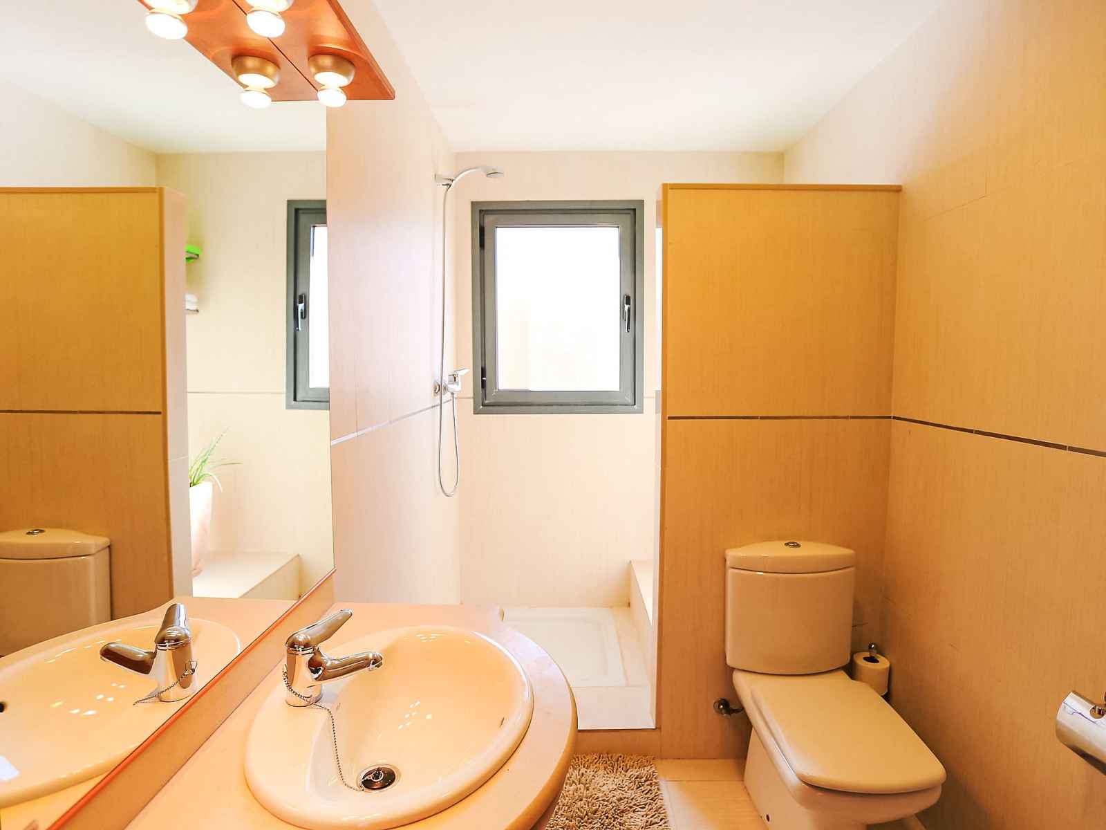 micro-ondes, congélateur). WC séparé. À l'étage supérieur: 1 chambre, sans armoire avec 2 lits (90 cm), chauffage à air chaud. Sortie sur la terrasse. 1 chambre avec 1 grand-lit (150 cm), chauffage à air chaud. Sortie sur la terrasse. 1 chambre avec 1 lit gigogne (2 x 80 cm), chauffage à air chaud. Douche/bidet/WC. Meubles de terrasse, barbecue. Vue latérale sur la mer. A disposition: lave-linge, fer à repasser, chaise haute pour enfant, lit bébé, sèche-cheveux. Internet (Connexion WIFI). Veuillez noter: TV seulement ES. HUTTE000863 // Reg. Nr.: ESFCTU00004302000085790400000000000000000HUTTE0008633