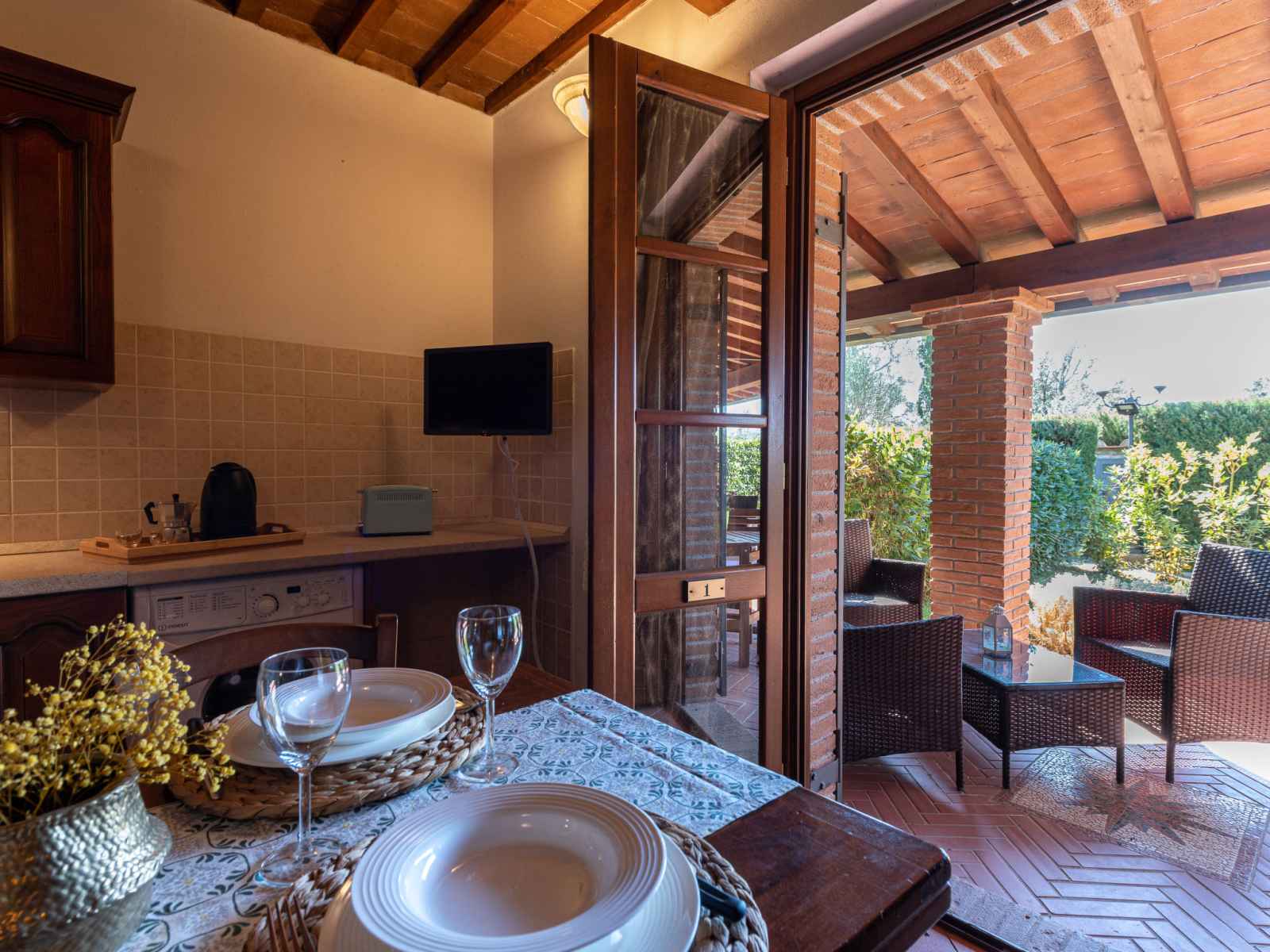 grille-pain, bouilloire électrique, cafetière électrique). Sortie sur le jardin, sur la terrasse. Chauffage à air chaud. Terrasse couverte. Meubles de terrasse. A disposition: lave-linge. Internet (Connexion WIFI, gratuit). Place de parking. Veuillez noter: maison non-fumeur. Maximum 1 animal/ chien autorisé. Entrée privée. Smart-TV. IT053015C2ZQWYGT4Y