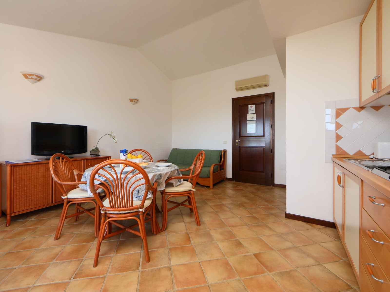 table pour les repas. Douche/bidet/WC. Air-conditionné, chauffage à air chaud. Jardinet partiellement couvert. Meubles de terrasse. Belle vue sur la mer. A disposition: coffre-fort, sèche-cheveux. Place de parking No D18 (couvert, cloturée), largeur 230 cm. IT090084B4000E2088