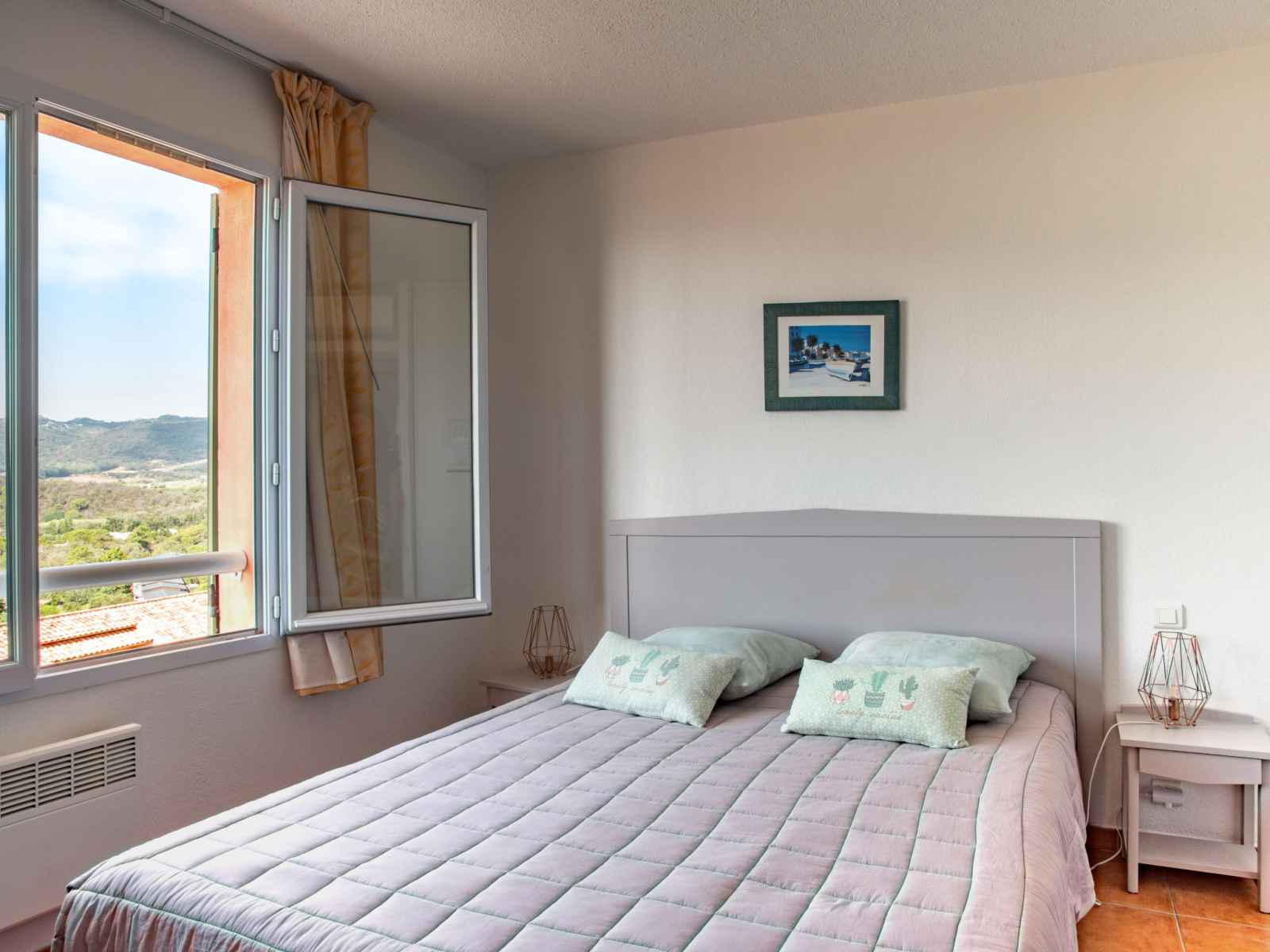 micro-ondes, congélateur, cafetière électrique). Douche/WC. À l'étage supérieur: 1 chambre avec 1 grand-lit (160 cm). Salle de bains, WC séparé. Chauffage électrique, air-conditionné. Balcon 18 m2, situation sud, terrasse 8 m2 partiellement couverte. Meubles de terrasse, mobilier de balcon, barbecue. Très belle vue panoramique sur la mer, les montagnes et Golfe de Santa Giulia, Bavella. A disposition: lave-linge. Veuillez noter: logement non-fumeur. Détecteur de fumée. Annonce d'un professionnel (art 155, IV du CGI) FR9210.658.3