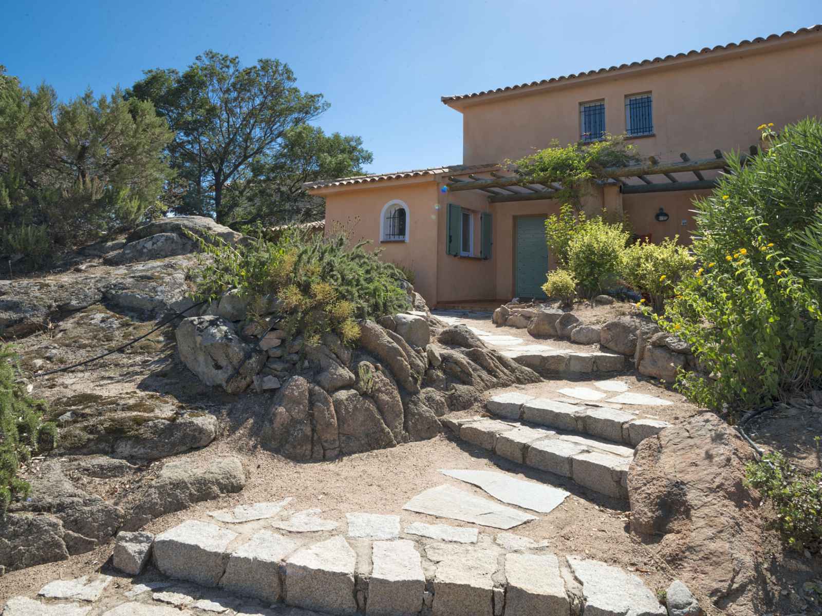 versant, à 500 m de la mer, accès direct à la plage. en commun: jardin sur plusieurs niveaux, 4 ha avec plantes et arbres, jardin naturel, piscine chauffée, cloturée (15 x 8 m, disponibilité saisonnière: 01.avr. - 30.sep.). douche extérieure, tennis, terrasse. infrastructures de la résidence: réception, connexion wifi. place de parking près de la maison sur le terrain. magasins 400 m, supermarché 8 km, restaurant, bar 400 m, arrêt de bus 3 km, plage de sable "santa giulia" 500 m. veuillez noter: voiture recommandée. résidence avec portail électrique. il y a un festival de musique annuel sur la plage de santa giulia à la fin du mois d'août. wi-fi uniquement à la réception.