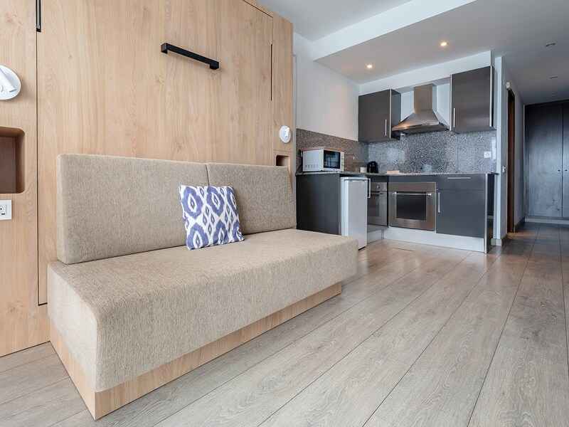 30m2, séjour avec une banquette lit (le couchage du séjour ne convient pas à des enfants de + de 15 ans)
