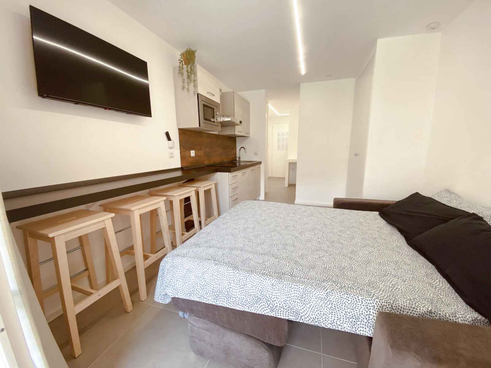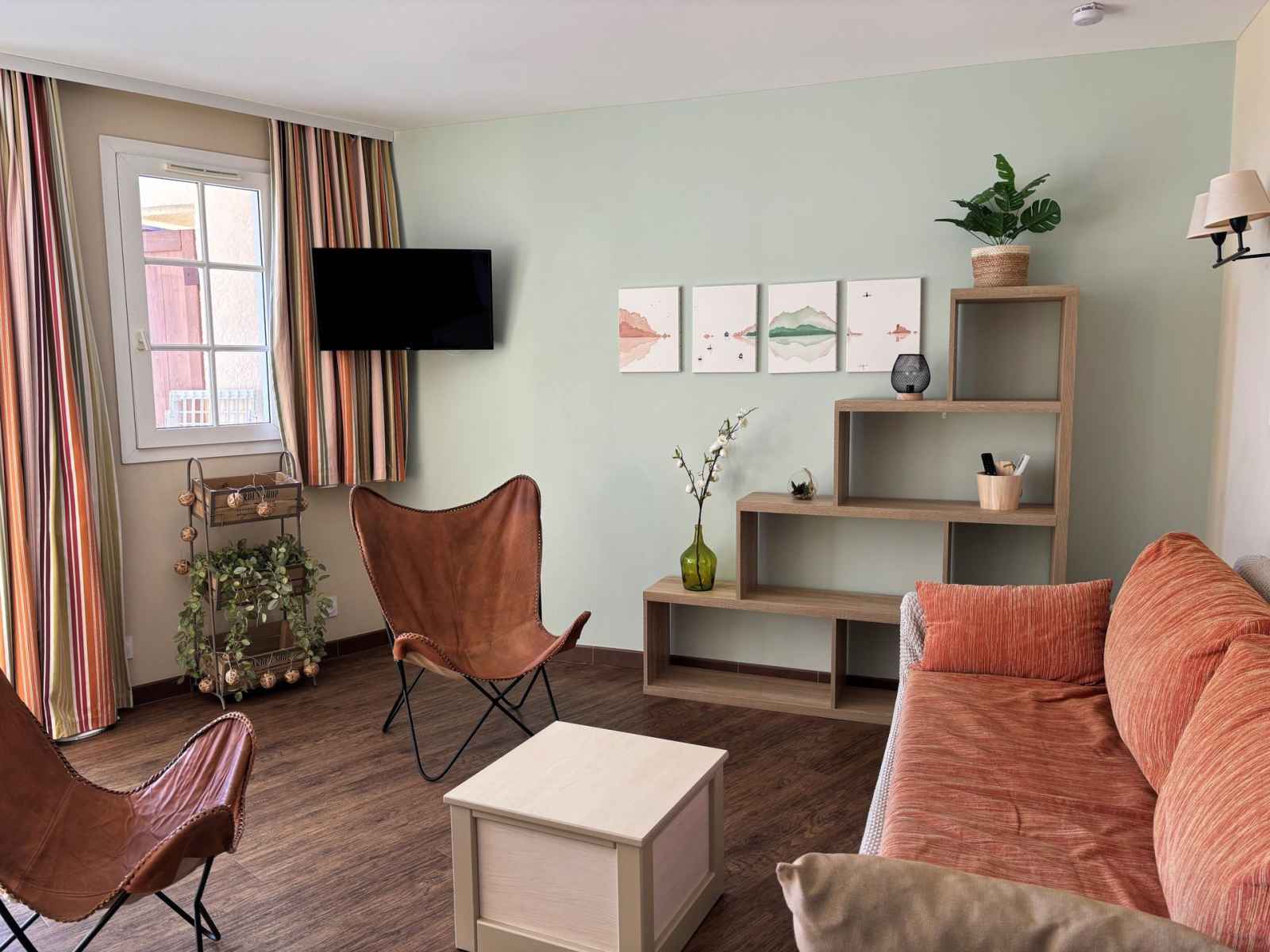 "l'esquinade (j2 206)" studio 24 m2 au 1er étage. logement idéal pour 2 adultes + 2 enfants. séjour avec 1 divan-lit double (140 cm, longueur 190 cm), tv (écran plat). sortie sur la terrasse. cabine avec 1 x 2 lits superposés (80 cm, longueur 190 cm). coin cuisine (4 plaques de cuisson, lave-vaisselle, grille-pain, micro-ondes, cafetière
