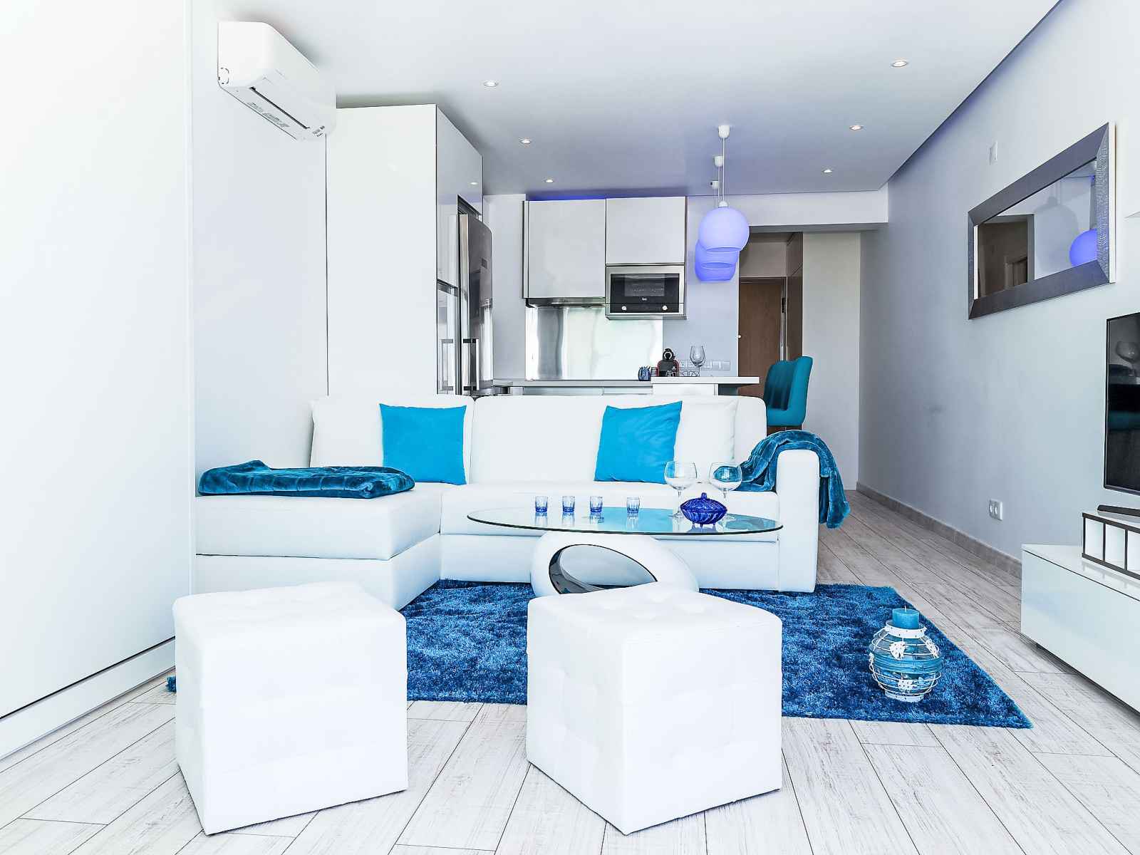 "dream view 50m from the beach" studio 35 m2, à l'étage supérieur. clair, complètement rénové en 2016, aménagement très moderne: studio avec 1 divan-lit (135 cm, longueur 200 cm), 1 lit double armoire (140 cm, longueur 190 cm), tv, chaînes de tv internationales, écran plat, air-conditionné et chauffage à air chaud. sortie sur la