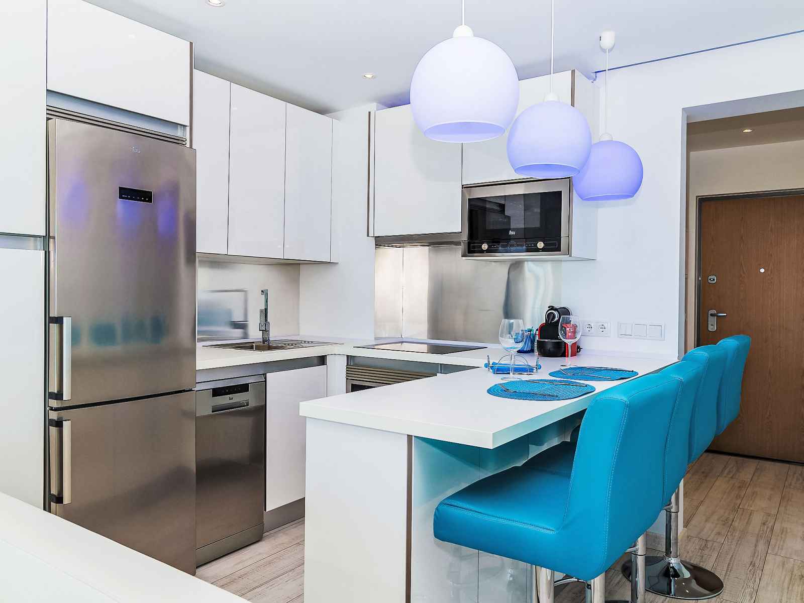 loggia. Cuisine ouverte (4 plaques vitrocéramiques, micro-ondes, congélateur, cafetière électrique) avec bar. Douche/WC. Sol en bois. Mobilier de balcon. Vue panoramique sur la mer. A disposition: lave-linge, fer à repasser, lit bébé jusqu'à 3 ans, sèche-cheveux. Internet (Connexion WIFI, gratuit). Veuillez noter: adapté(e) aux familles. Maison non-fumeur. 63317/AL