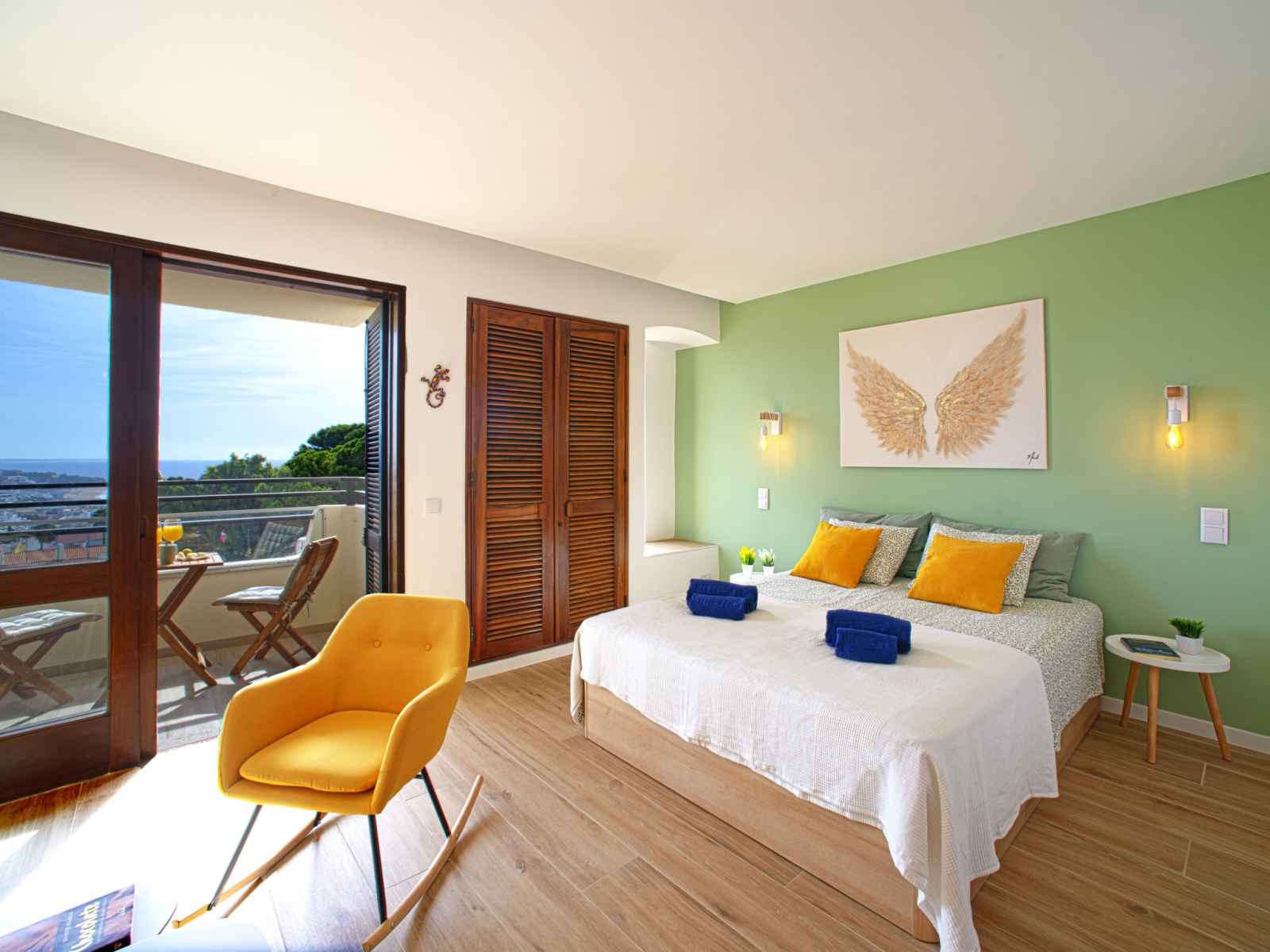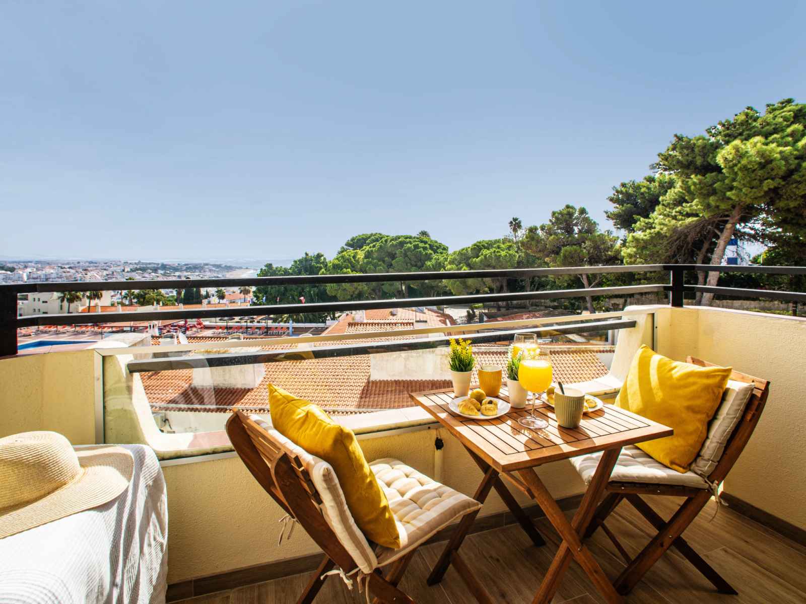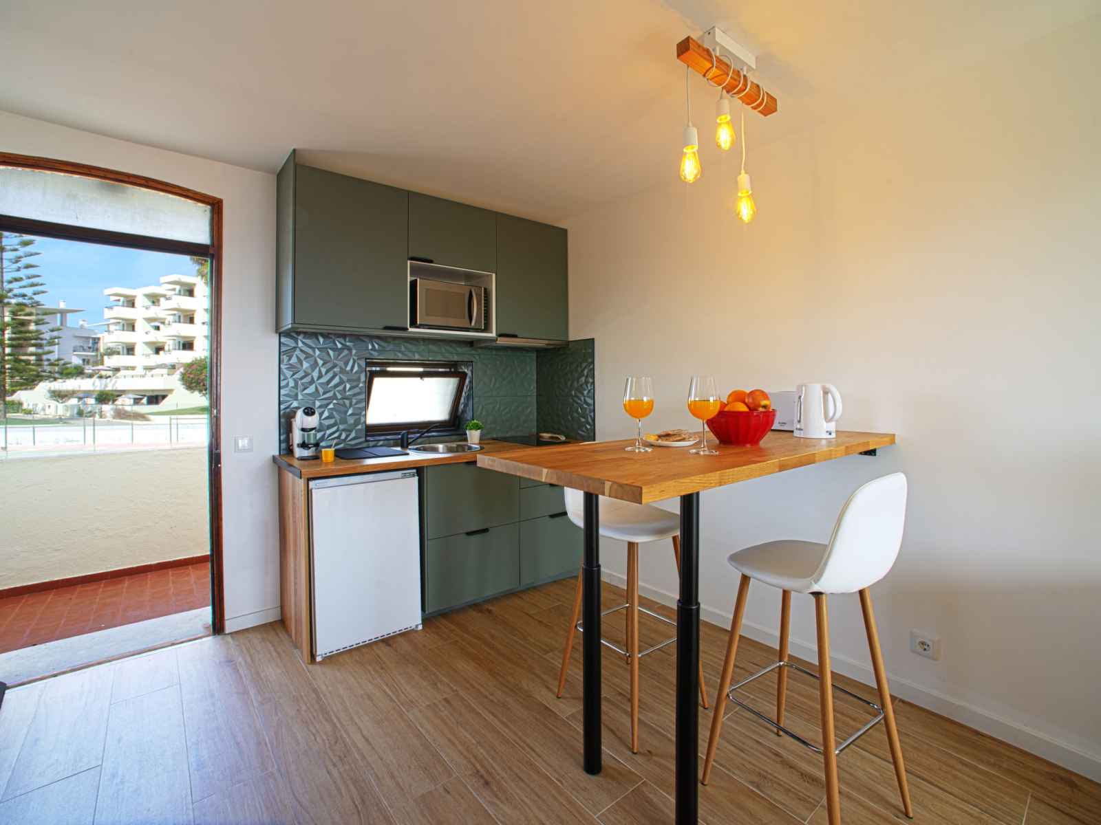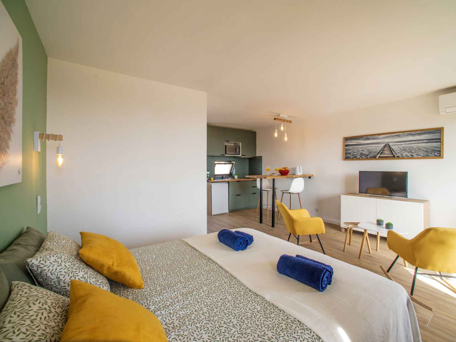 "la perle d´albufeira" studio 33 m2 au 1er étage. spacieux, rénové en 2023, aménagement très fonctionnel et plaisant: studio avec 1 grand-lit (160 cm, longueur 190 cm), tv, chaînes de tv internationales, écran plat, air-conditionné et chauffage à air chaud. sortie sur le balcon. cuisine/séjour (2 plaques vitrocéramiques, grille-pain,